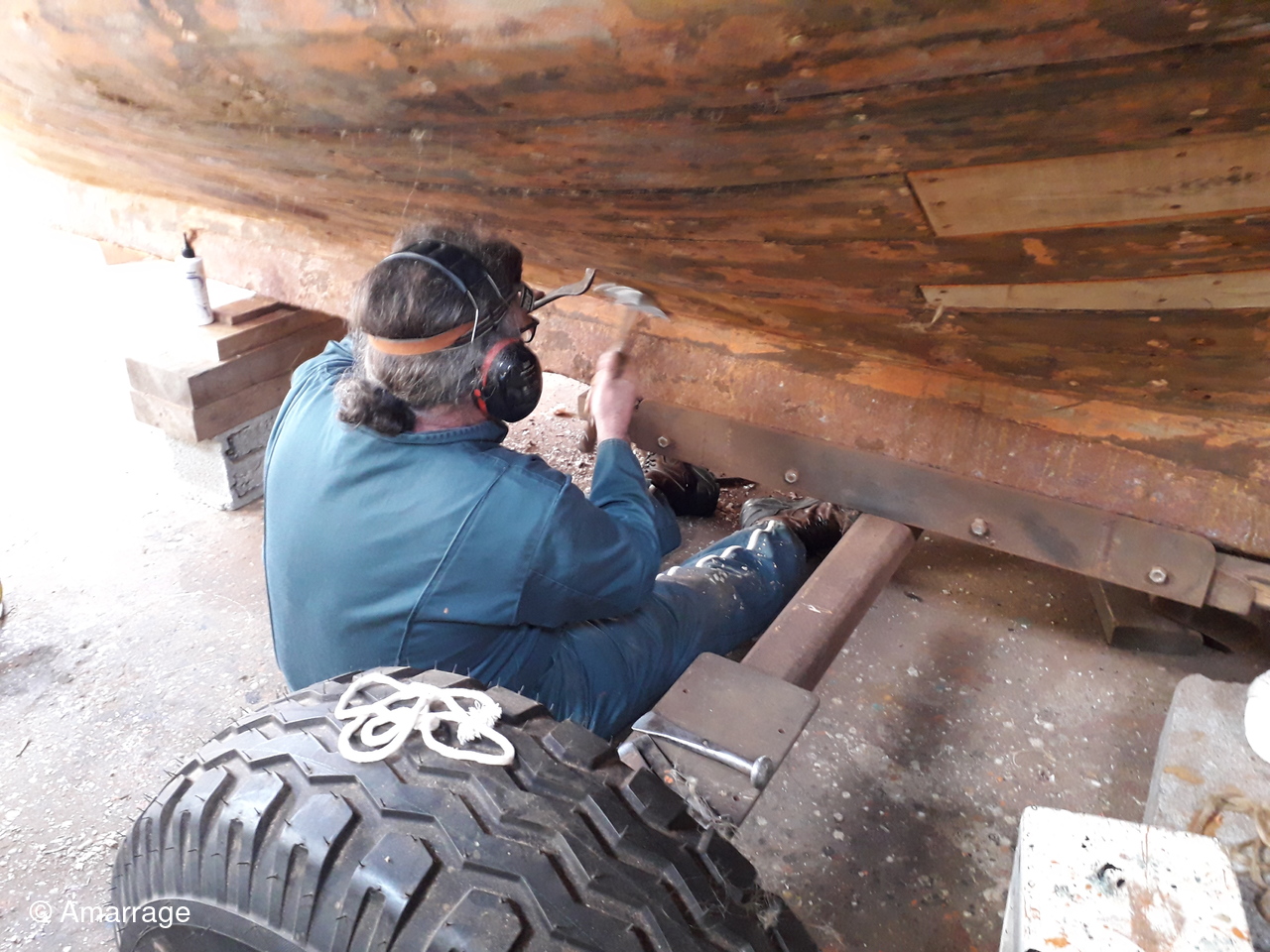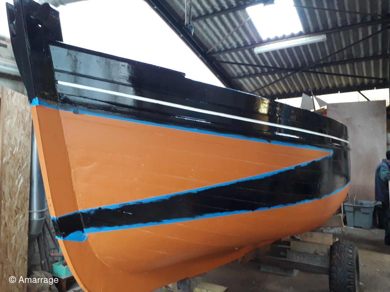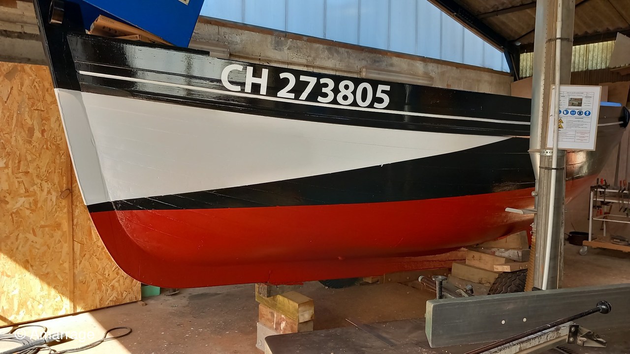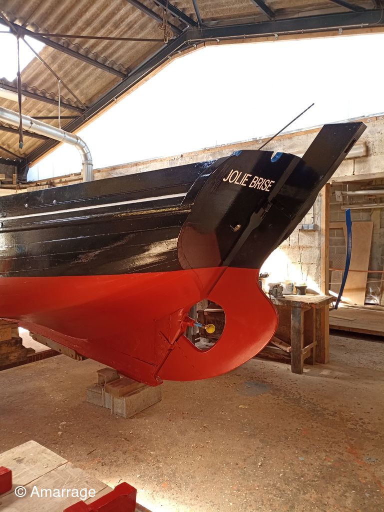 JOLIE BRISE: mise en peinture coque - travail sur les béquilles. Pour elle aussi la mise à l'eau semble toute proche.