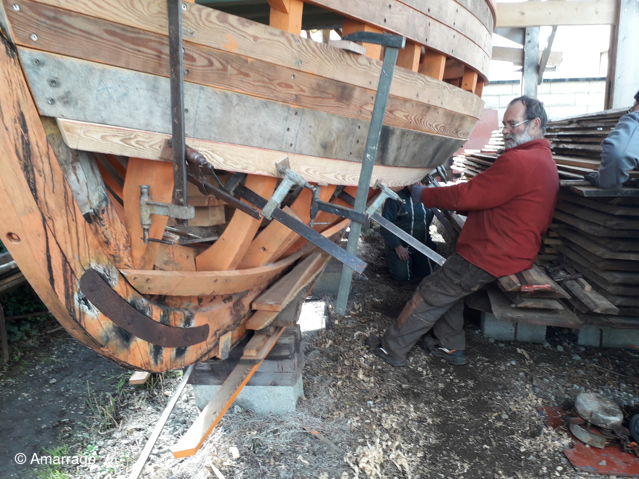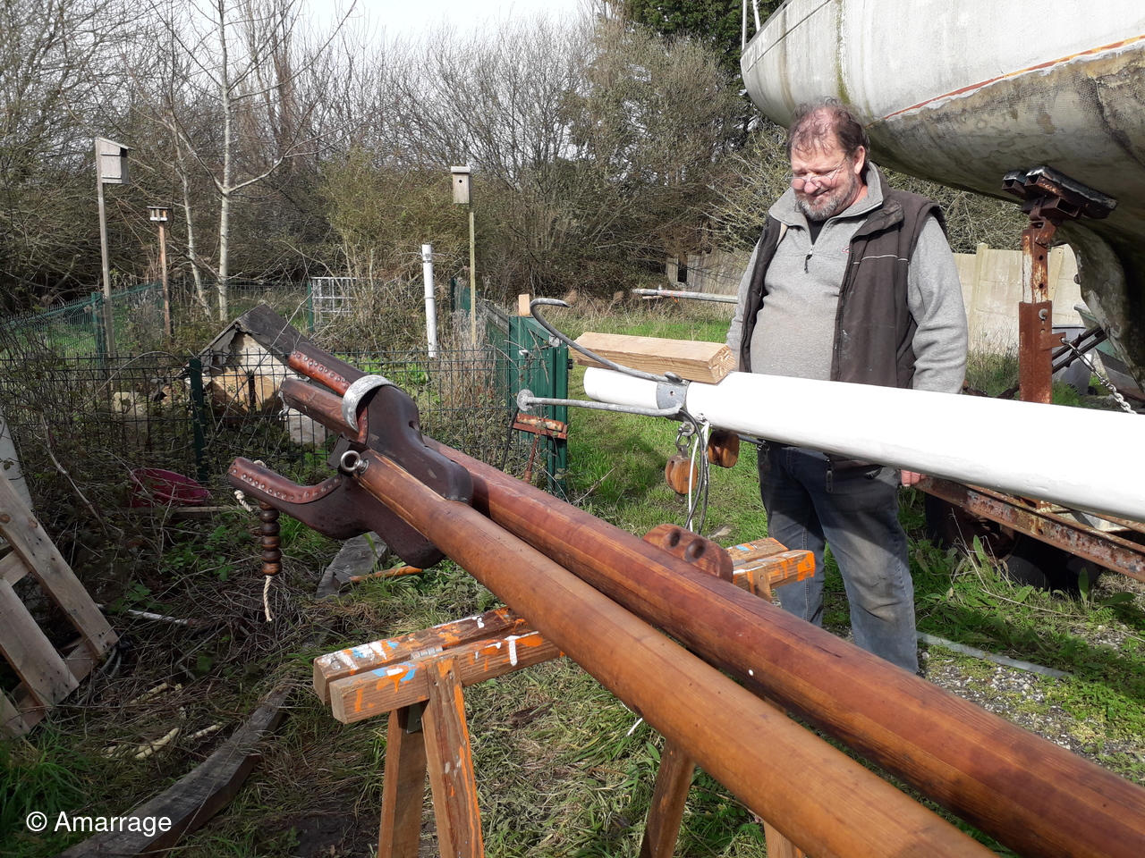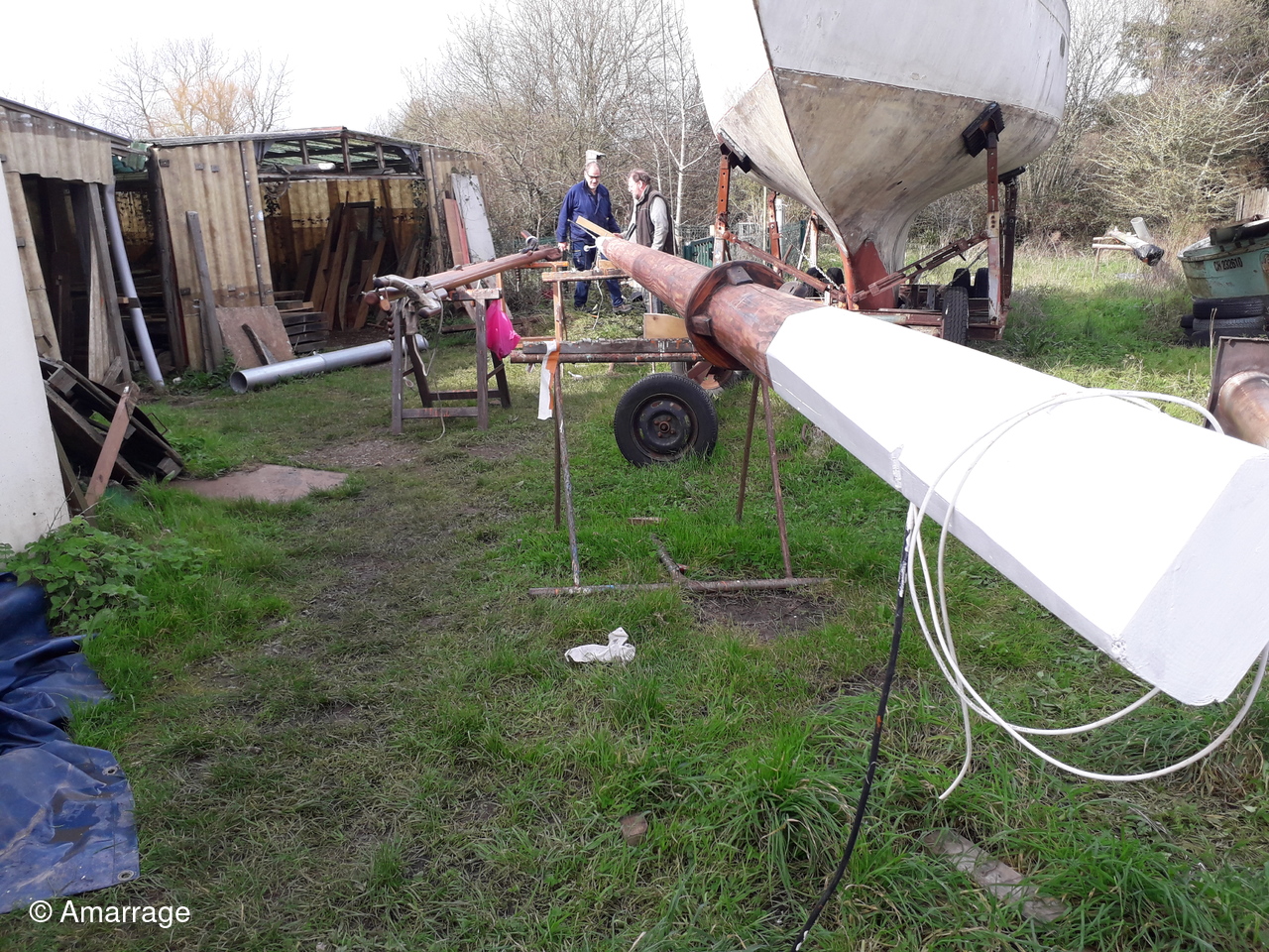 JOLIE BRISE: mise en peinture coque - travail sur les béquilles. Pour elle aussi la mise à l'eau semble toute proche.