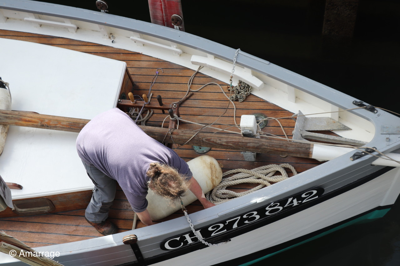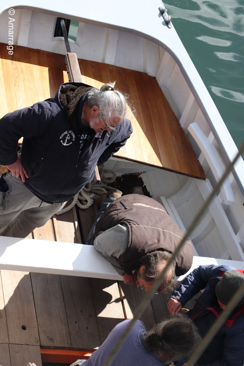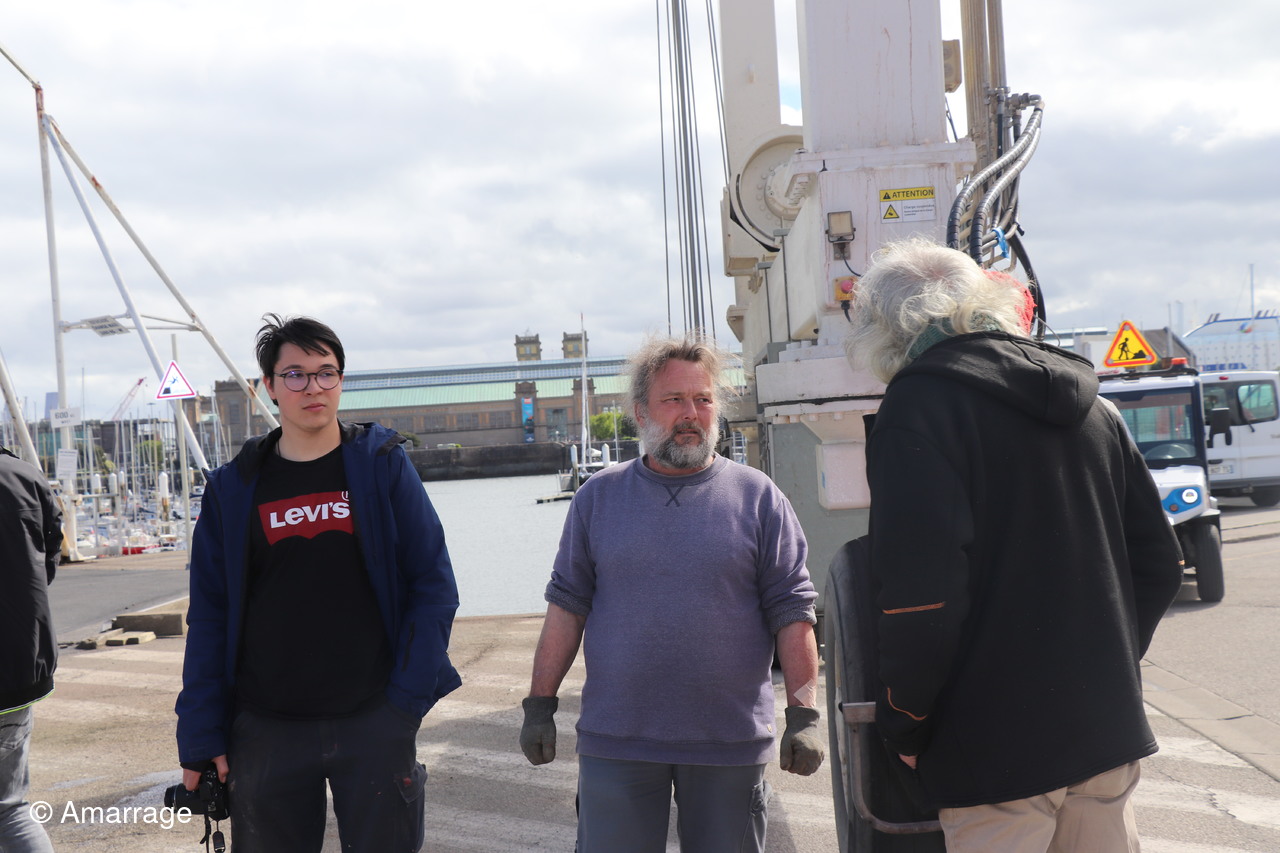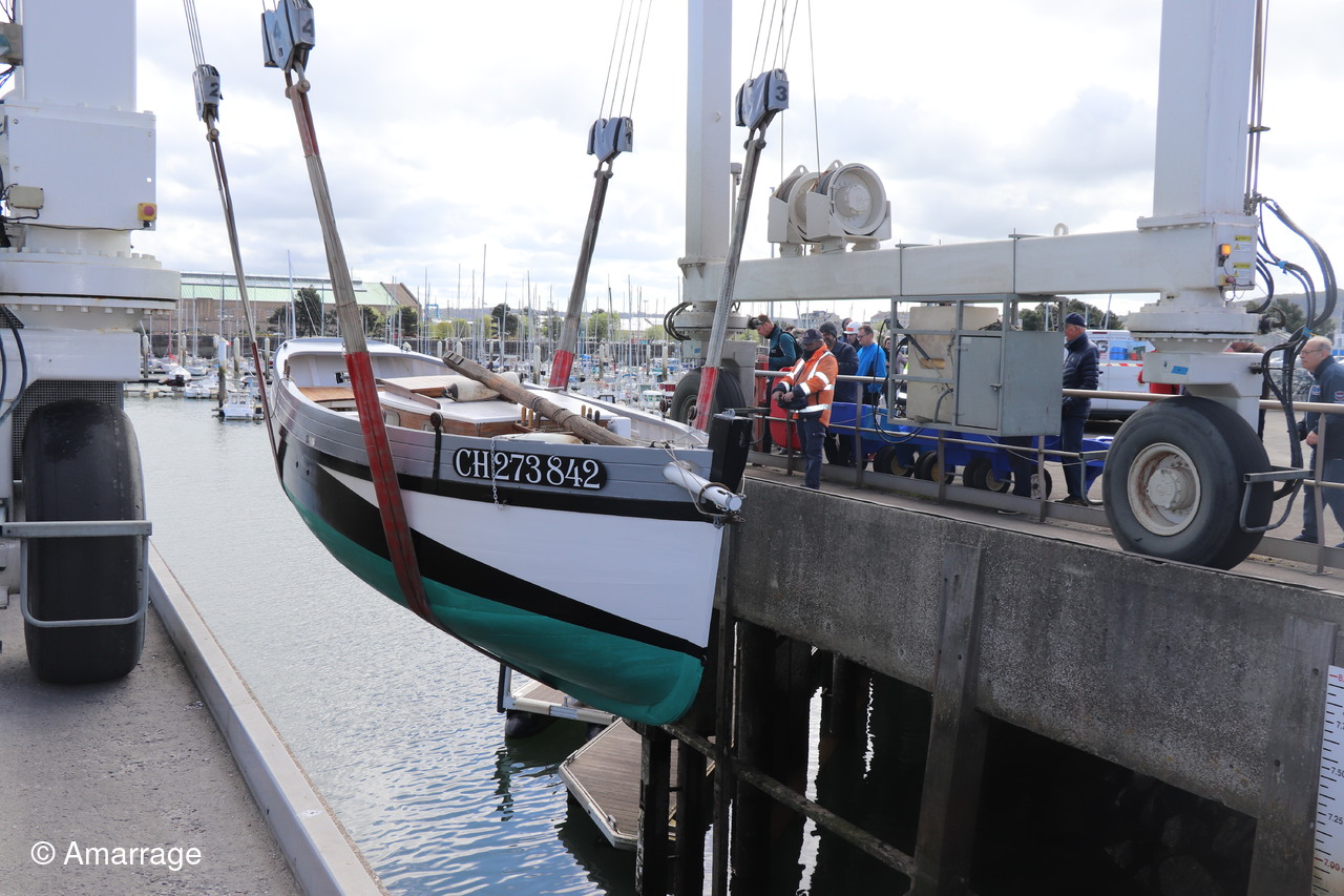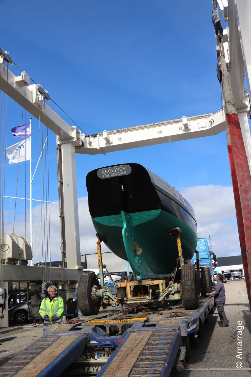 Puis, le grutier a fait son travail pour la mise à l'eau. La Nereïdes a rejoint son ponton à l'Epi. Elle recevra son mât dans les jours à venir, en principe mardi prochain.