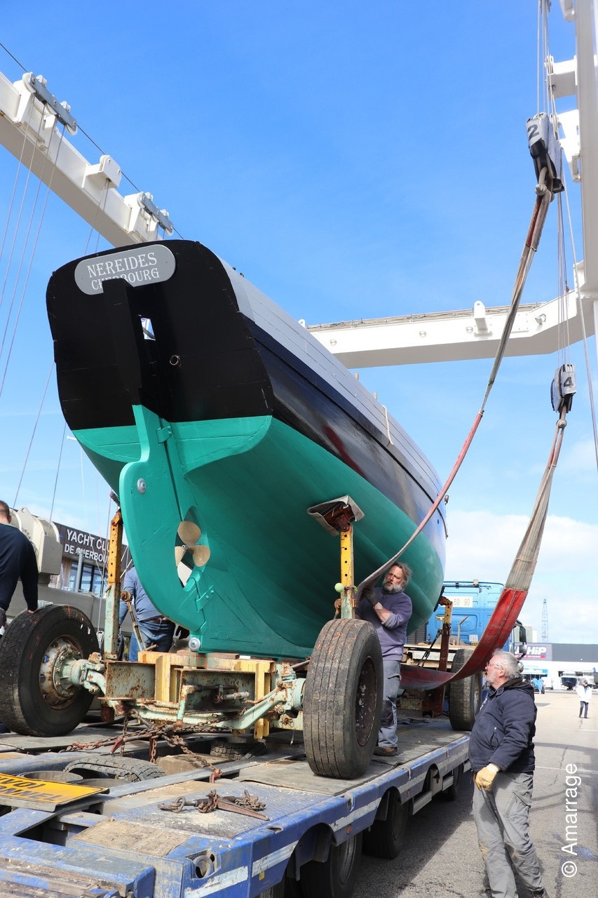Le jeudi 18 avril 2024, après restauration la Nereîdes quittait l'atelier pour sa mise à l'eau, mais n'avaient pas ses abers, son mât, sa vergue, sa bôme. Il a été totalement gréé et se trouve ammaré à son pontont. Il va recevoir sa voilure.
