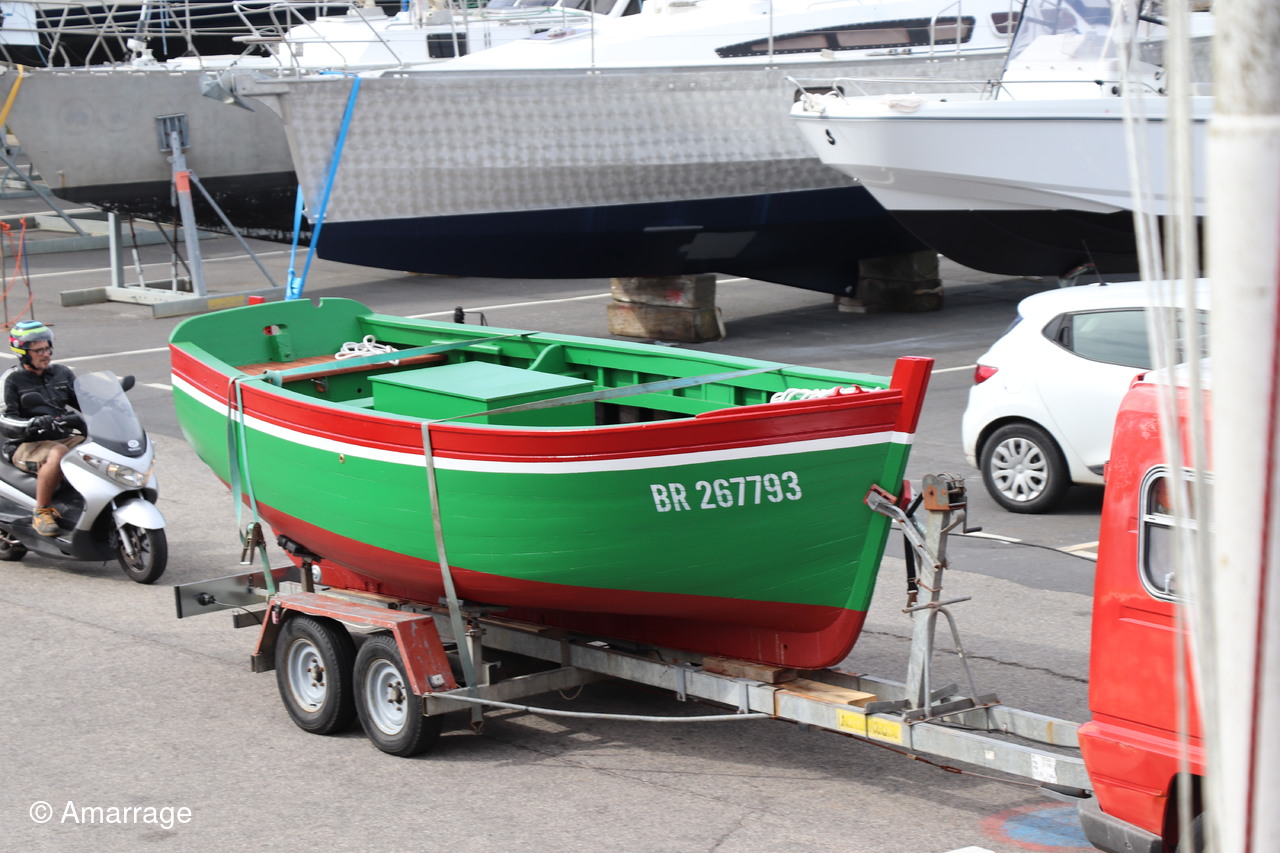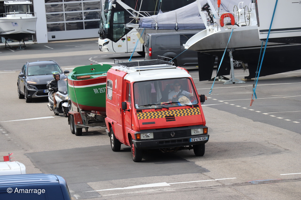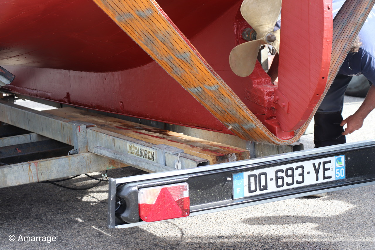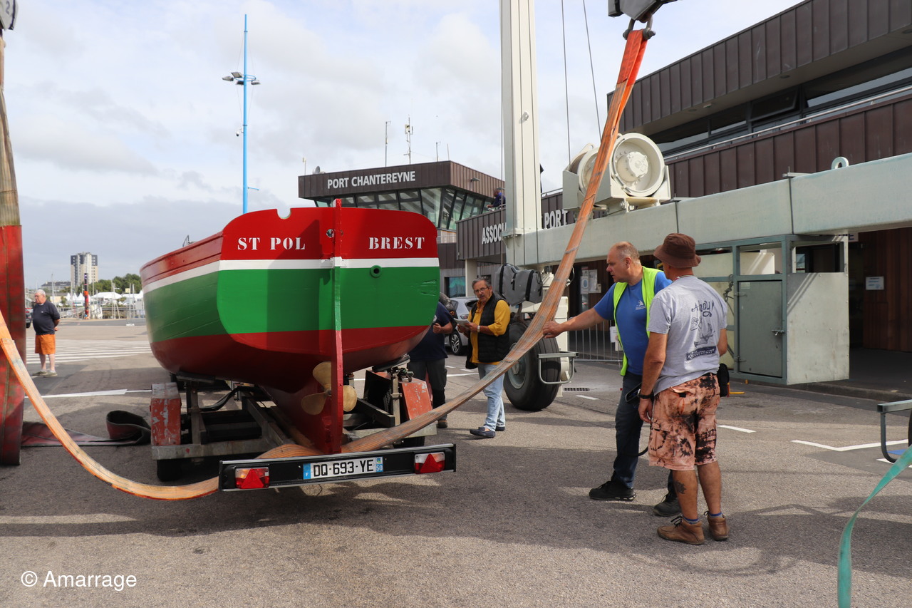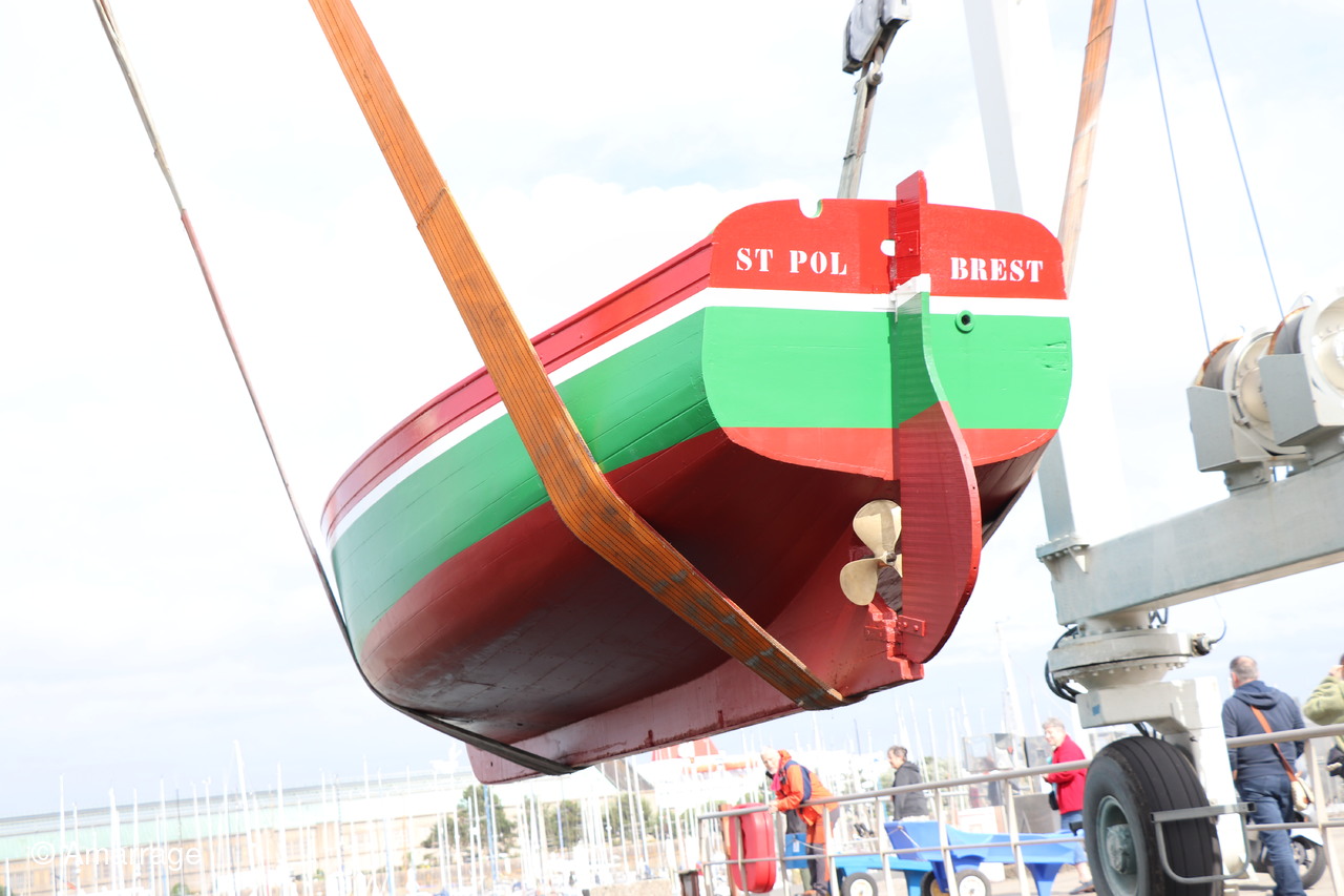 Il est 17h 45 ce jeudi 27 juin 2024, du coté de la piscine Chantereyne, un convoi se présente et se dirige vers le lieu où l'on fait les mises à l'eau de bateaux. Ce convoi arrive de l'Atelier d'Amarrage avec le SAINT POL BREST. Il était rentré dans l'Atelier 2 ans plus tôt pour restauration.