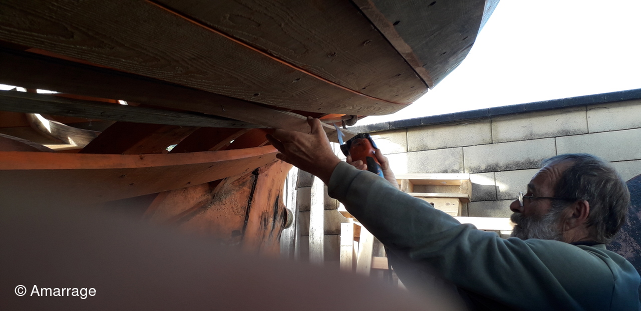 HAIZ DU RAZ: étembot fixé, travail sur la proue.