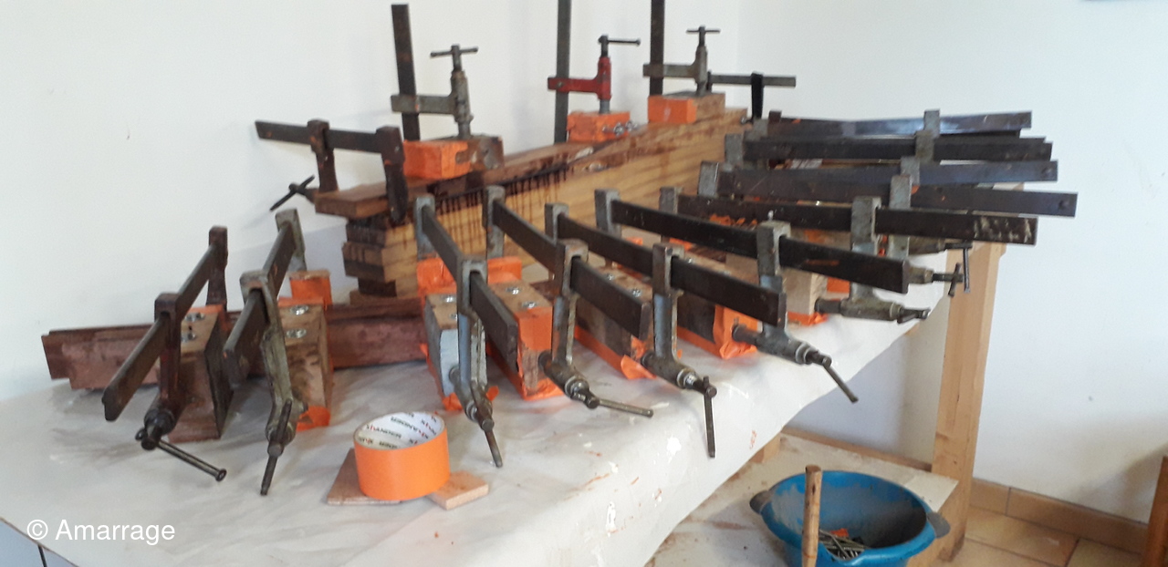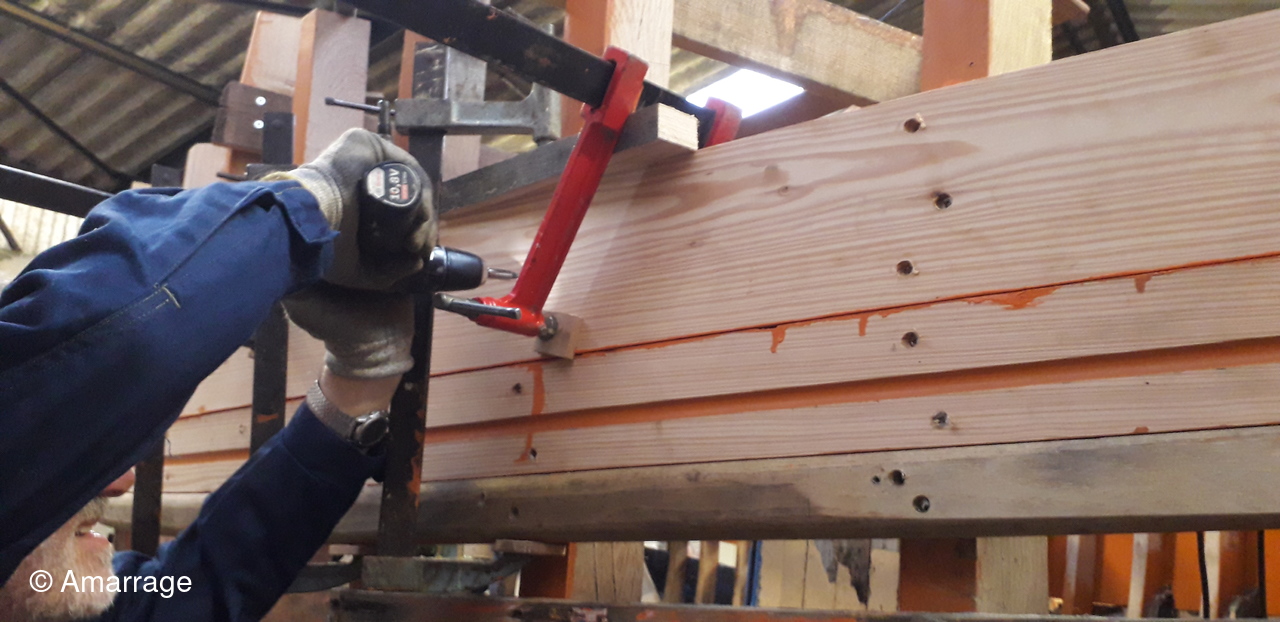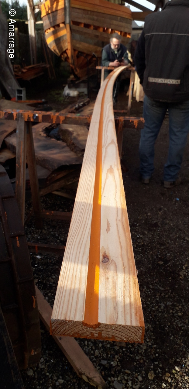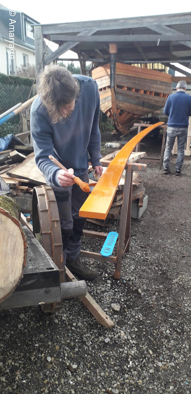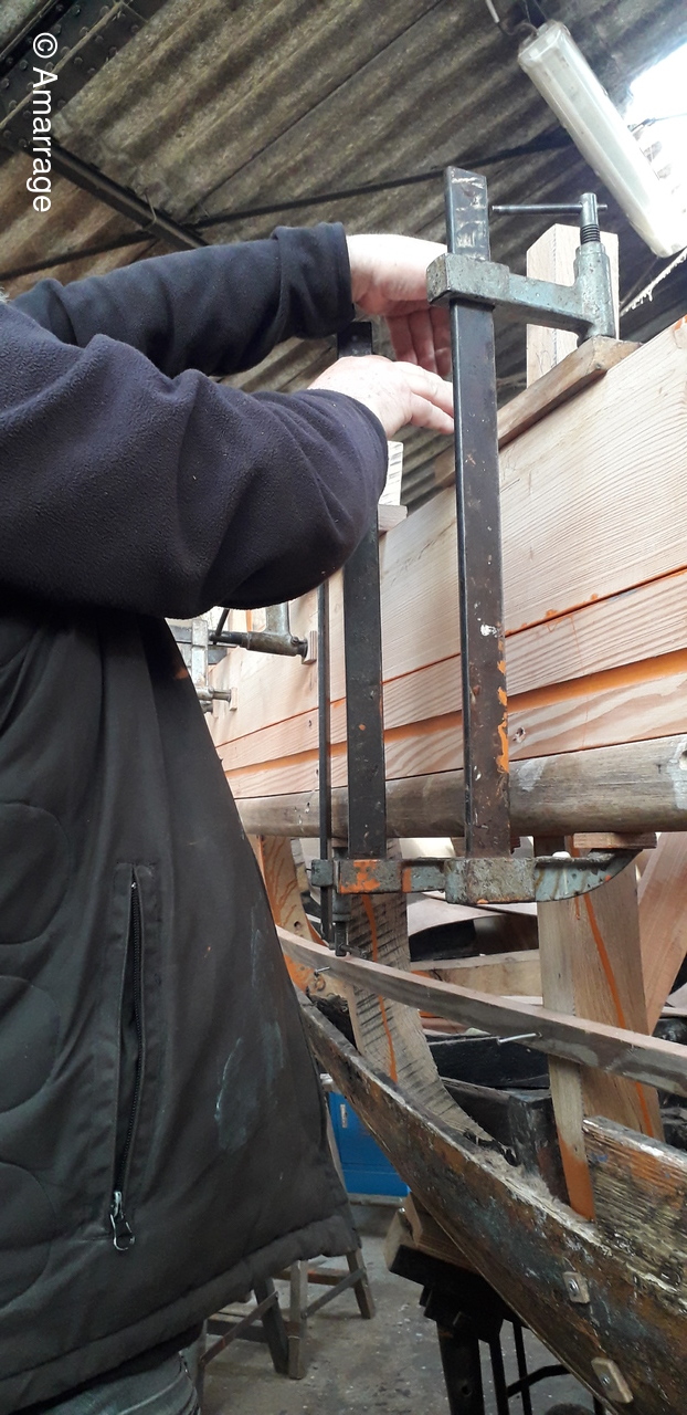 HAIZ DU RAZ: fabrication et mise en forme de la dernière membrure en lamélé-collé.