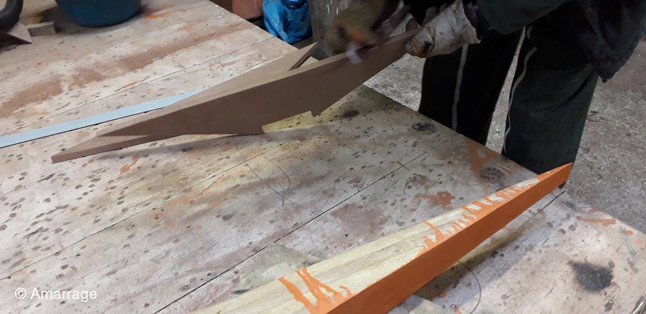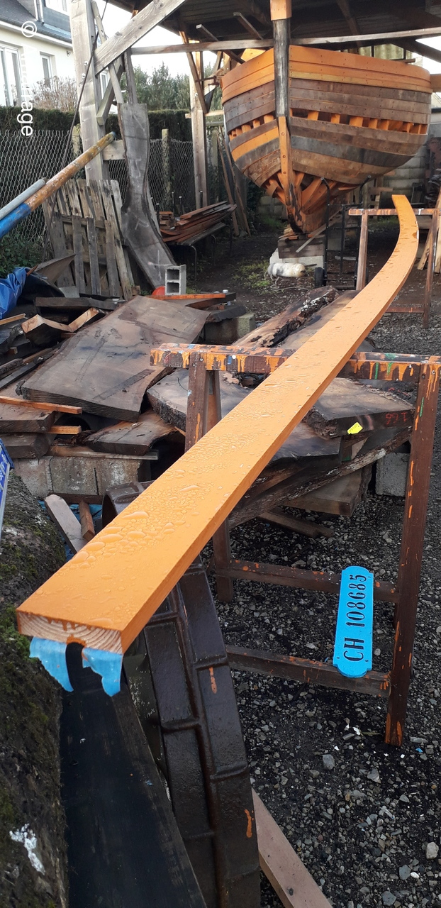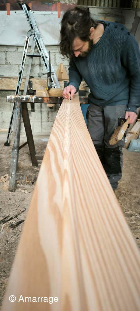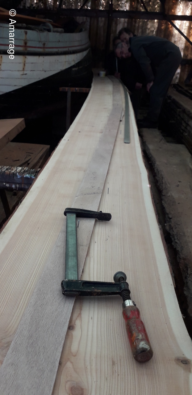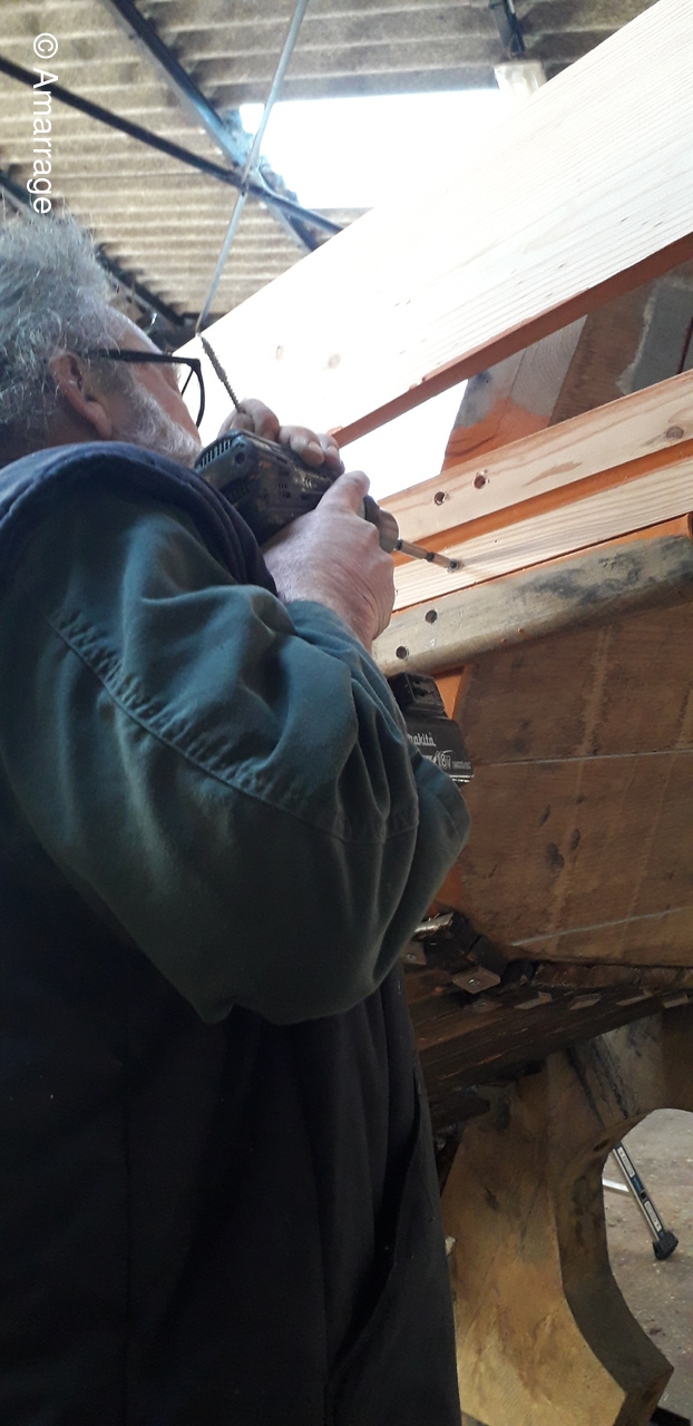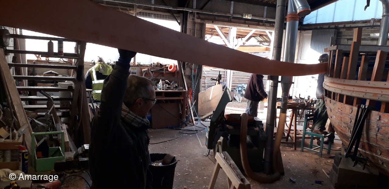 HAIZ DU RAZ: fabrication et mise en forme de la dernière membrure en lamélé-collé.