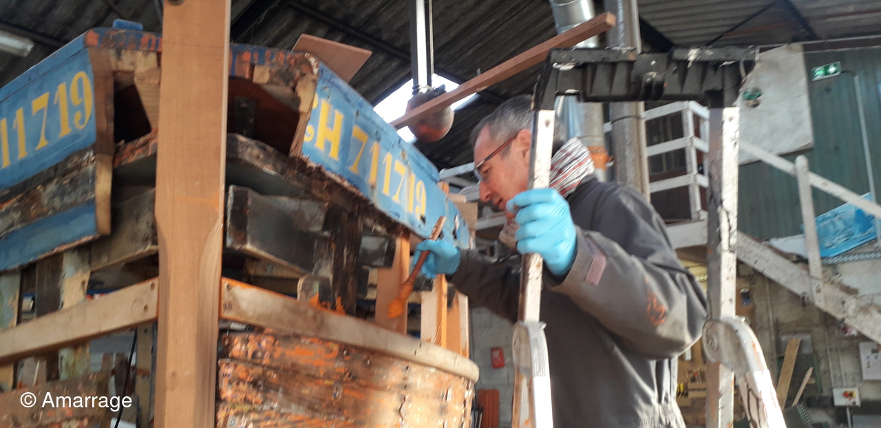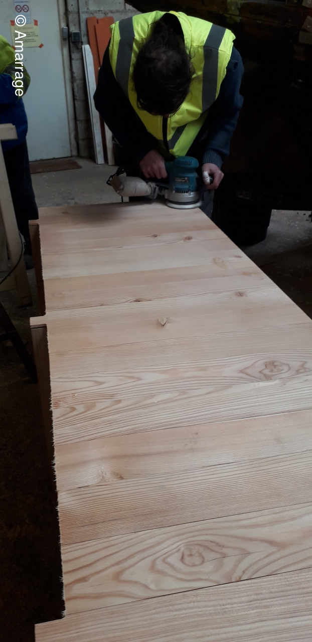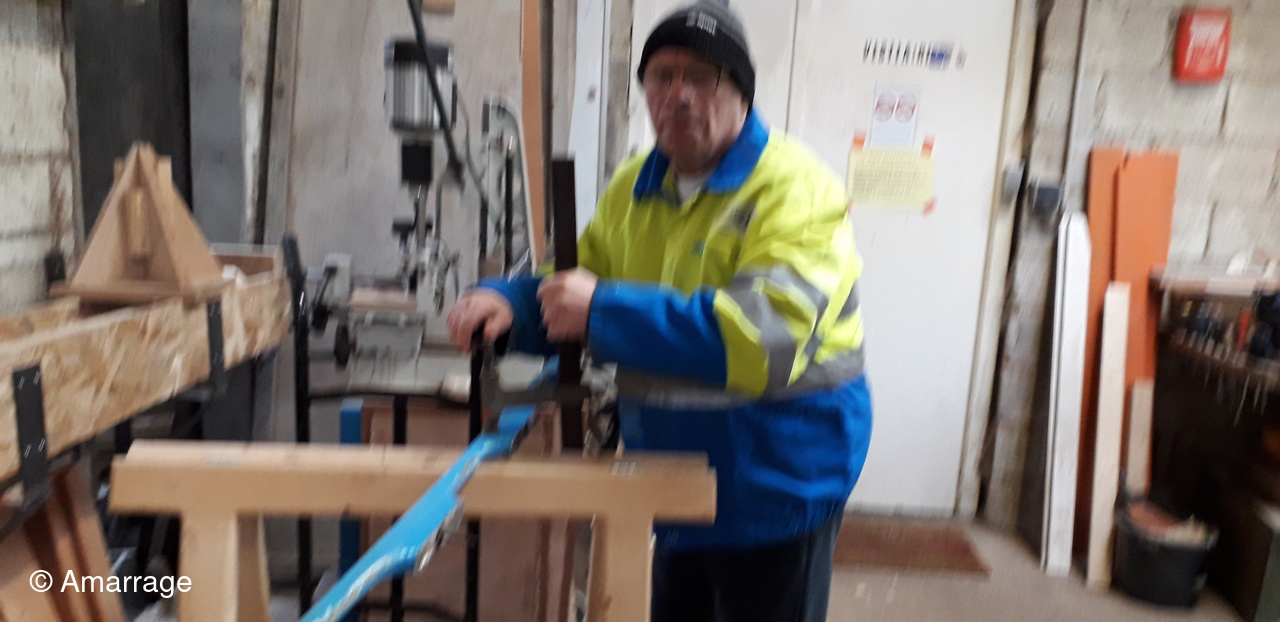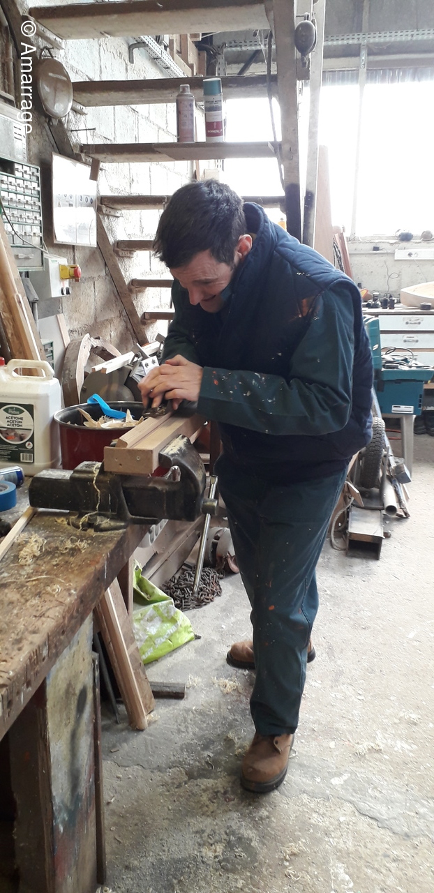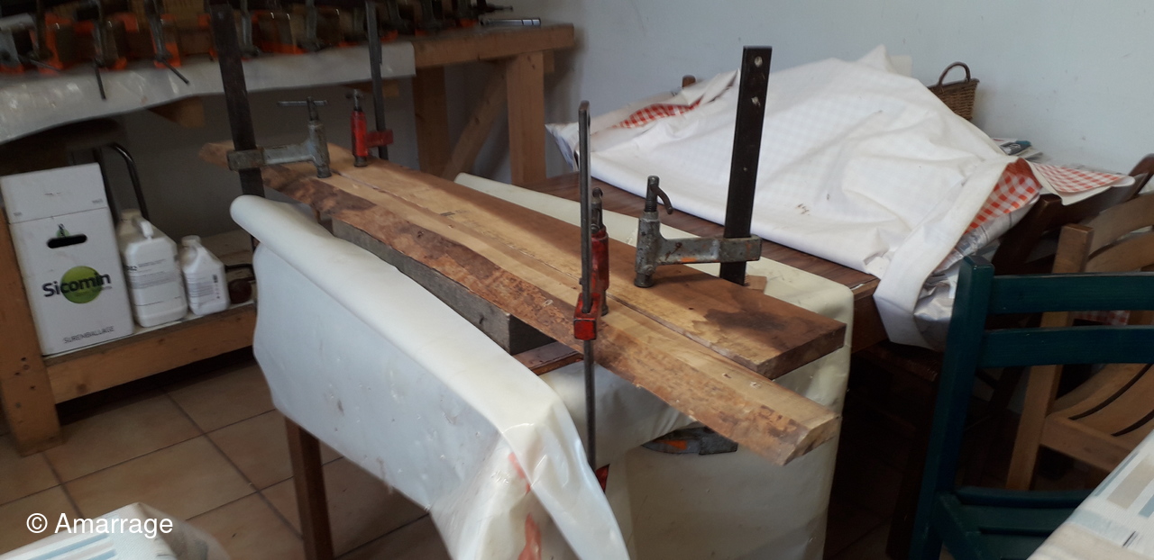 HAIZ DU RAZ: fabrication et mise en forme de la dernière membrure en lamélé-collé.