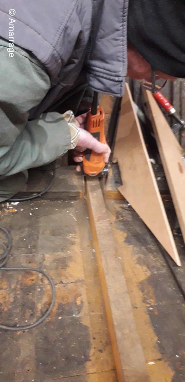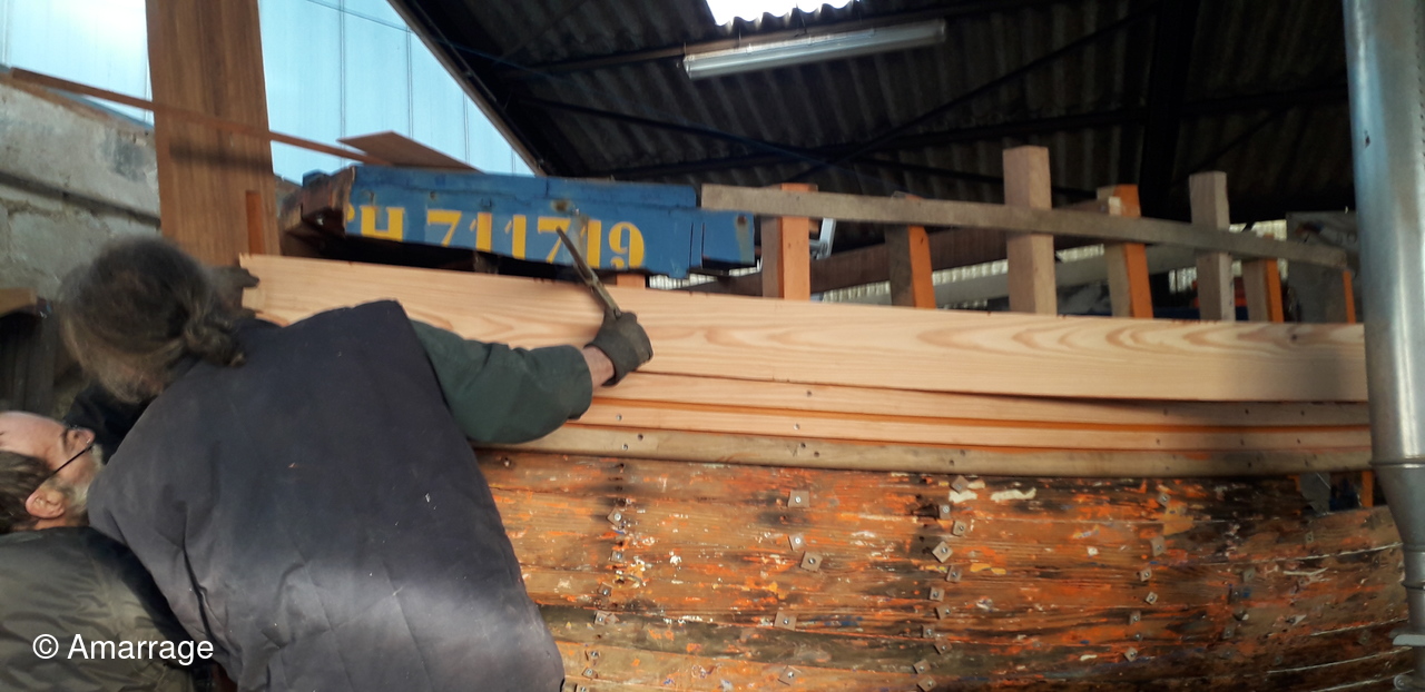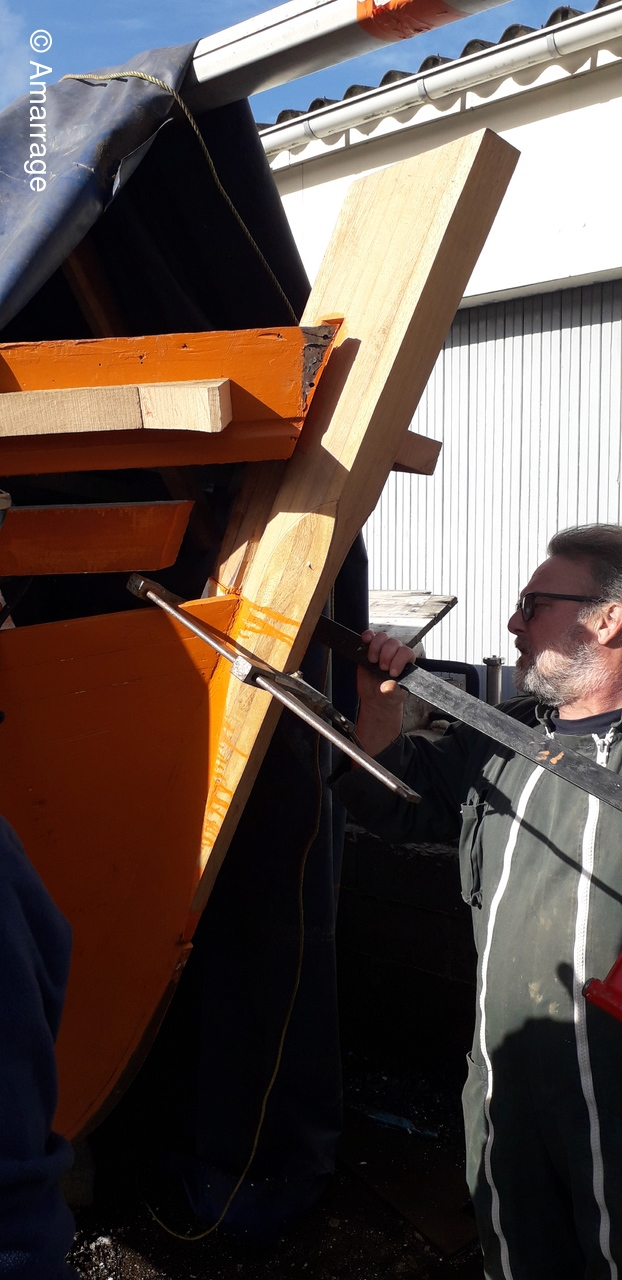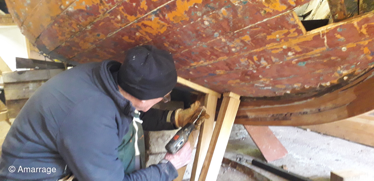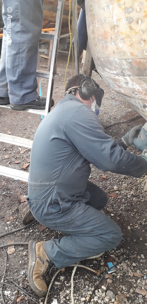 HAIZ DU RAZ: travail au niveau des bordés fond de coque à Tribord.