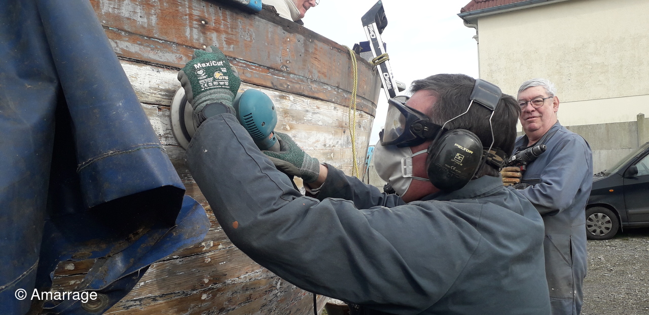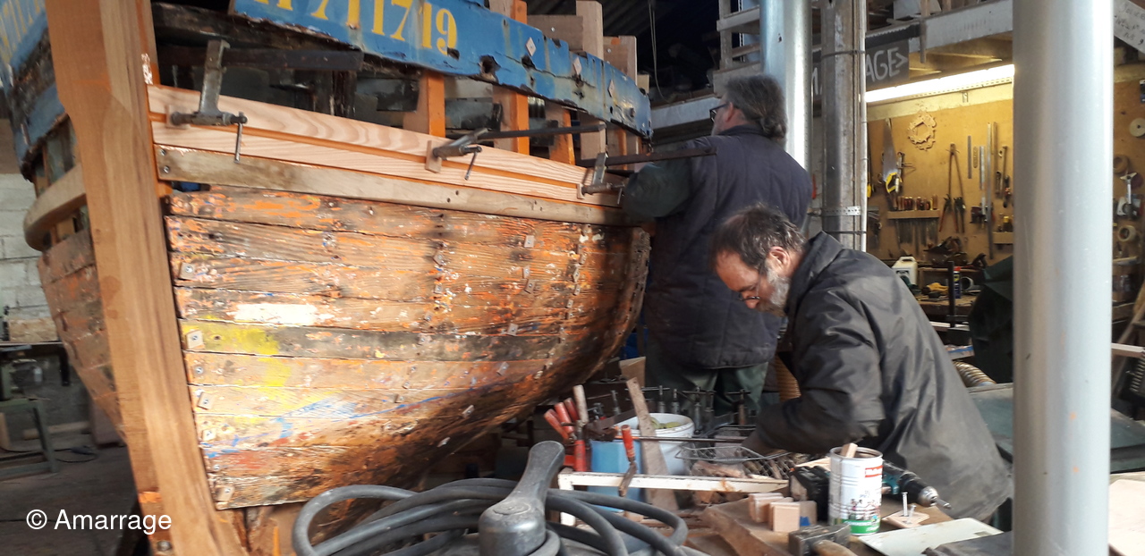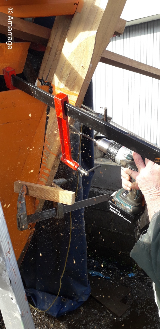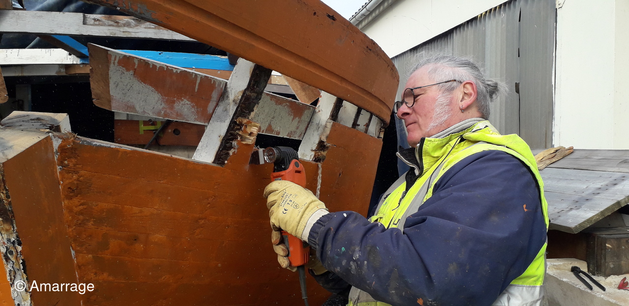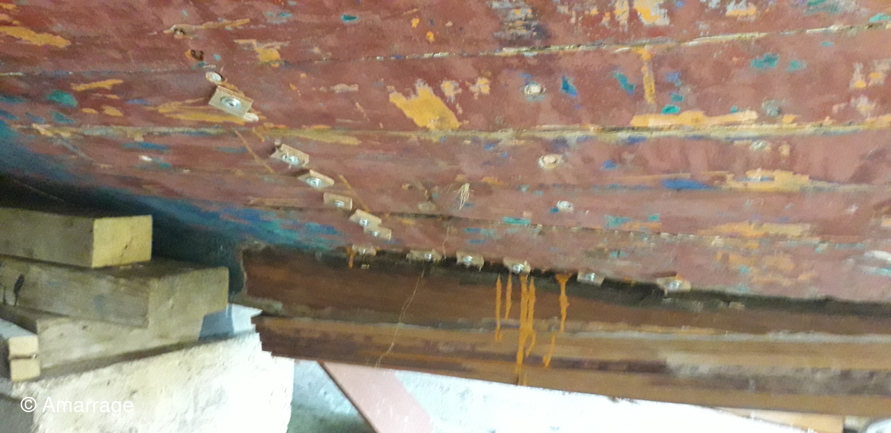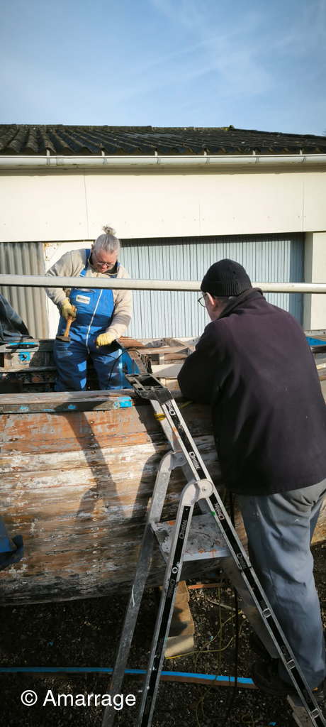 HAIZ DU RAZ: travail au niveau des bordés fond de coque à Tribord.
