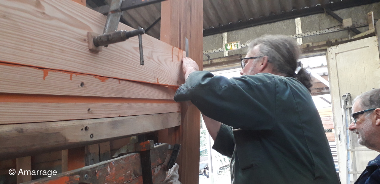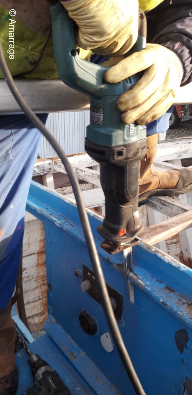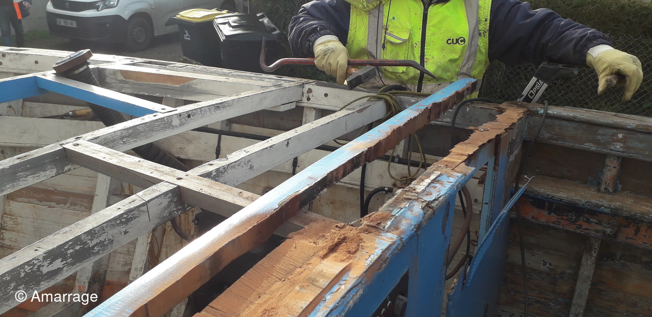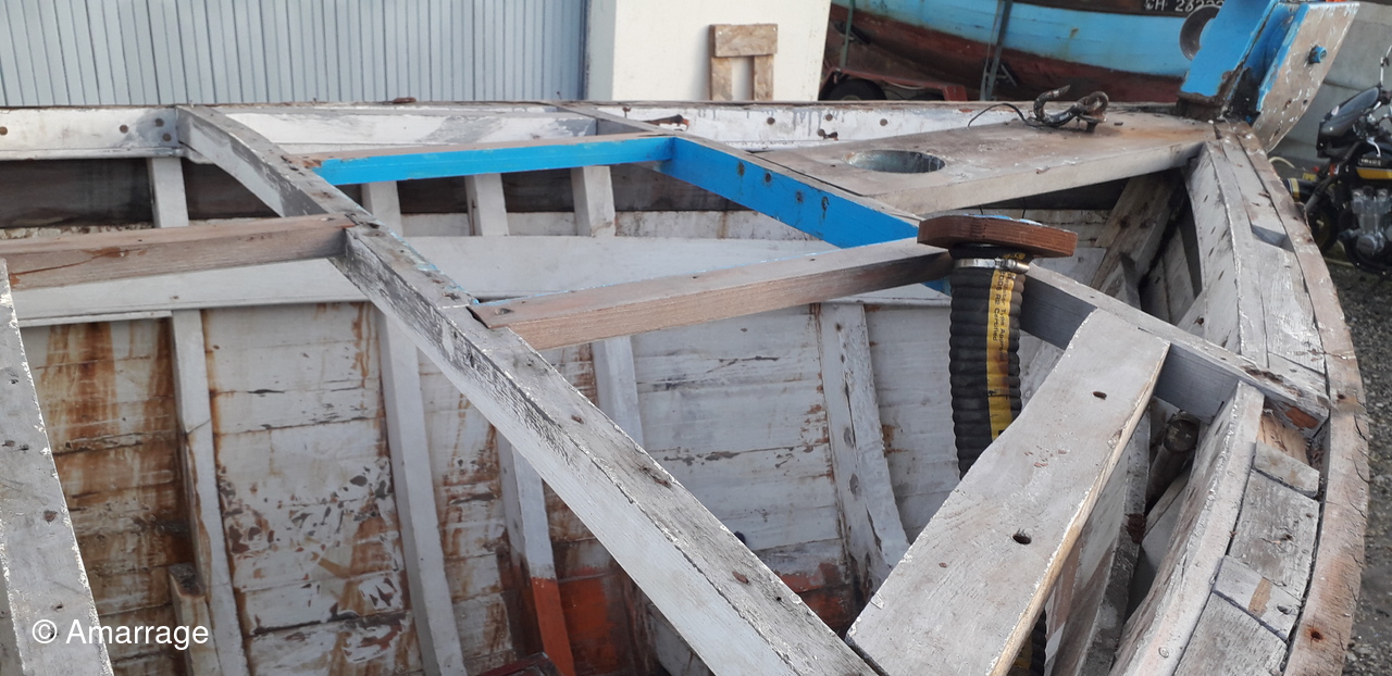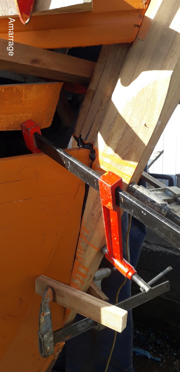 HAIZ DU RAZ: travail au niveau des bordés fond de coque à Tribord.
