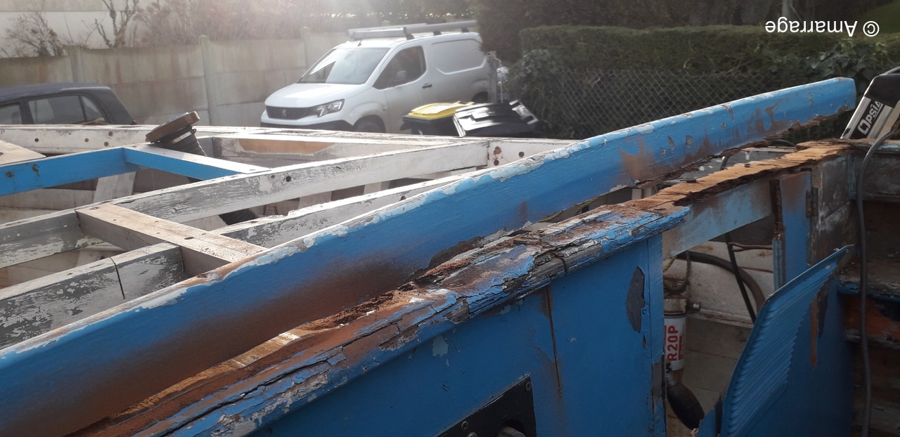 LAD: enlever parties dégradées pour refaire le pont avant. Ponçage coque.