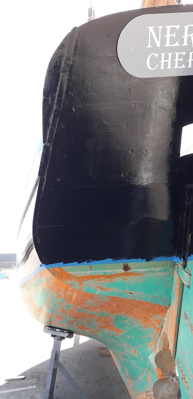 Remplacement des bordés à restaurer - 2 couches de peinture noire ont été faites.