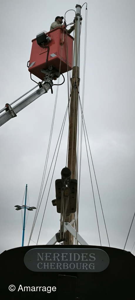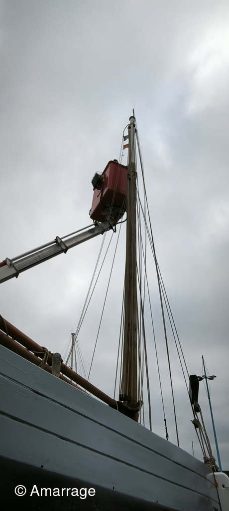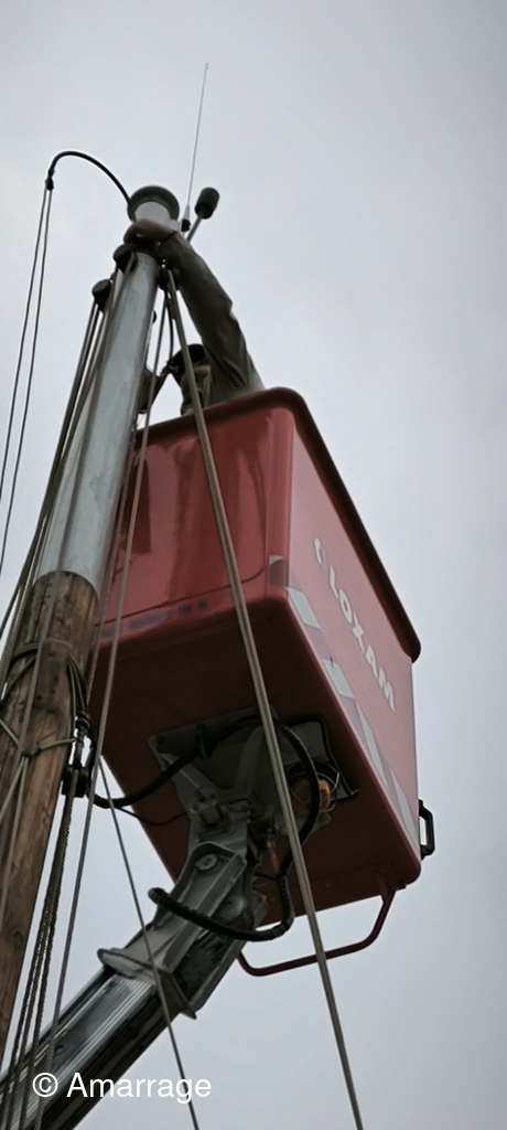 Mise en peinture coque - intervention avec nacelle en haut du mât.
