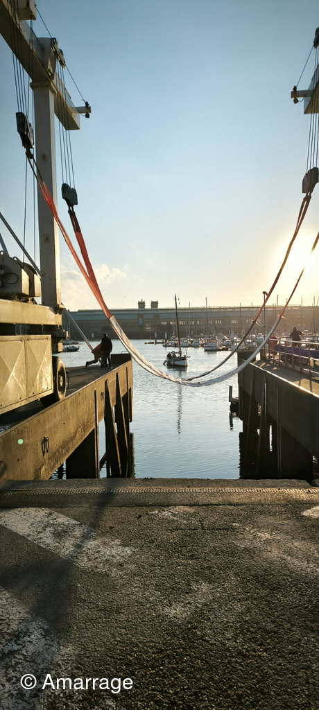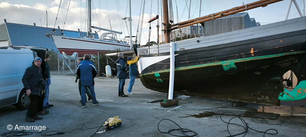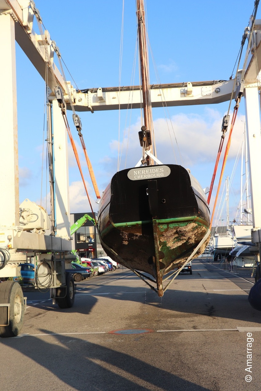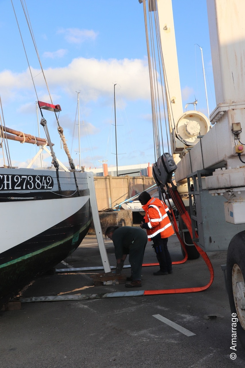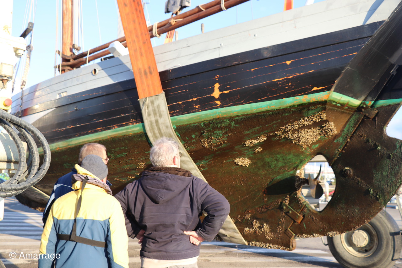 Ce matin 17 mars 2025 à 8h00, la NEREÏDES était prête pour sa mise au sec de printemps. Des membres de l'équipage "atelier" étaient présents pour cette opération. Un beau soleil nous accompagnait, mais une température assez frisquette.