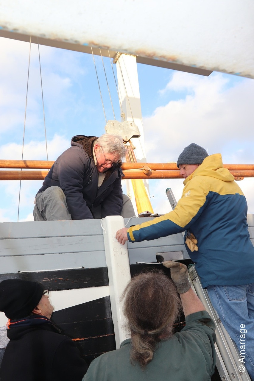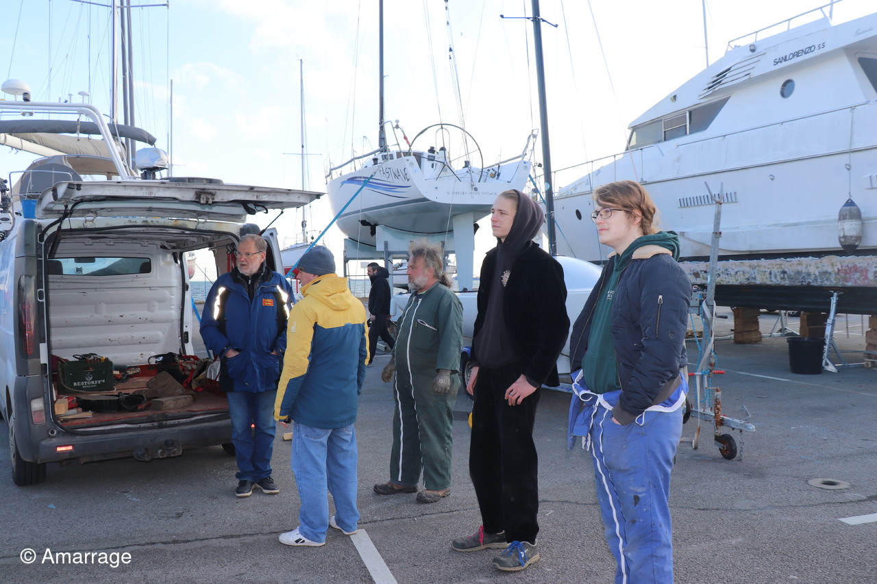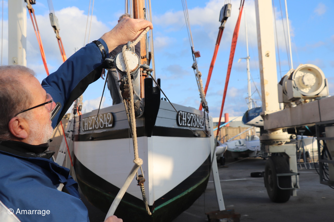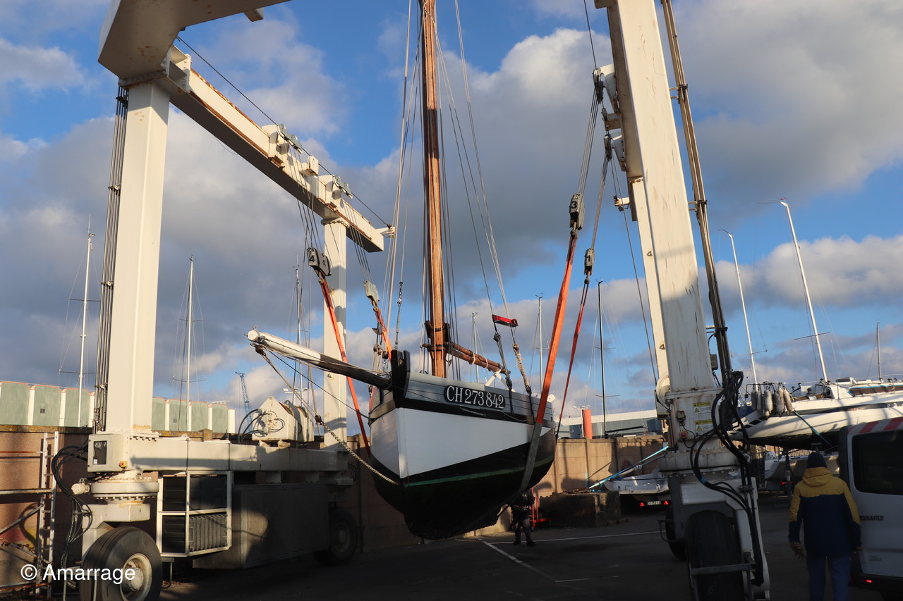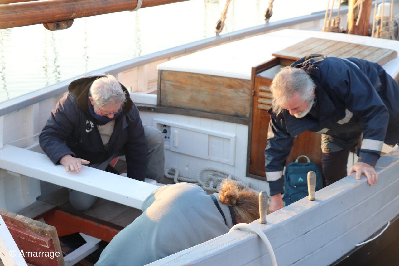 Ce matin 17 mars 2025 à 8h00, la NEREÏDES était prête pour sa mise au sec de printemps. Des membres de l'équipage "atelier" étaient présents pour cette opération. Un beau soleil nous accompagnait, mais une température assez frisquette.
