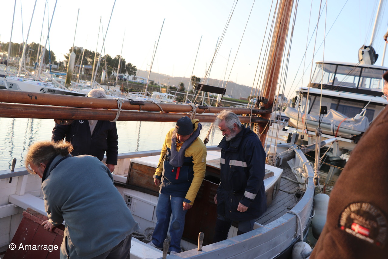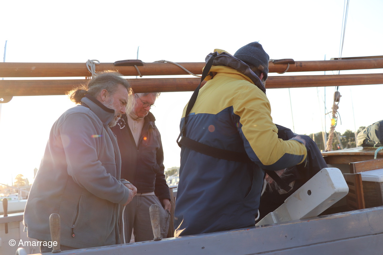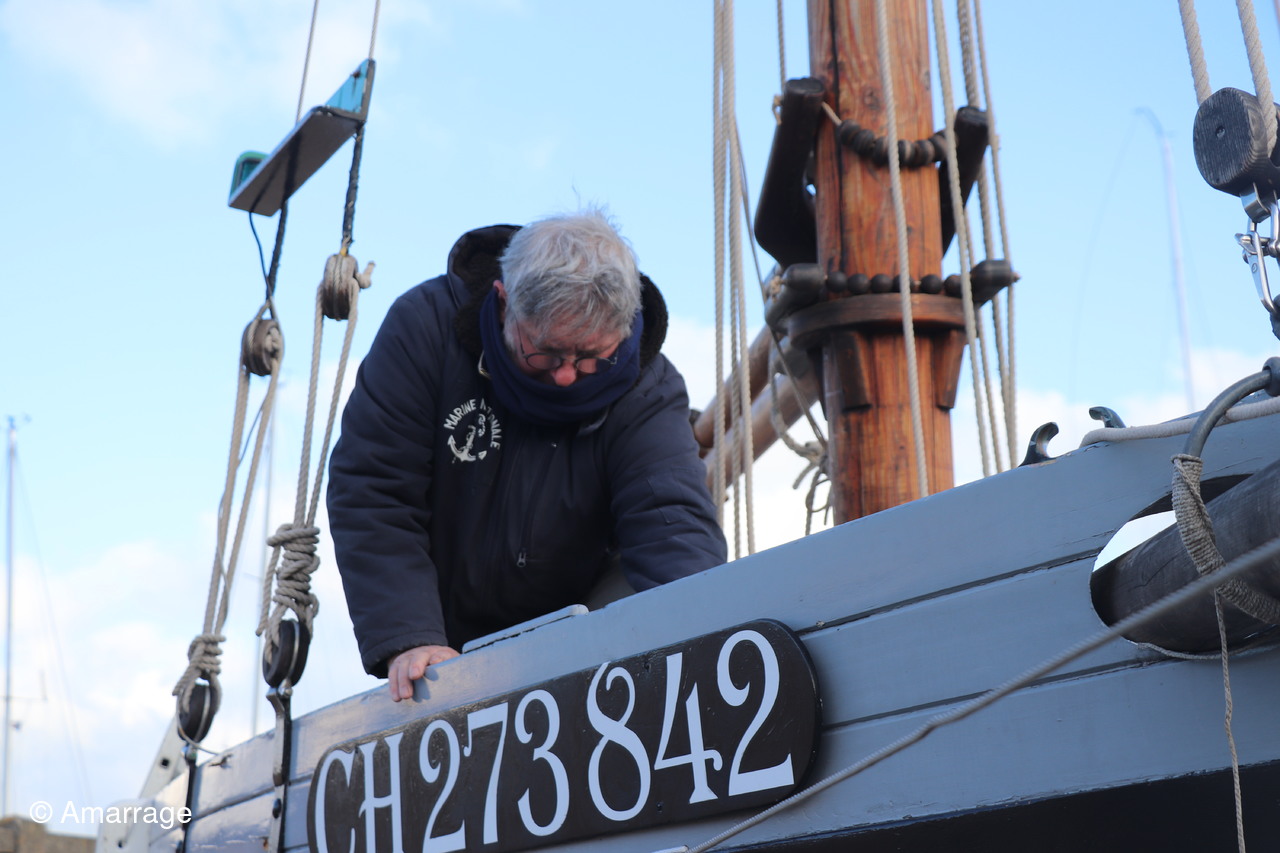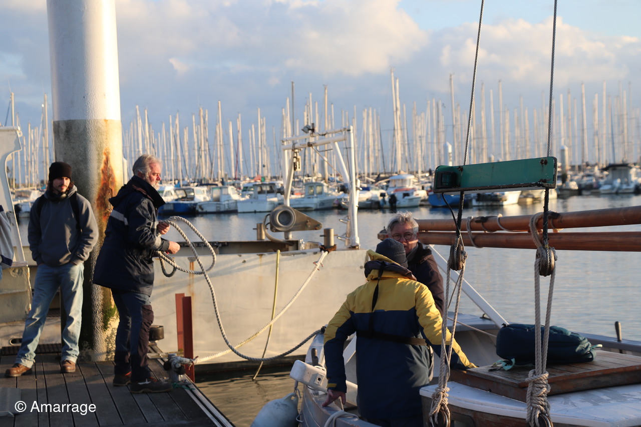 Ce matin 17 mars 2025 à 8h00, la NEREÏDES était prête pour sa mise au sec de printemps. Des membres de l'équipage "atelier" étaient présents pour cette opération. Un beau soleil nous accompagnait, mais une température assez frisquette.