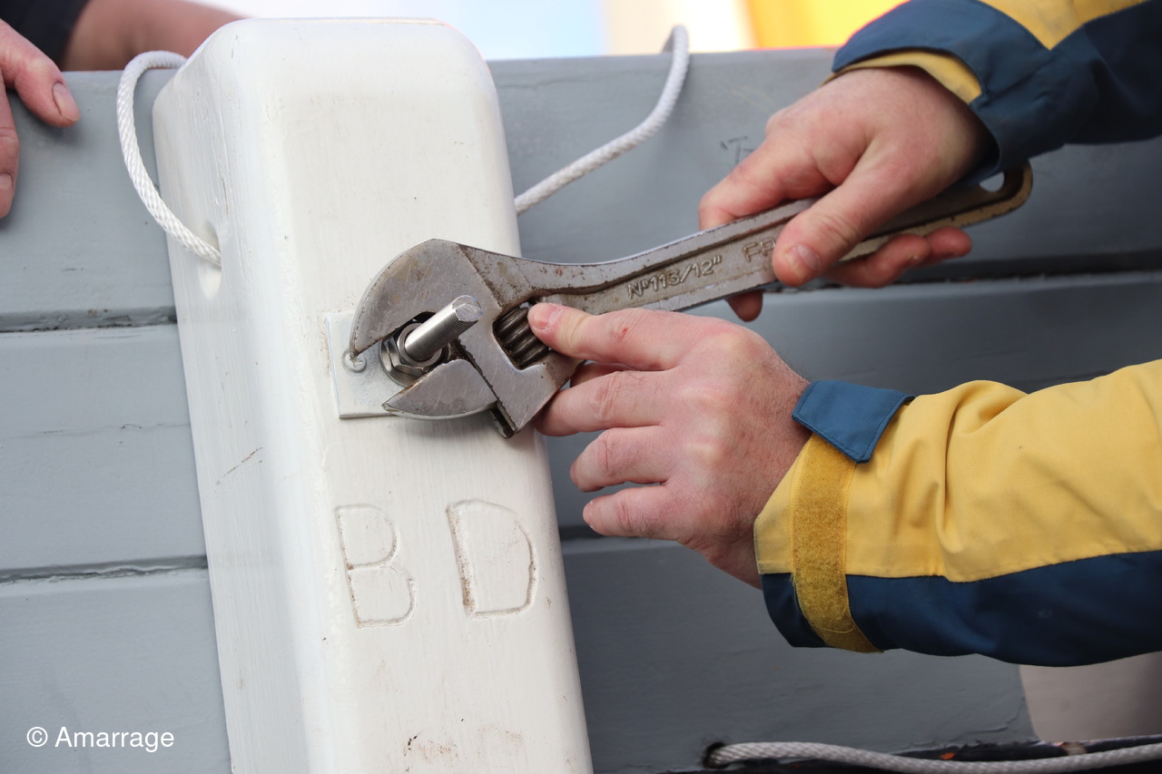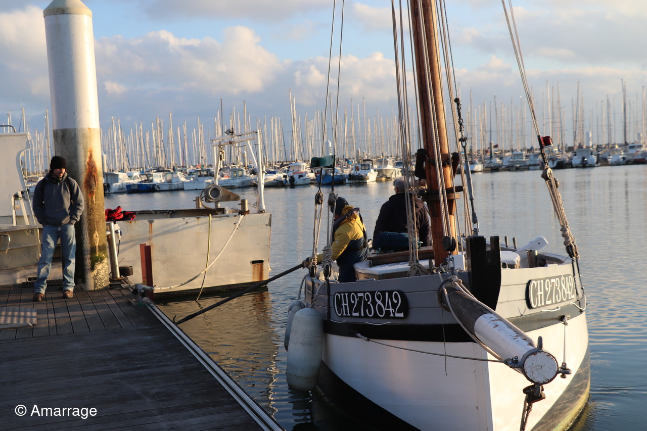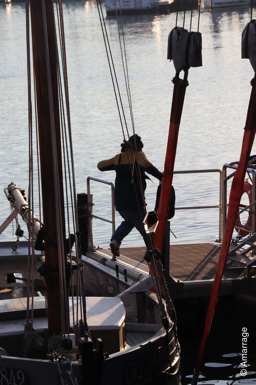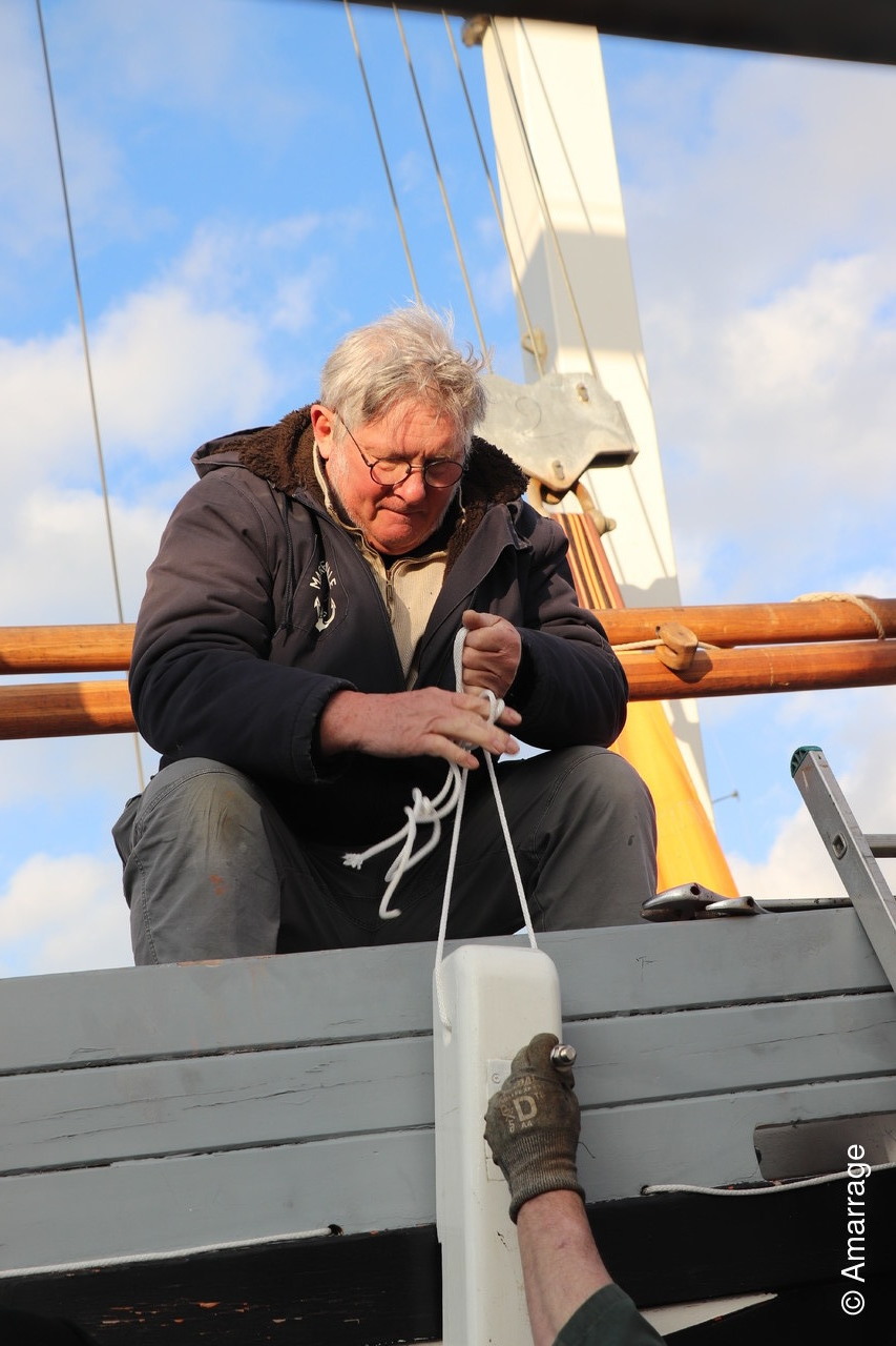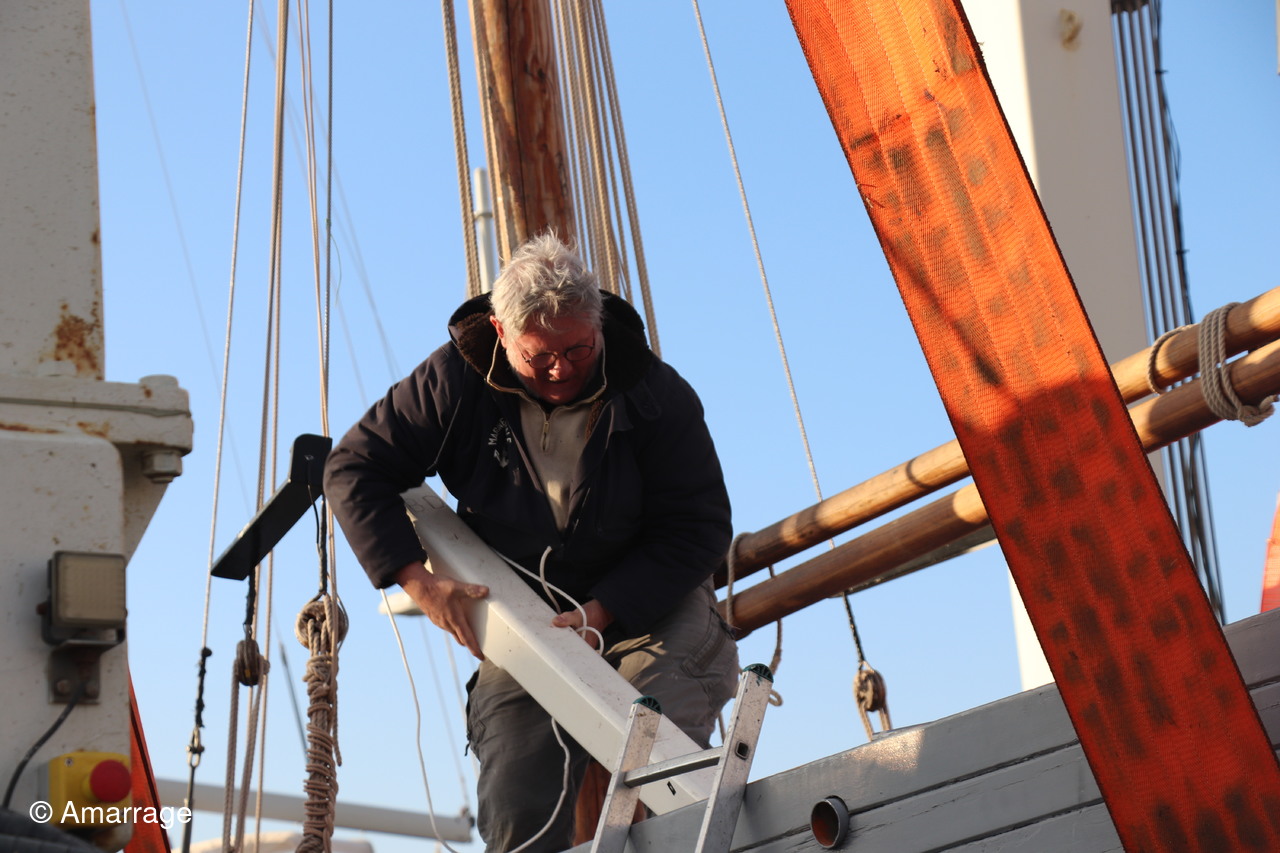 Ce matin 17 mars 2025 à 8h00, la NEREÏDES était prête pour sa mise au sec de printemps. Des membres de l'équipage "atelier" étaient présents pour cette opération. Un beau soleil nous accompagnait, mais une température assez frisquette.