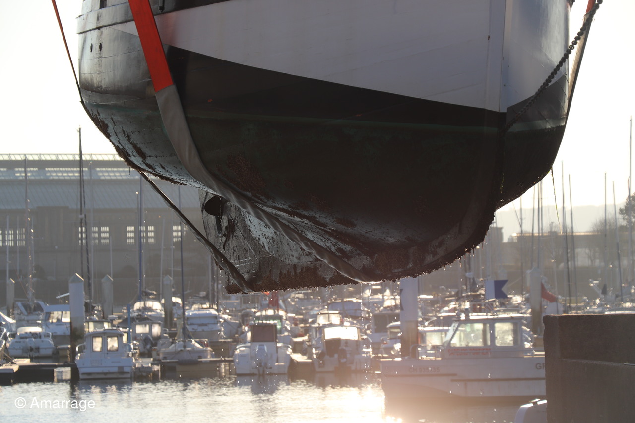 Sa remise à l'eau est en principe prévue pour le 17 avril 2025 soit un mois de carénage.
