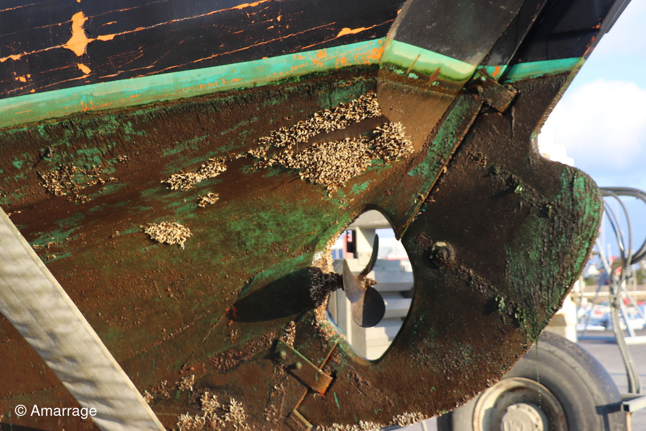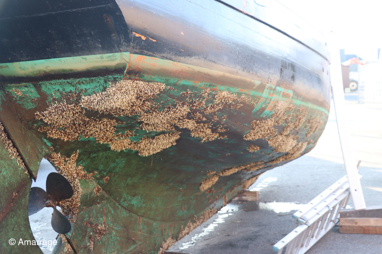 La coque est prête pour être mise en peinture. On voit aussi les 2 bordés sur Tb à remplacer.