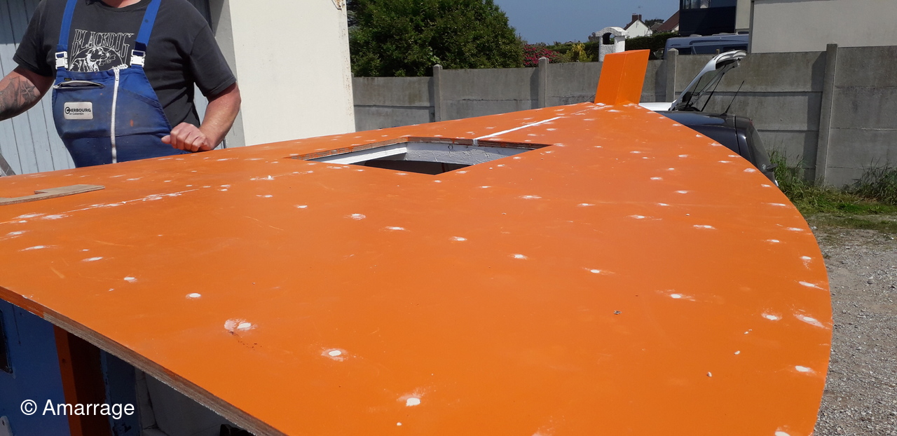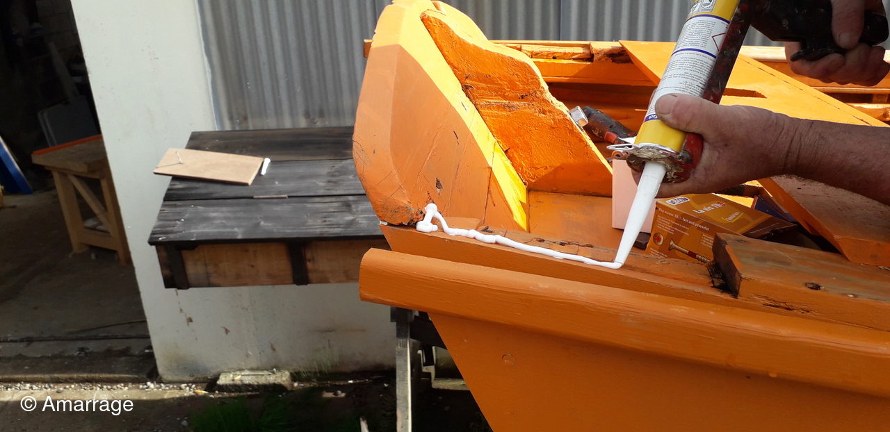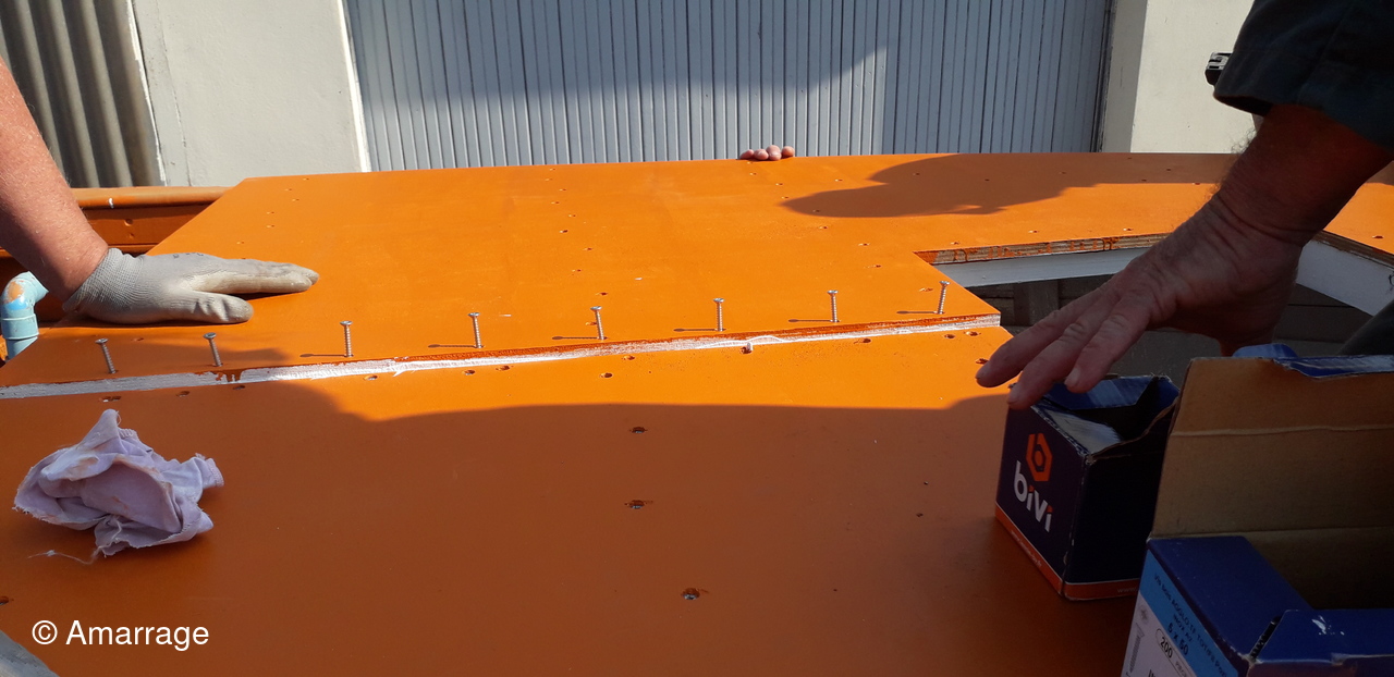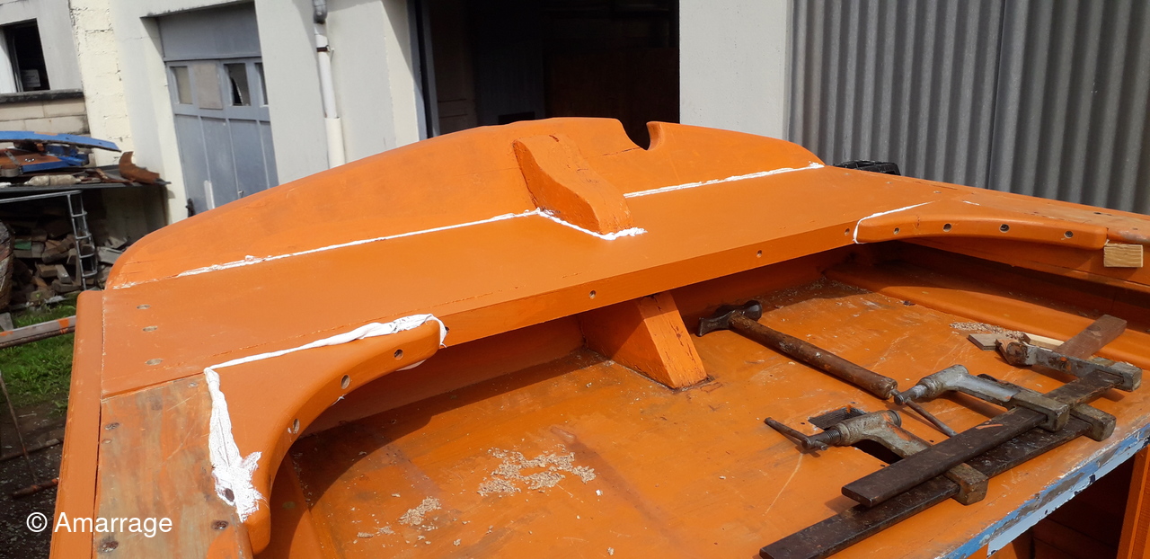 LAD: mise en place de la plache de couronnement - fabrication capot pour accès à la patie avant - mise en place des taquets Tb et Bb sur l'avant - maasticage.
