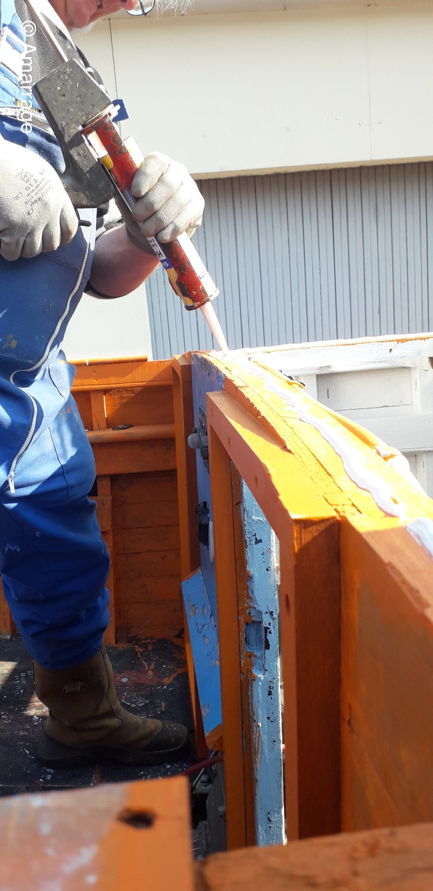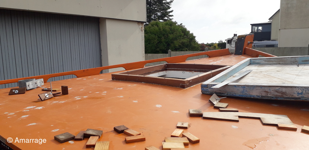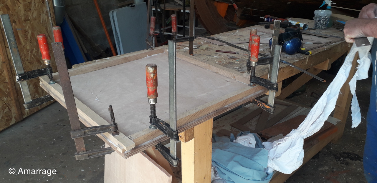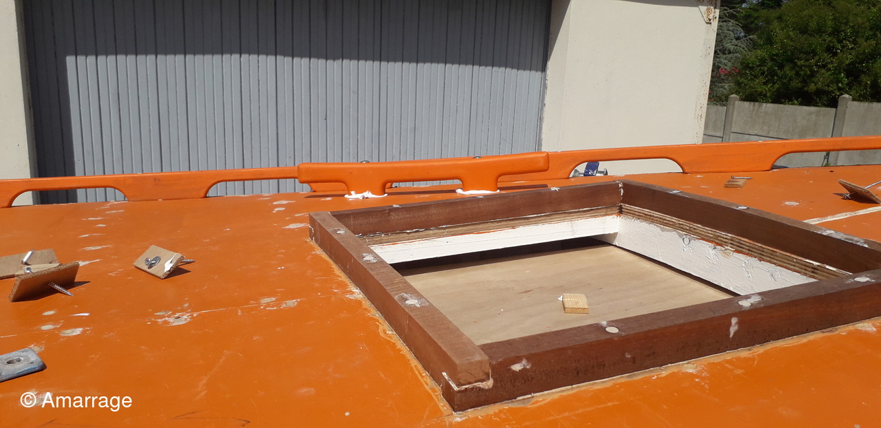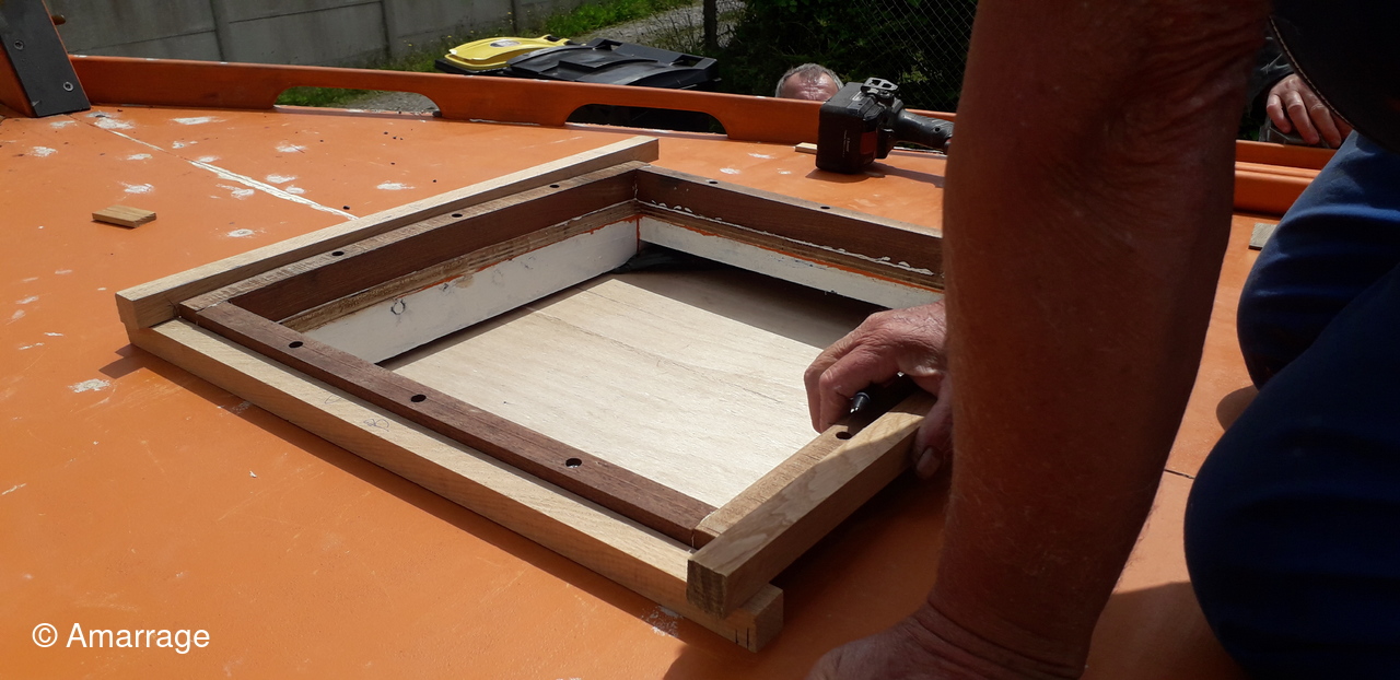 LAD: mise en place de la plache de couronnement - fabrication capot pour accès à la patie avant - mise en place des taquets Tb et Bb sur l'avant - maasticage.