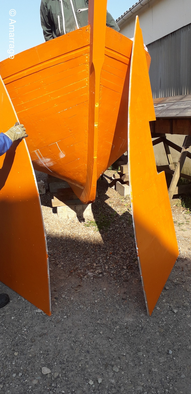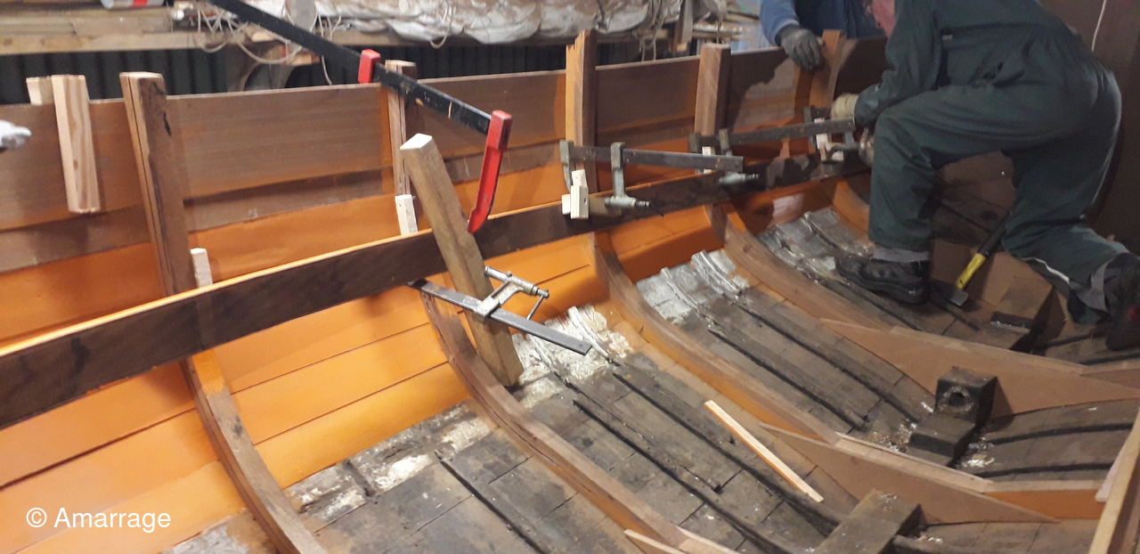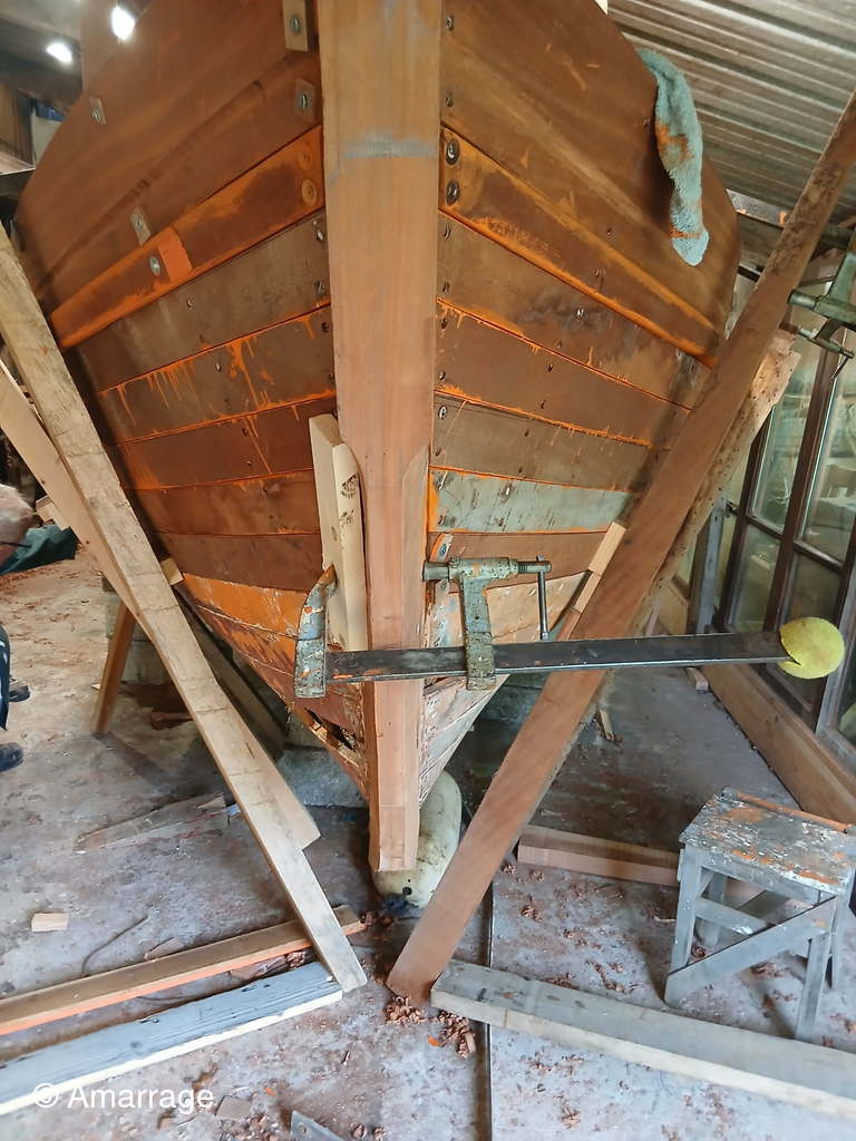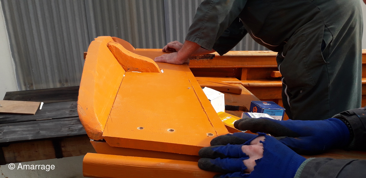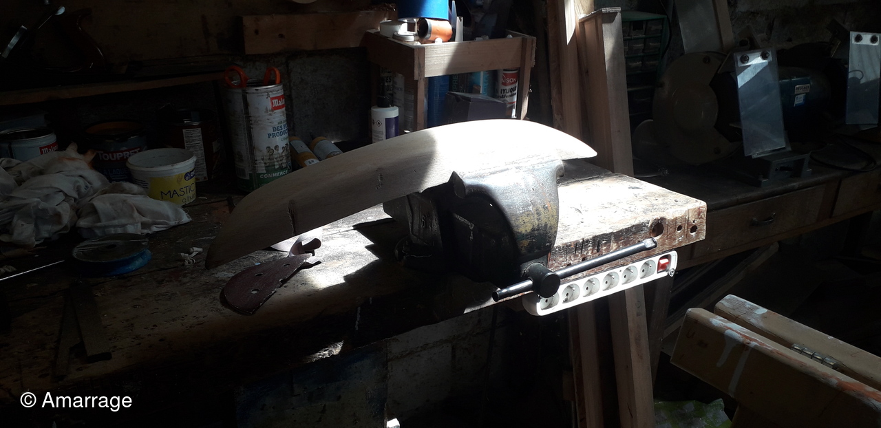 LAD: pose de ferrures neuves sur le safran - ajustage de la planche de couronnement.