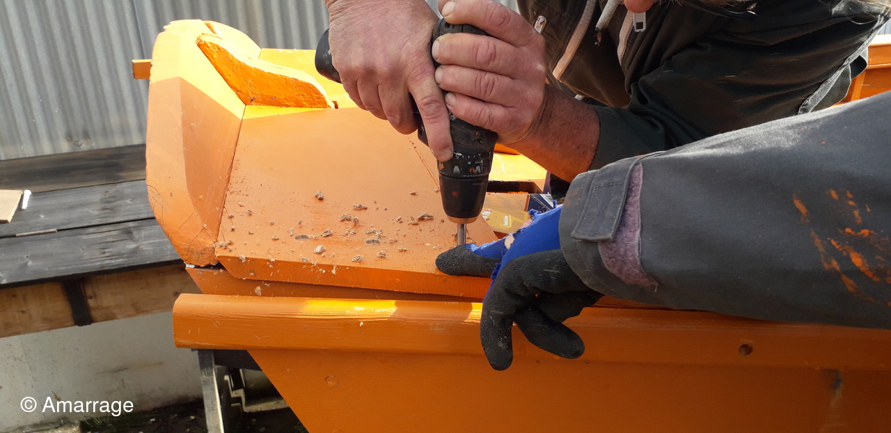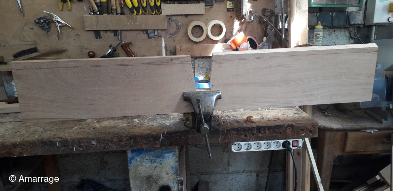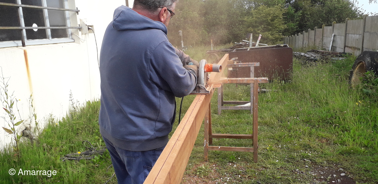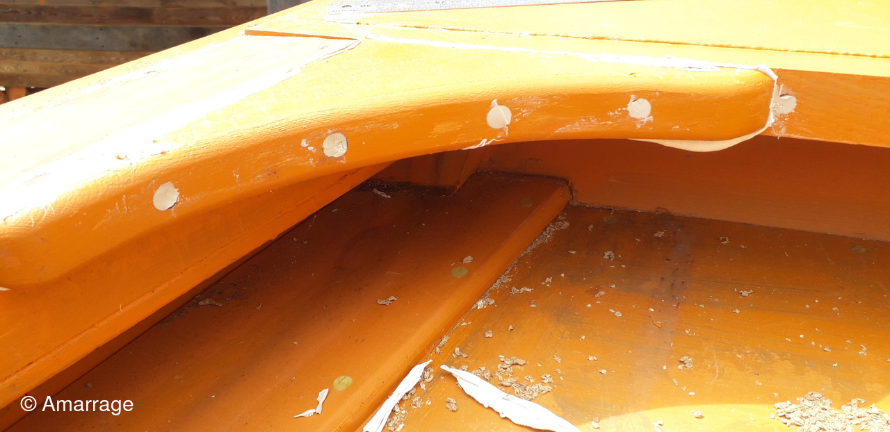 LAD: pose de ferrures neuves sur le safran - ajustage de la planche de couronnement.