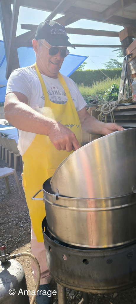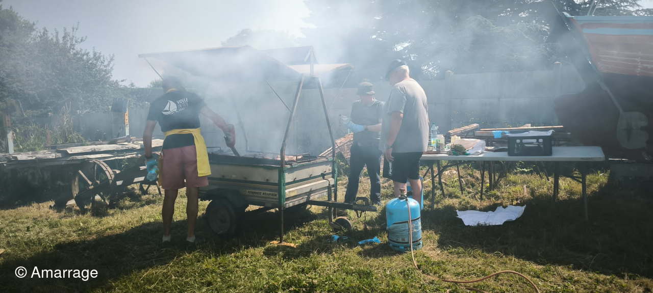 Par une belle journée canicu;laire le repas des adhérents s'est tenu à l'Atelier d'Amarrage au 15 Bd de la Hague à Querqueville. En cours de journée le dieu Eole est venu un peu pertubé cet évèment où 140 à 150 convives, ont passés une très belle journée de convivialité, de partage et de bonne humeur. Le repas fut très copieux avec apéritif, entrées, grillades, frites, fromages, déssert, boissons...tout y était.