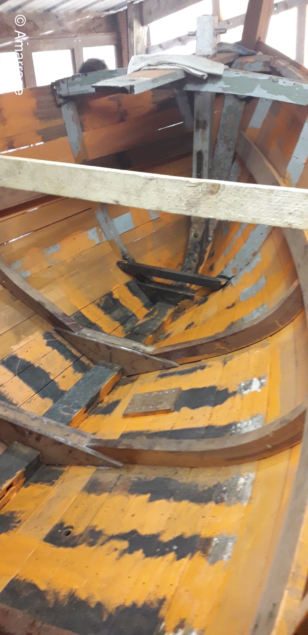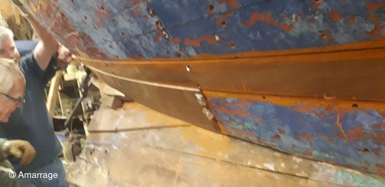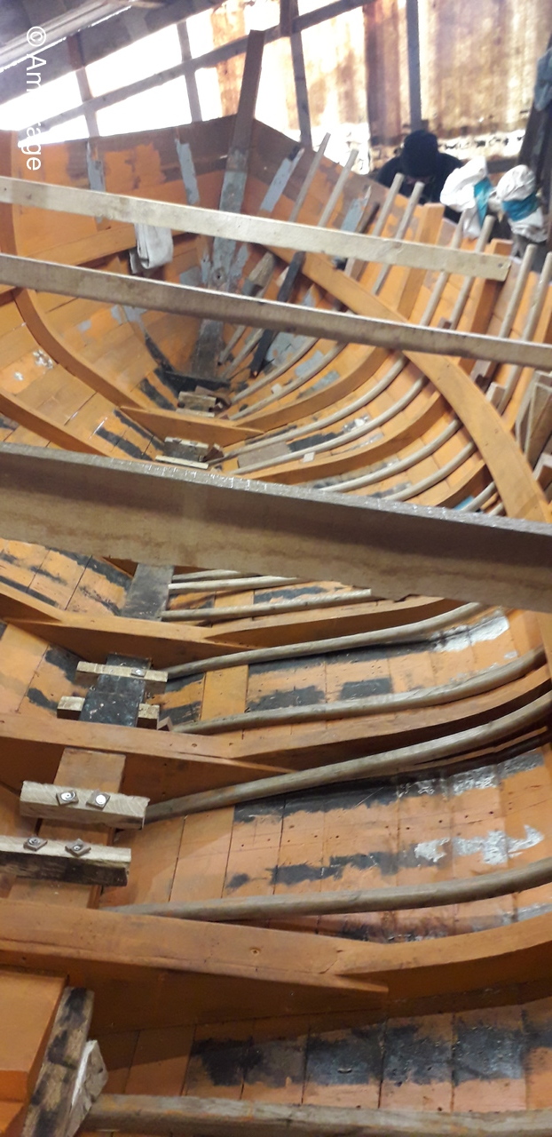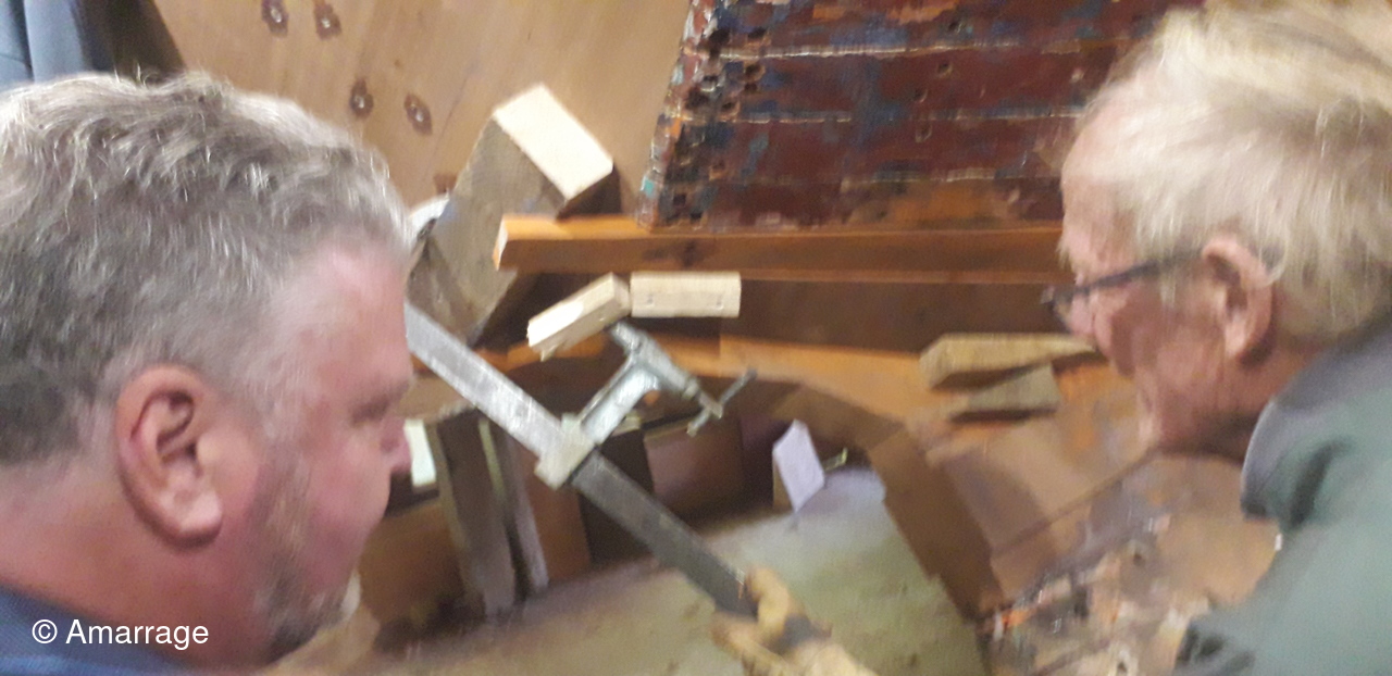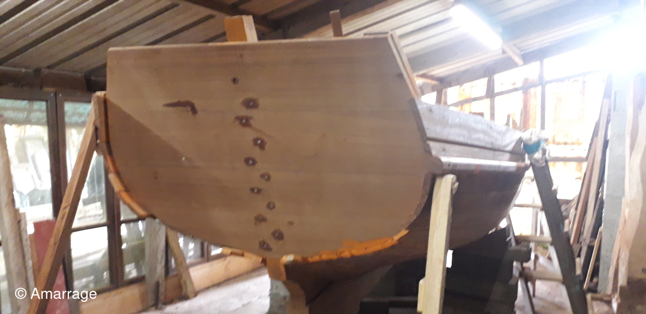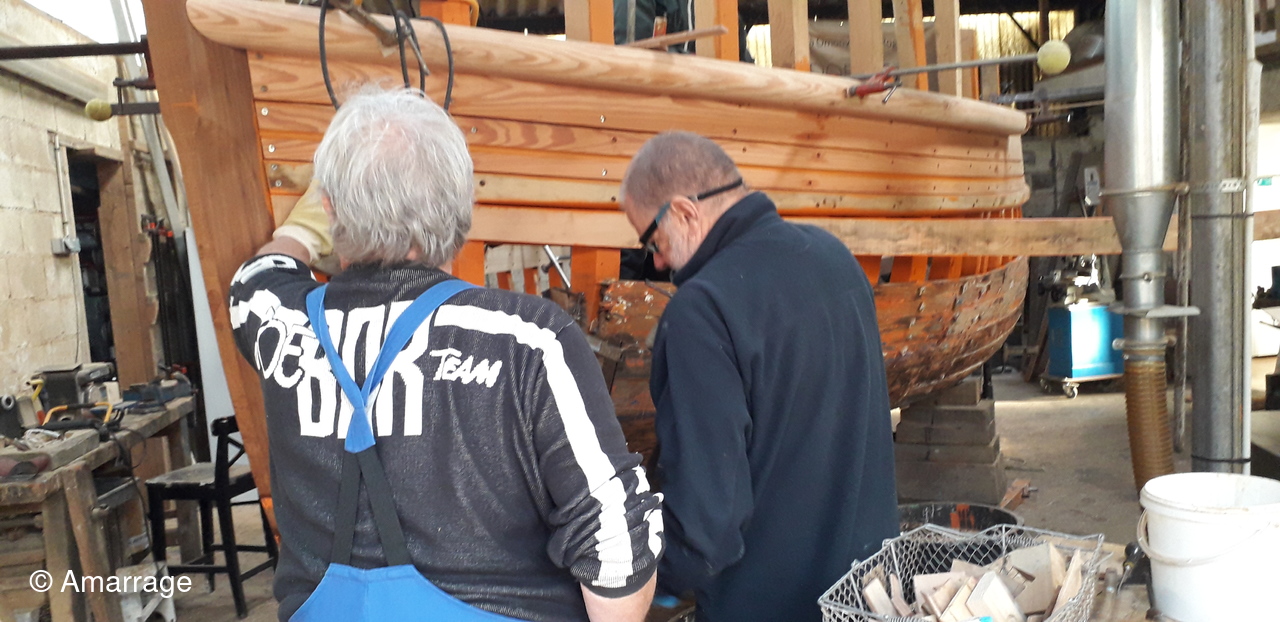 LA HAGUE: pose de la dernière membrure et pose de la serre de bâbord.