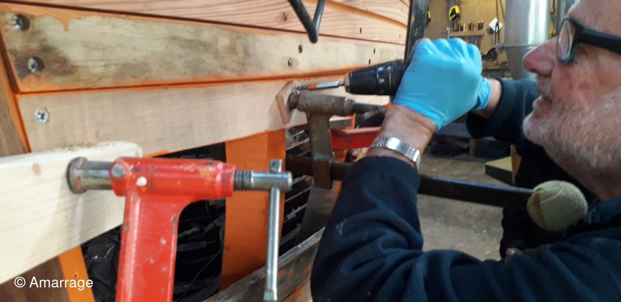 HAIZ DU RAZ: préparation des membrures ployées - début du rivetage.
