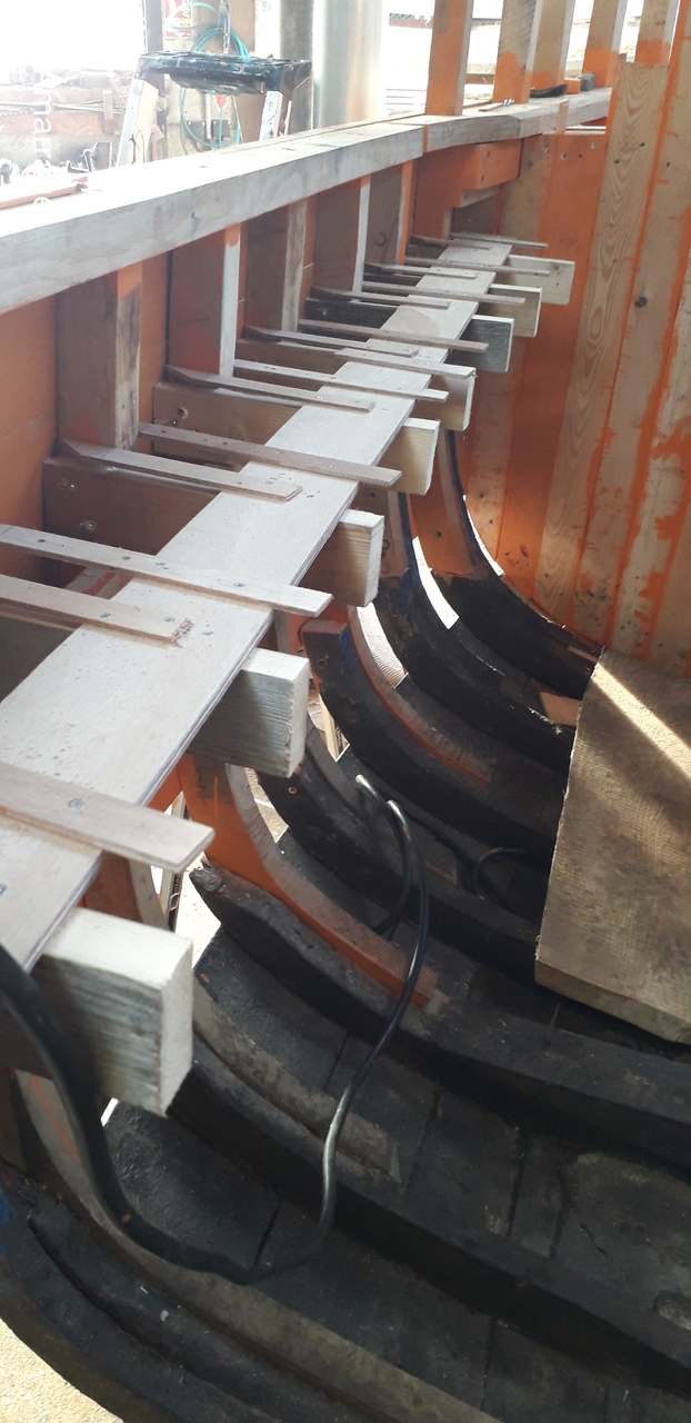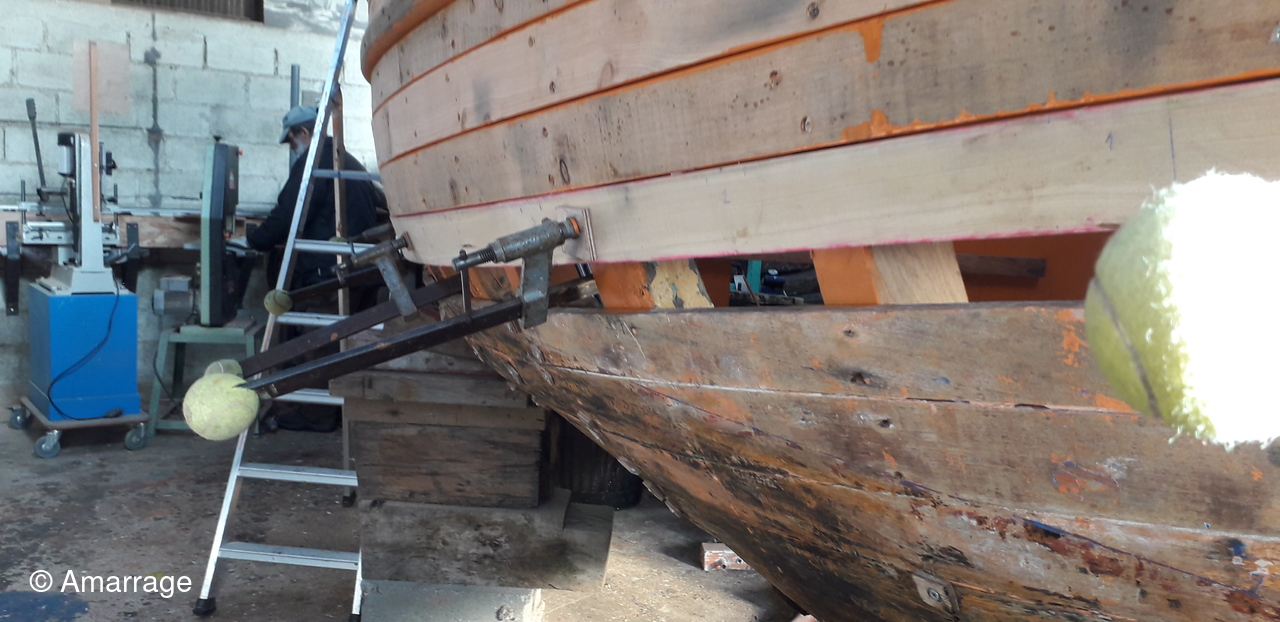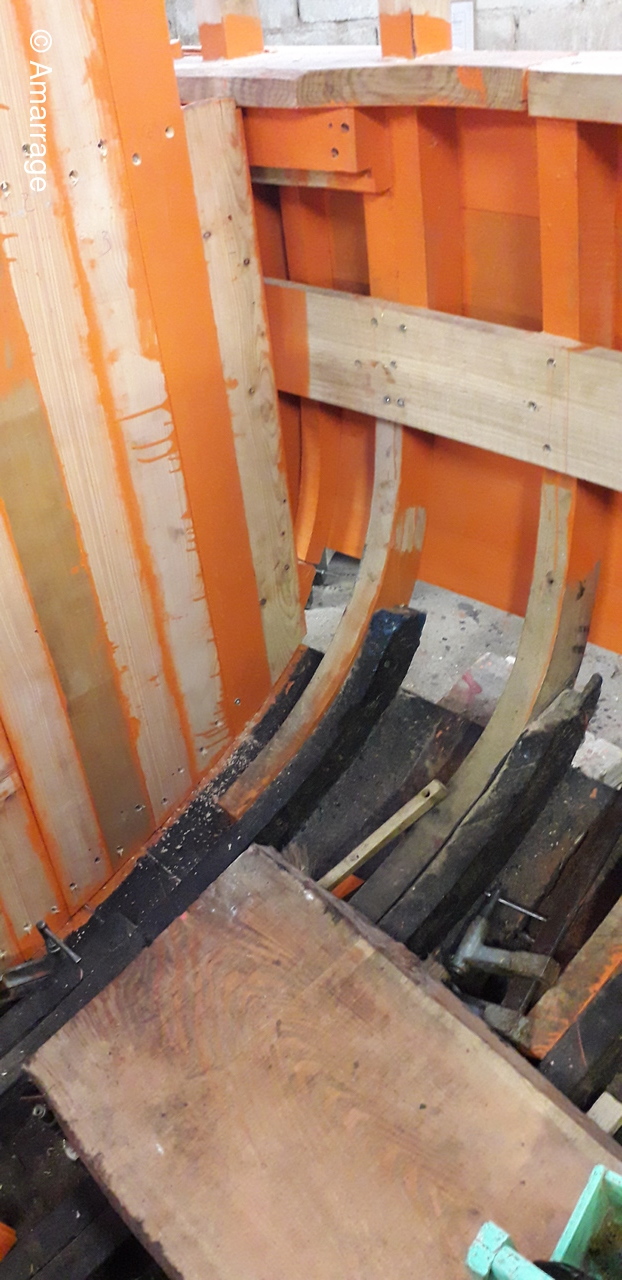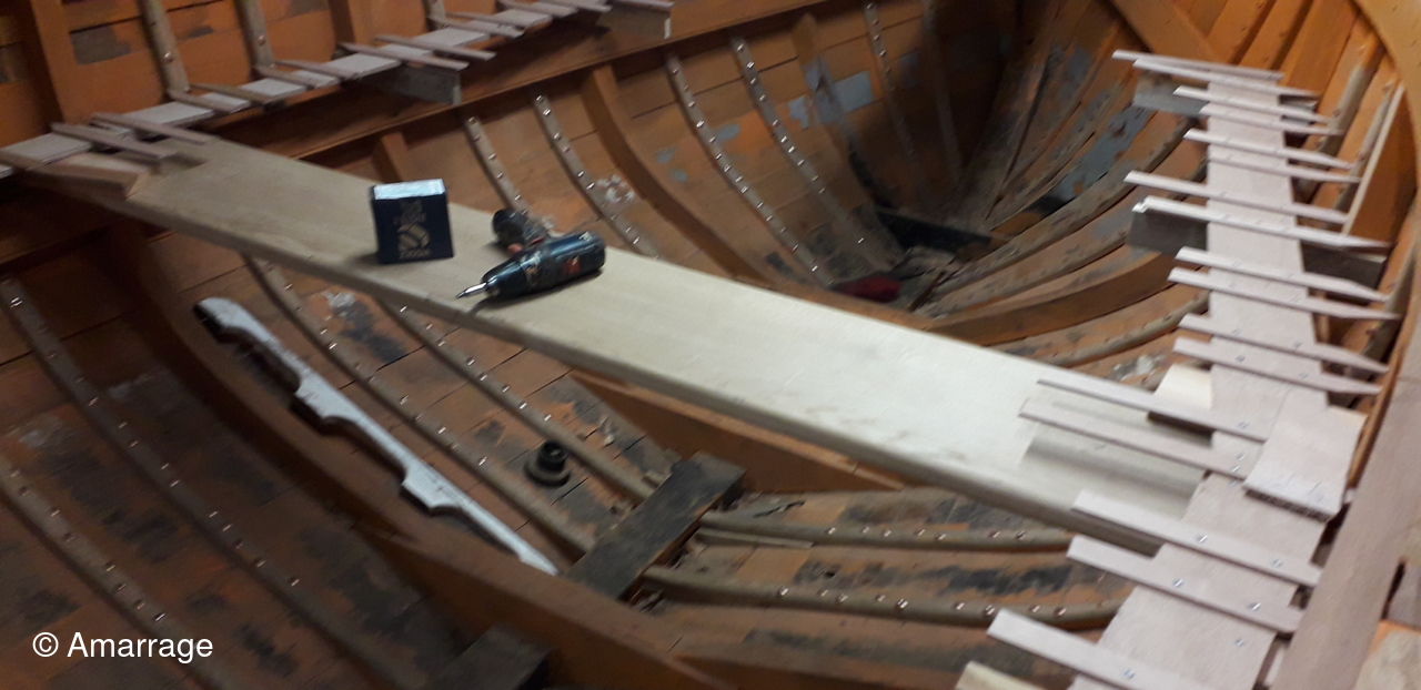 HAIZ DU RAZ: fabrication : plat bord Bd et Tb - planche de couronnement - pièce de bois pour le pont avant - mise en forme tableau arrière - travail sur les bordés qui "débordent".