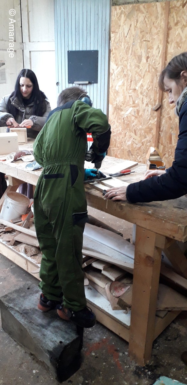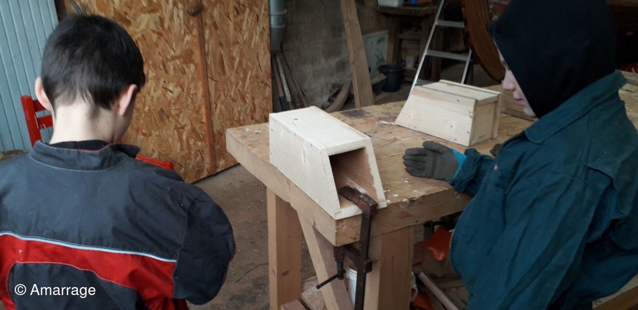 le travail continue sur la fabrication de nichoirs pour oiseaux.