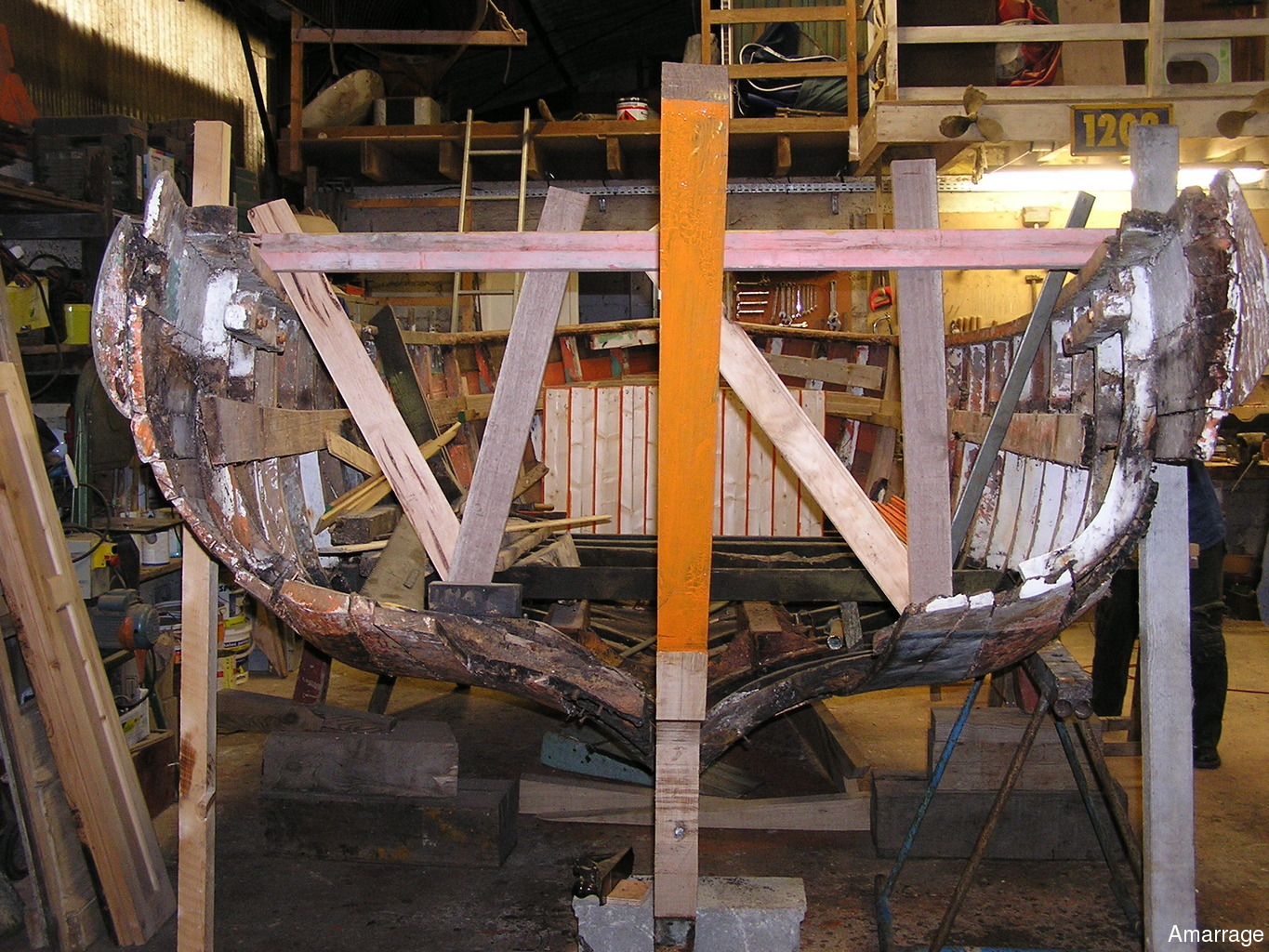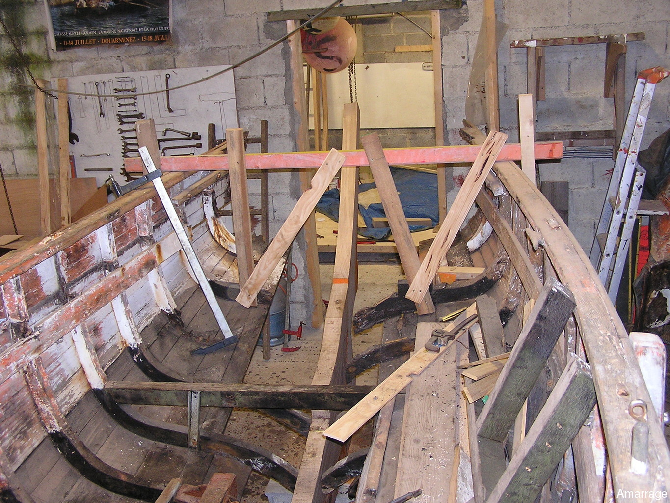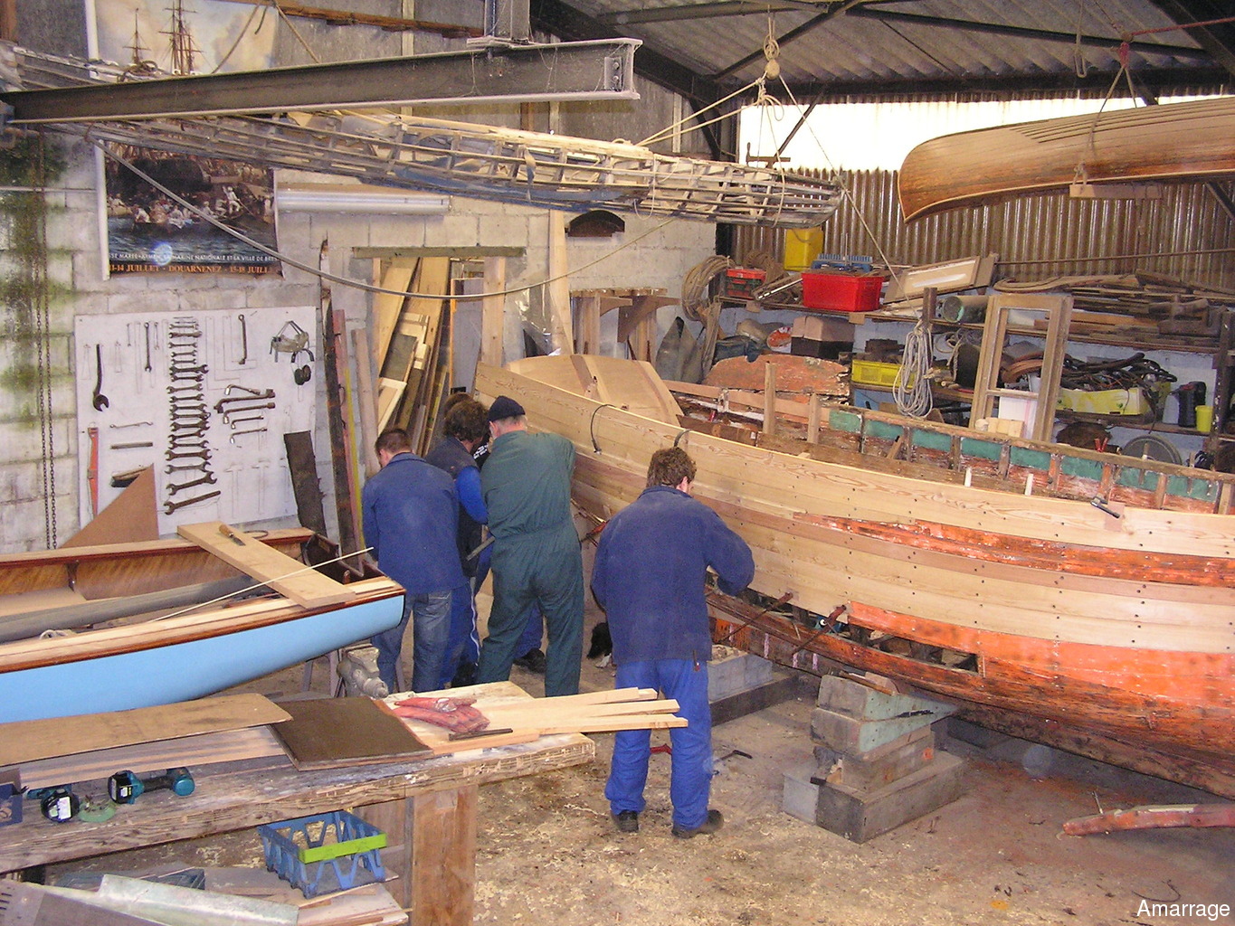 Un diaporama sur la restauration d'Awassa, vaquelotte du Cotentin appartenant à Mr Lambert, adhérent de l'association. Elle fut menée à l'atelier sous la direction d'Olivier Berrat charpentier de marine d'Amarrage. Une épave arrive, un bateau neuf ressort, ça valait bien un repas de fin de chantier!!!!