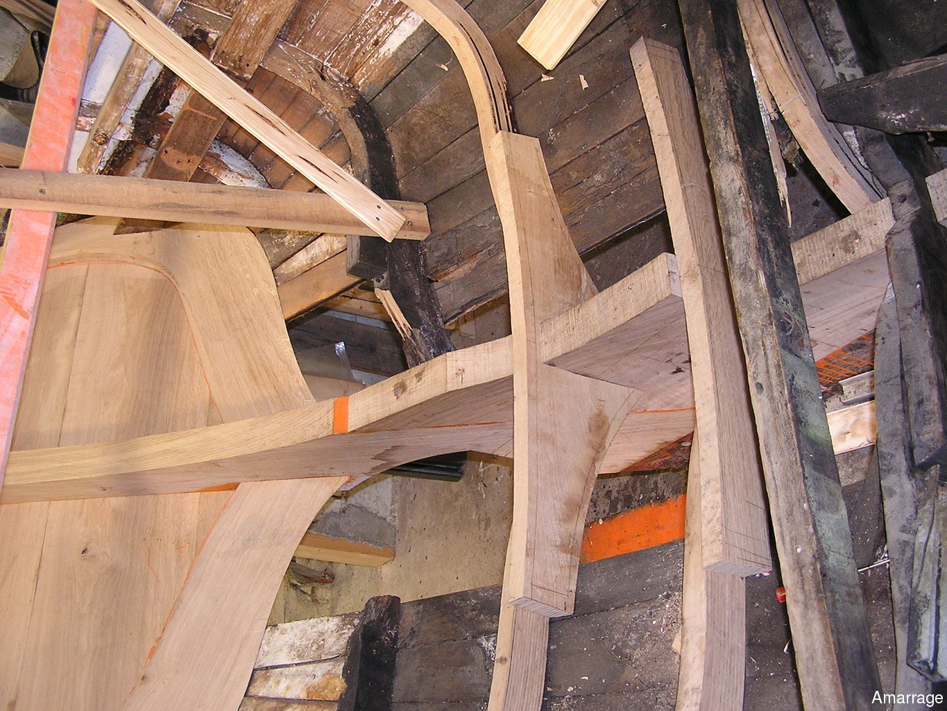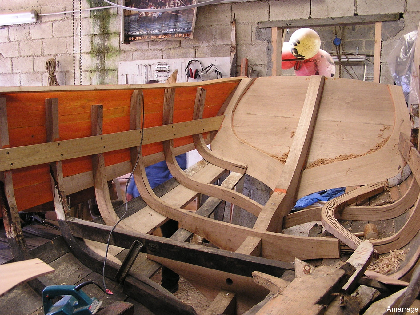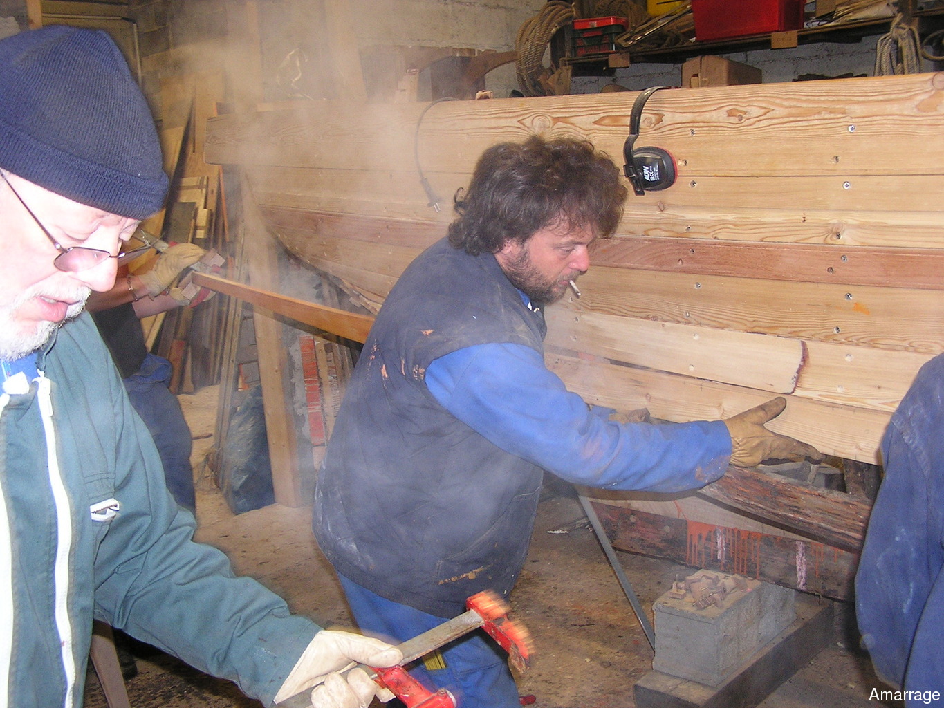 Un diaporama sur la restauration d'Awassa, vaquelotte du Cotentin appartenant à Mr Lambert, adhérent de l'association. Elle fut menée à l'atelier sous la direction d'Olivier Berrat charpentier de marine d'Amarrage. Une épave arrive, un bateau neuf ressort, ça valait bien un repas de fin de chantier!!!!
