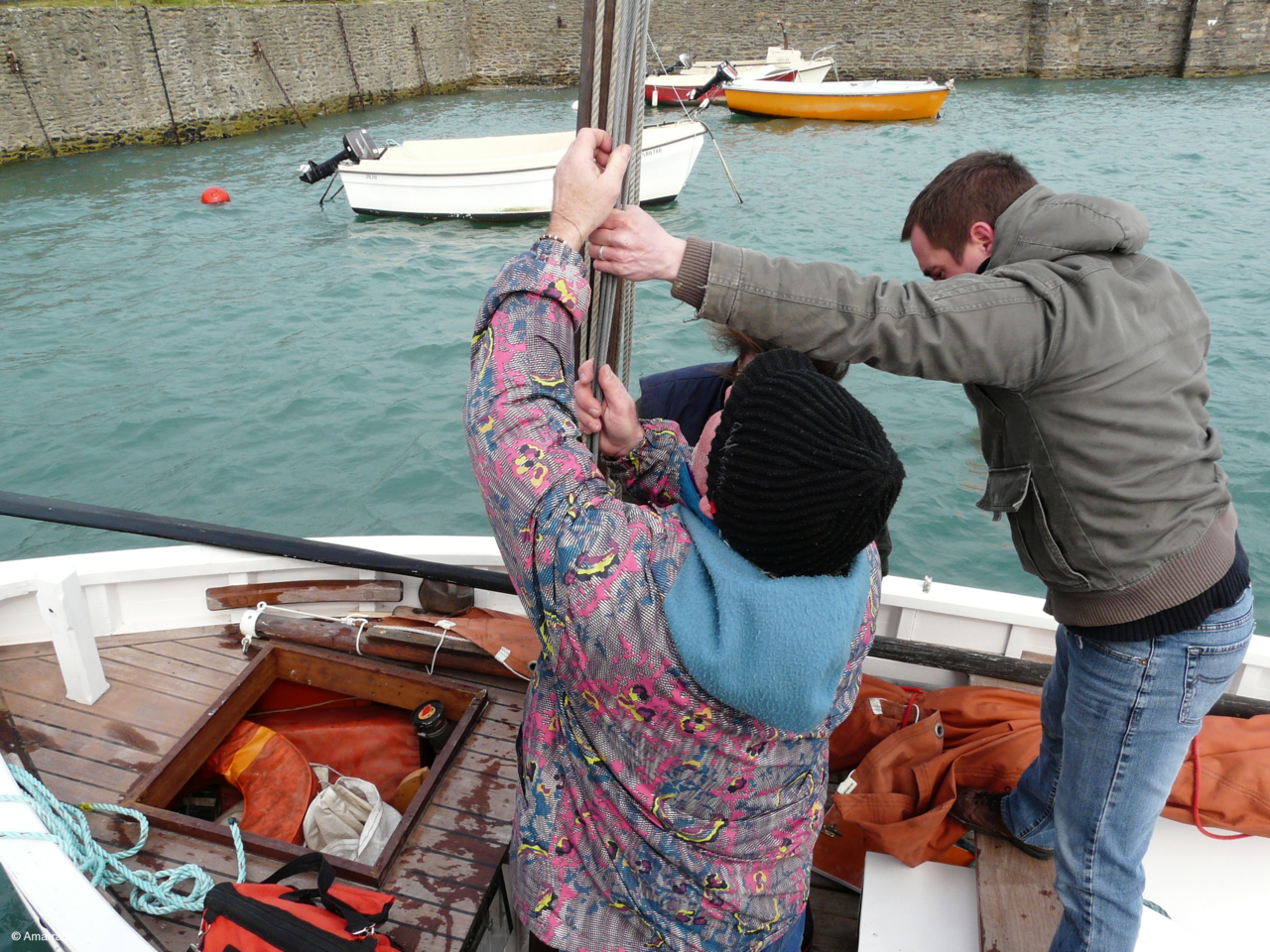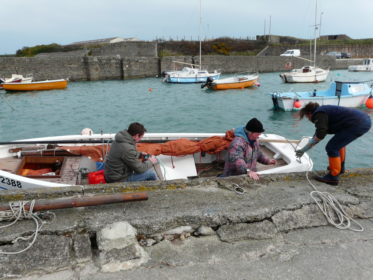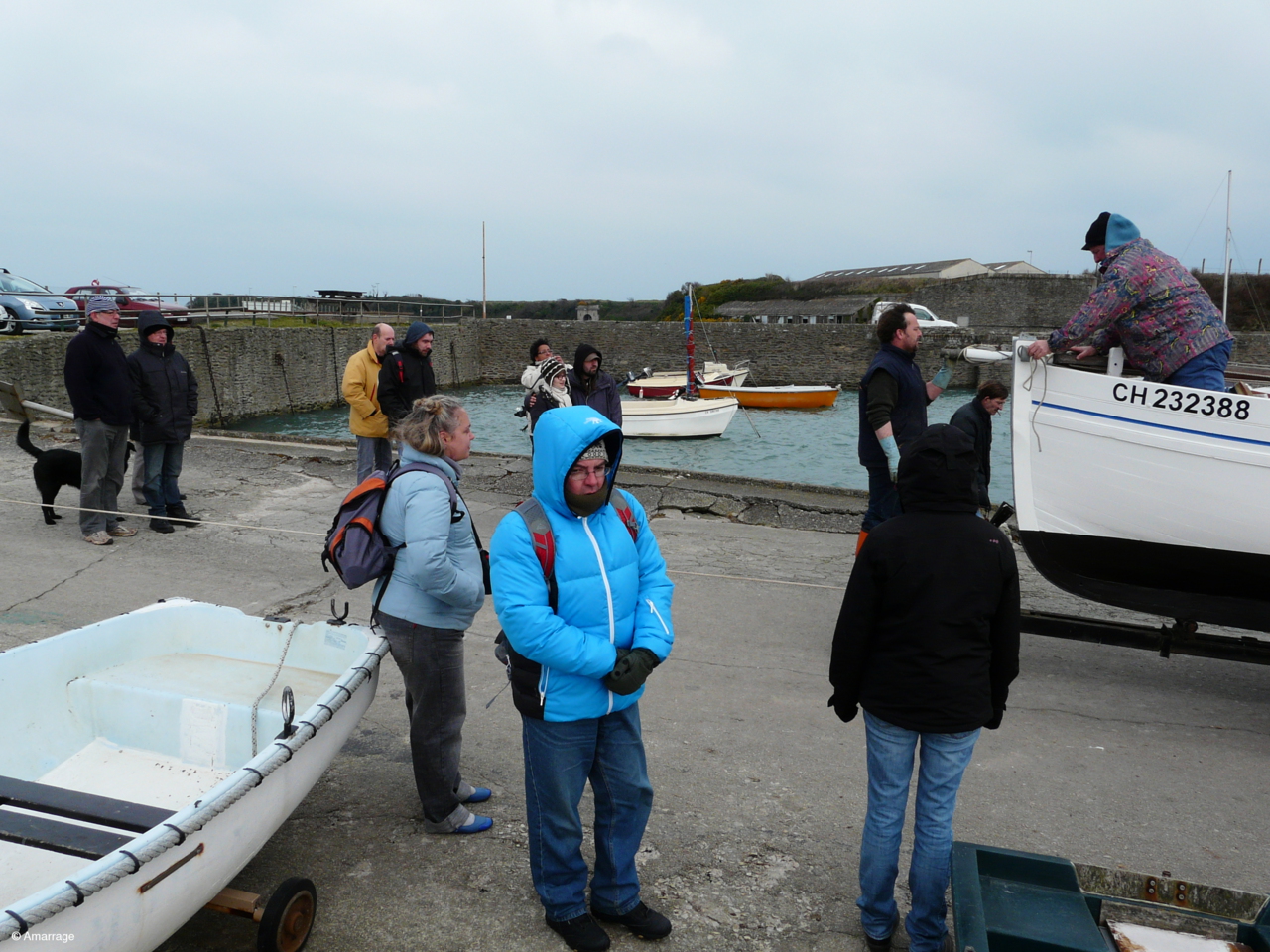Remise à l'eau de l'Awassa après un gros toilettage à l'atelier d'Amarrage. Temps sec, vent et Foid..... BRRRRRRR
