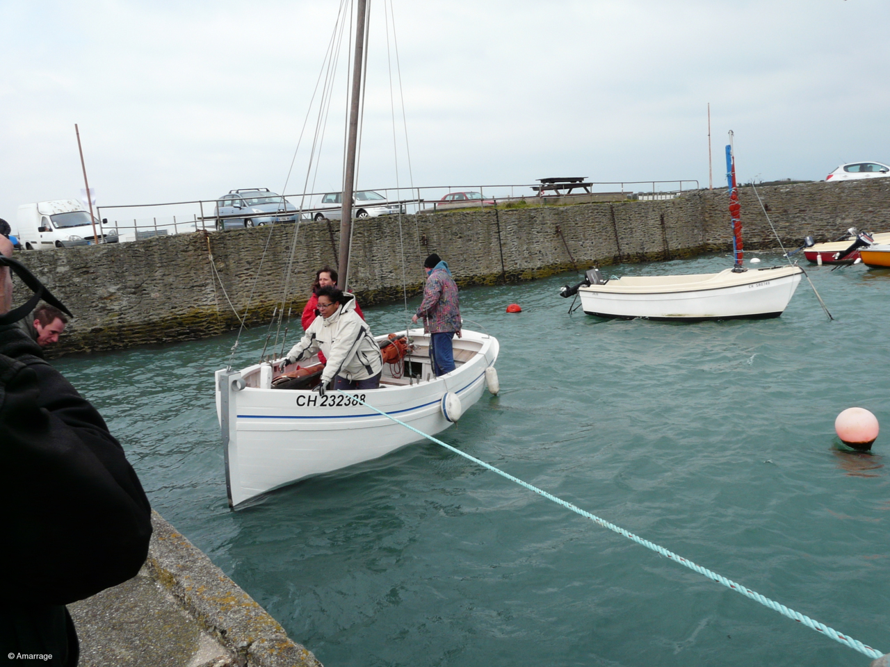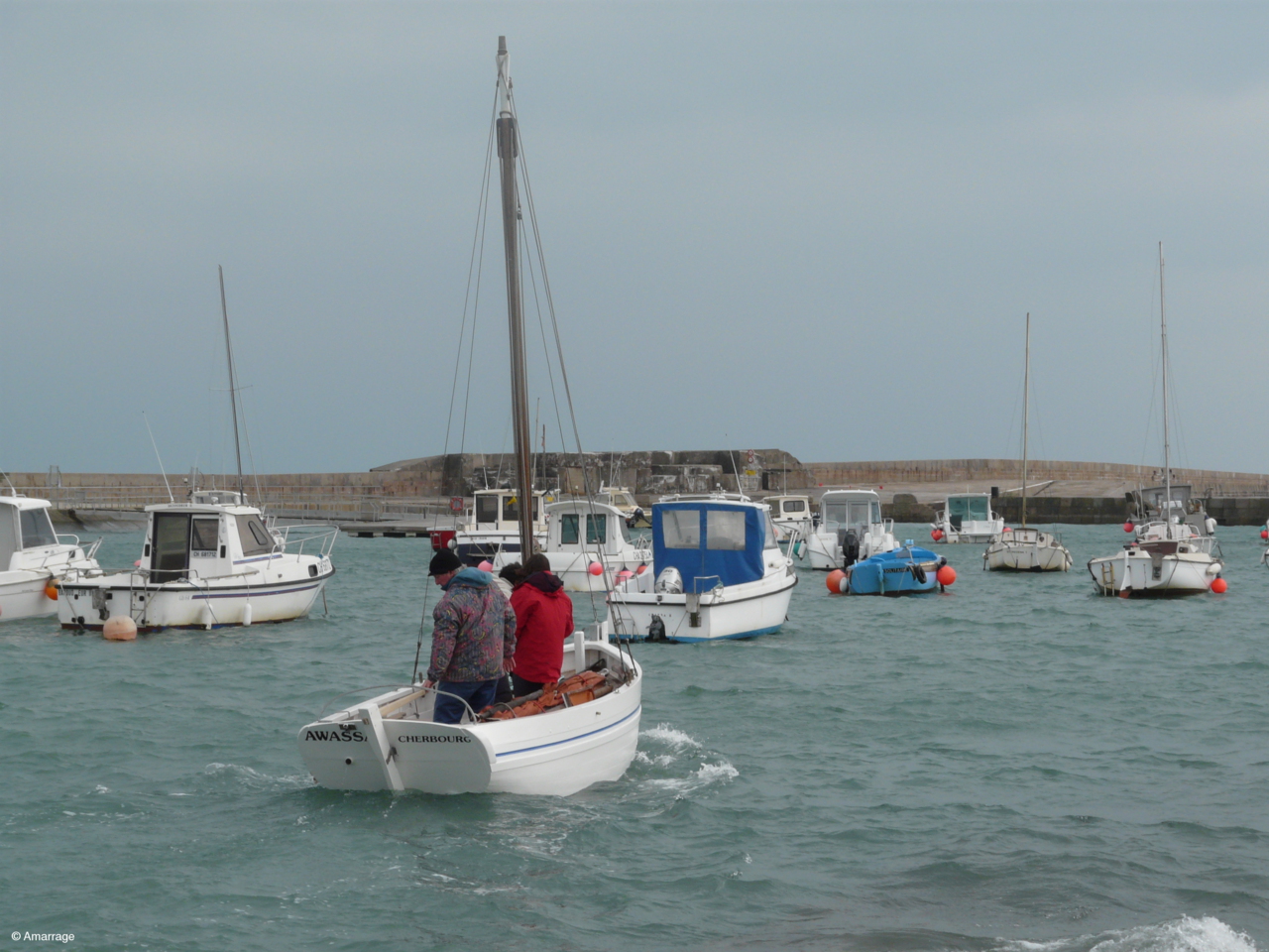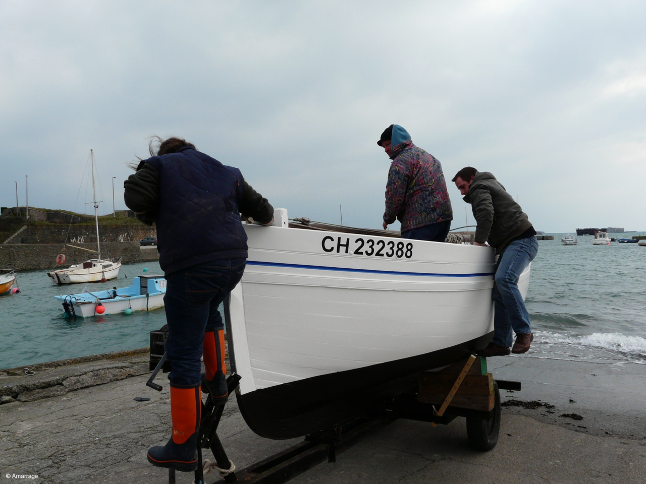 Remise à l'eau de l'Awassa après un gros toilettage à l'atelier d'Amarrage. Temps sec, vent et Foid..... BRRRRRRR