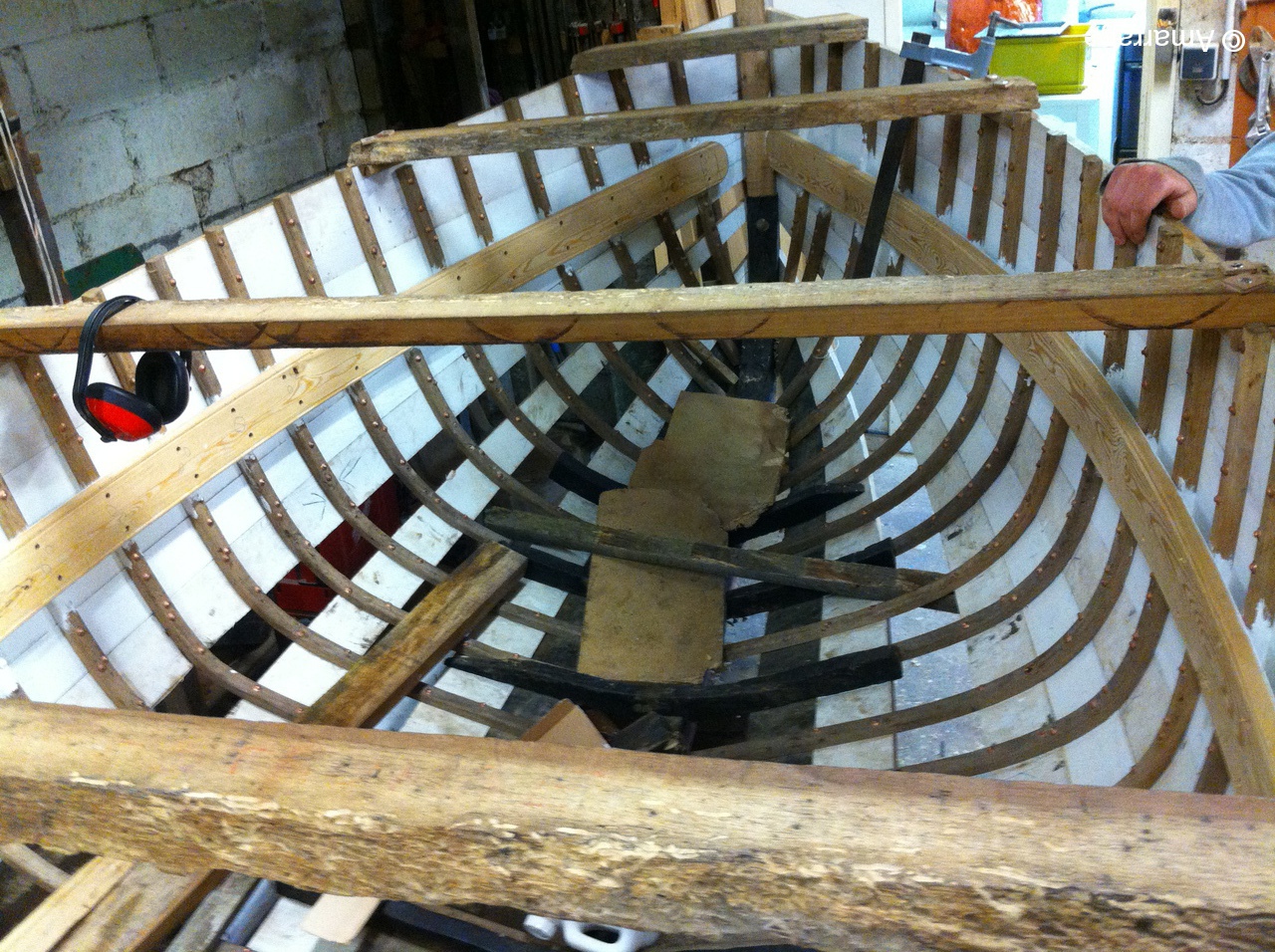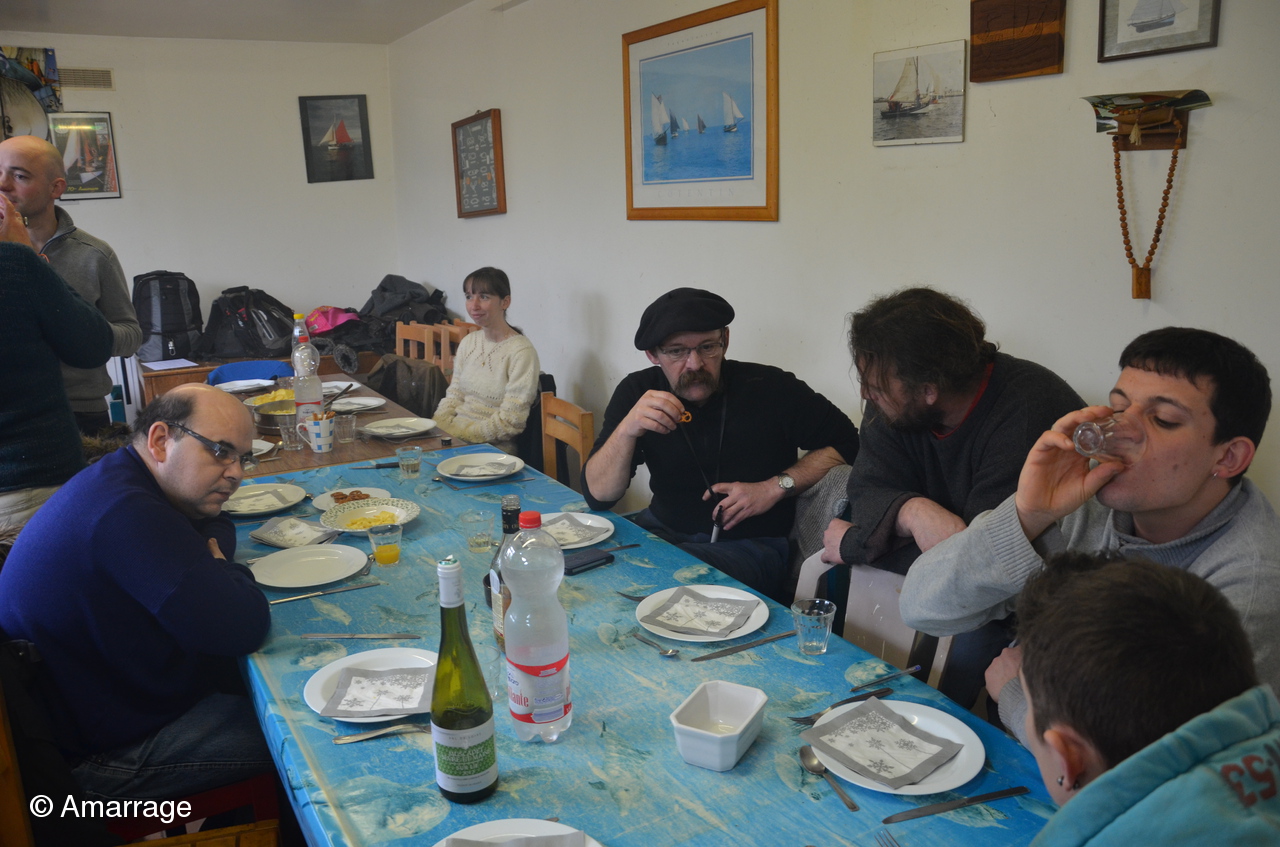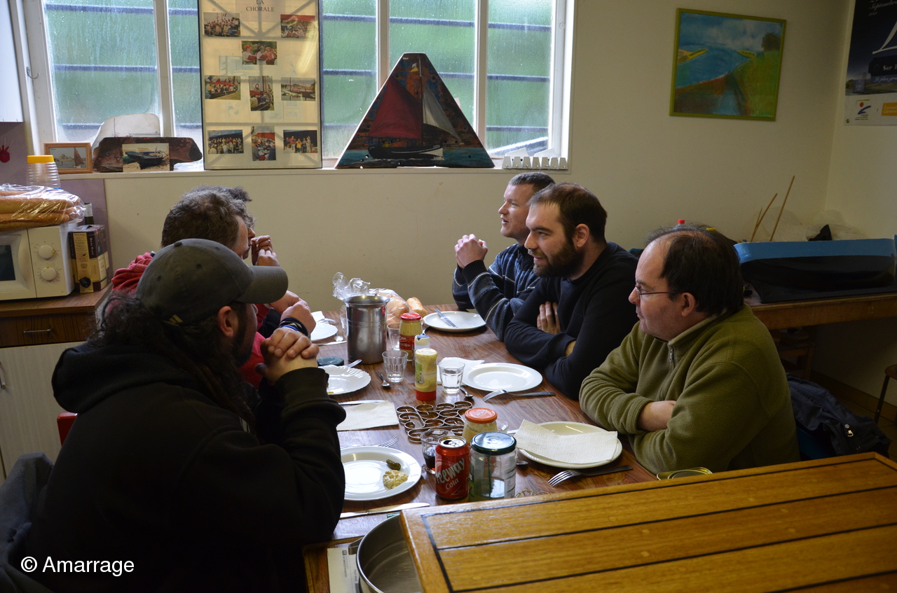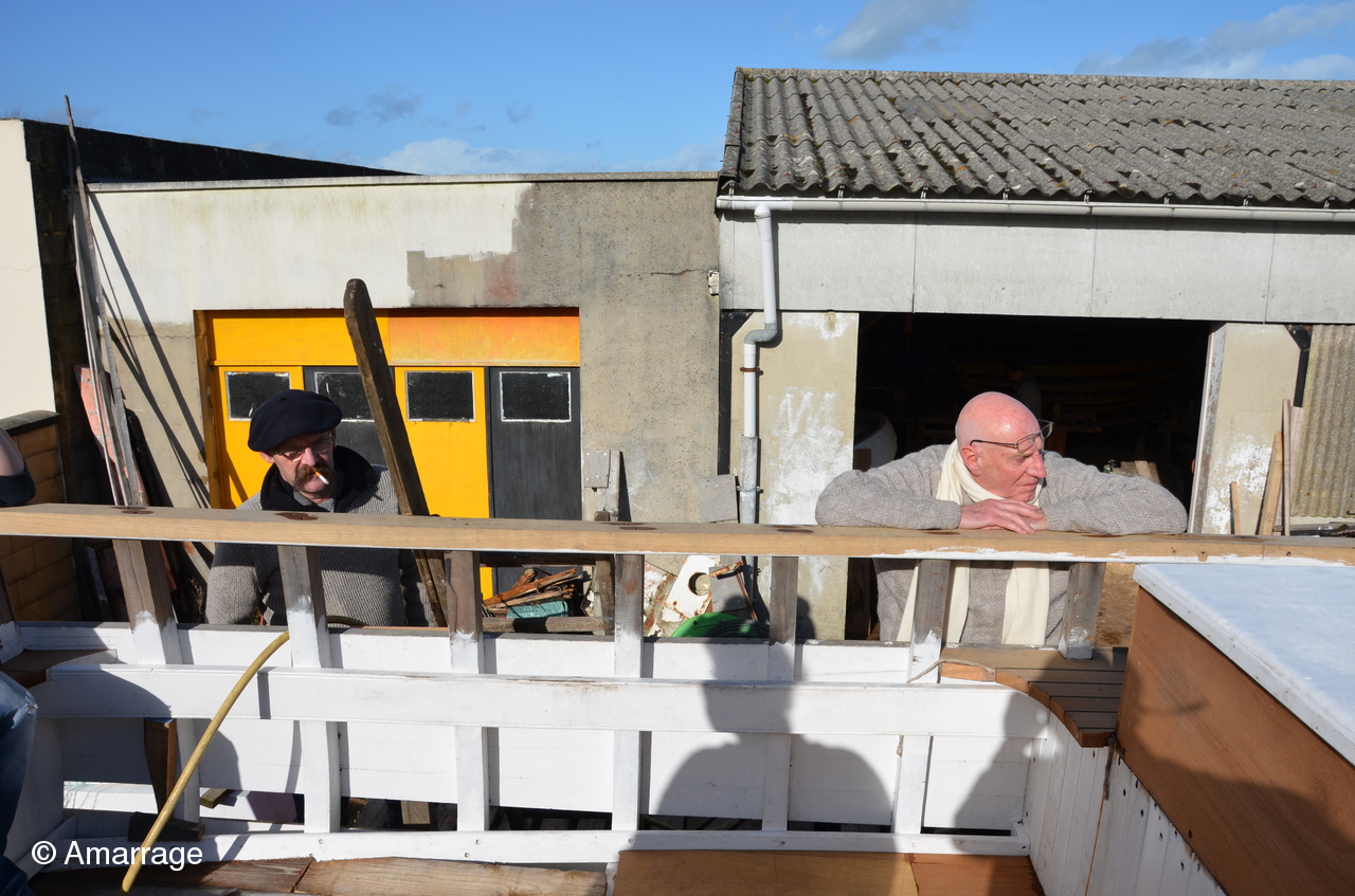La Nereides avance toujours en fonction de la météo.....Malgré tout, les lisses de plat bord sont posées et le plancher se met en place doucement. Le Gai marin est paré de toutes ses membrures et on poursuit le bordage. Mardi 11, repas à l'atelier où nous recevons Astérix et Jacques de Fécamp, ils sont membres d'une association de vieux gréements. Un lien prochainement sur le site pour aller leur rendre visite. L'occasion aussi d'inviter Thierry Fortin avec qui on a navigué à l'automne.