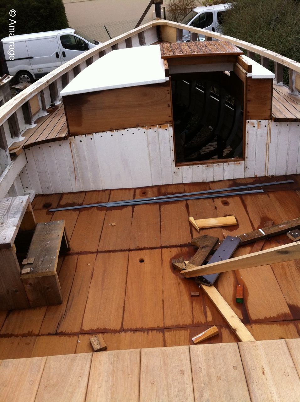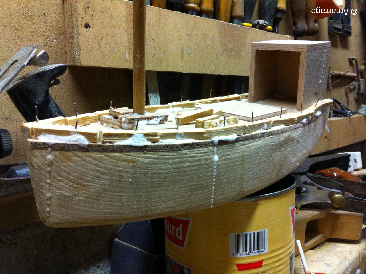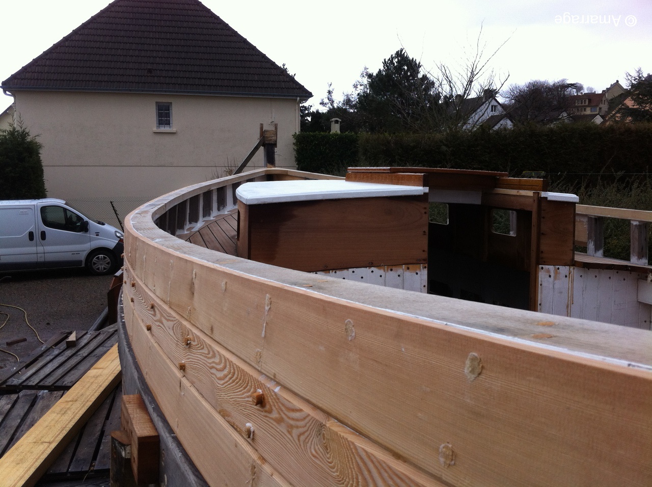 La Nereides avance toujours en fonction de la météo.....Malgré tout, les lisses de plat bord sont posées et le plancher se met en place doucement. Le Gai marin est paré de toutes ses membrures et on poursuit le bordage. Mardi 11, repas à l'atelier où nous recevons Astérix et Jacques de Fécamp, ils sont membres d'une association de vieux gréements. Un lien prochainement sur le site pour aller leur rendre visite. L'occasion aussi d'inviter Thierry Fortin avec qui on a navigué à l'automne.