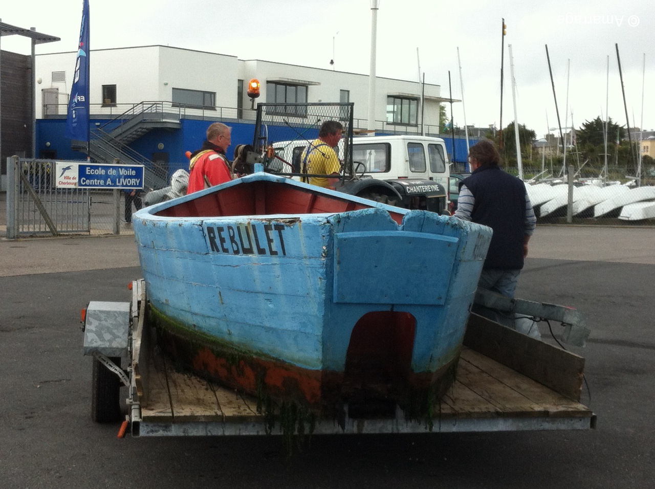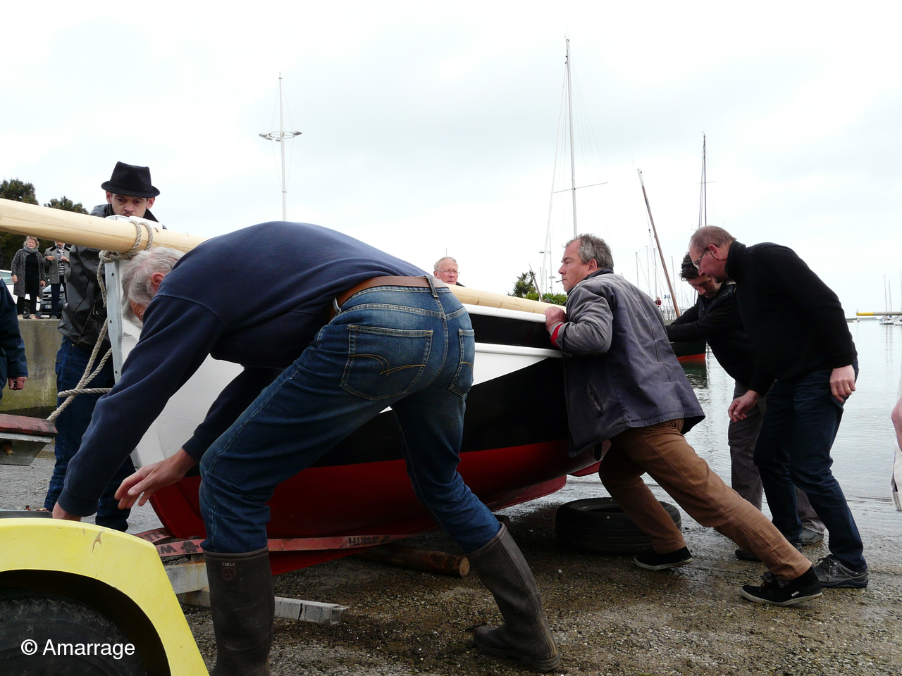 Pour conclure cette matinée, nous avons profité des nombreux bras présents pour sortir le Rebulet de l'eau et le ramener à l'atelier.