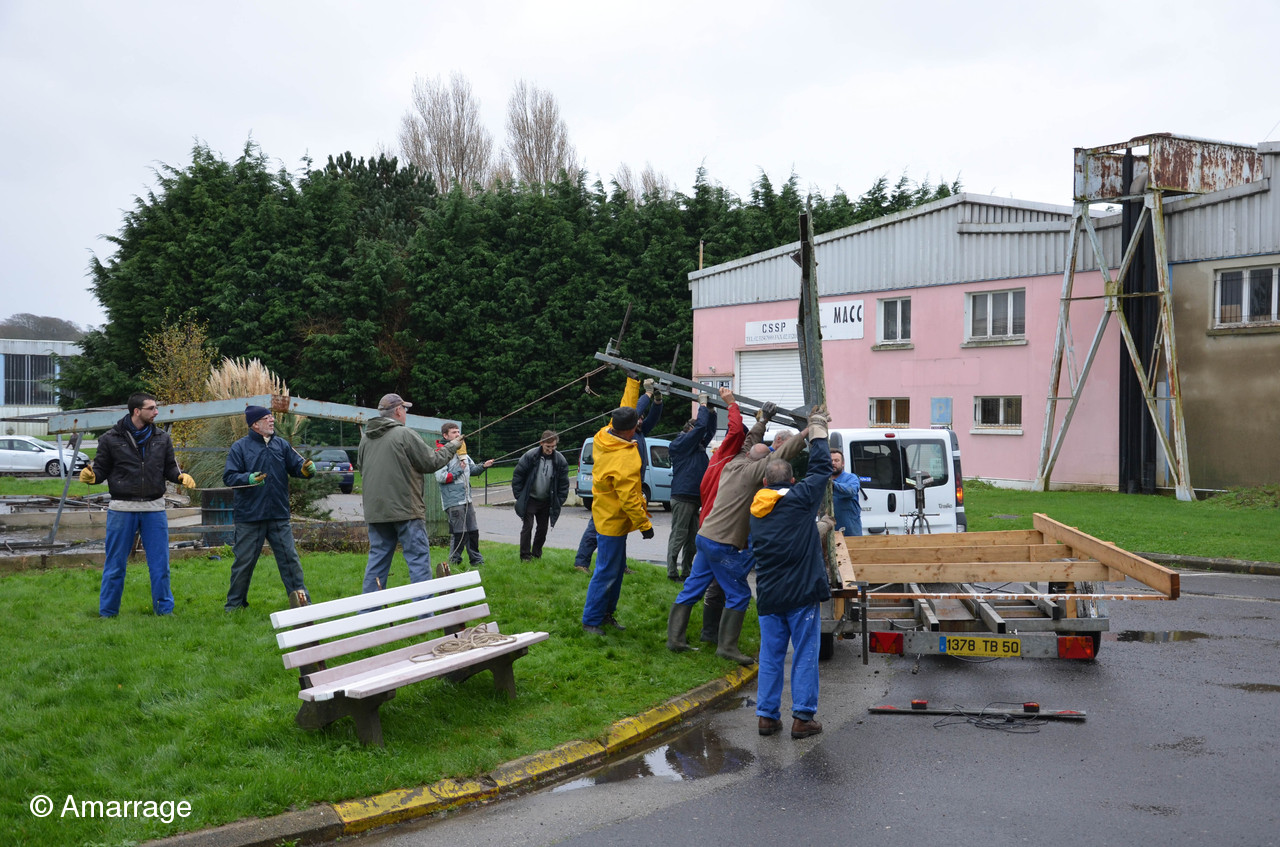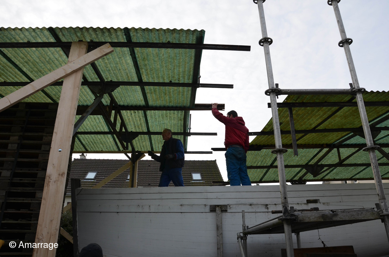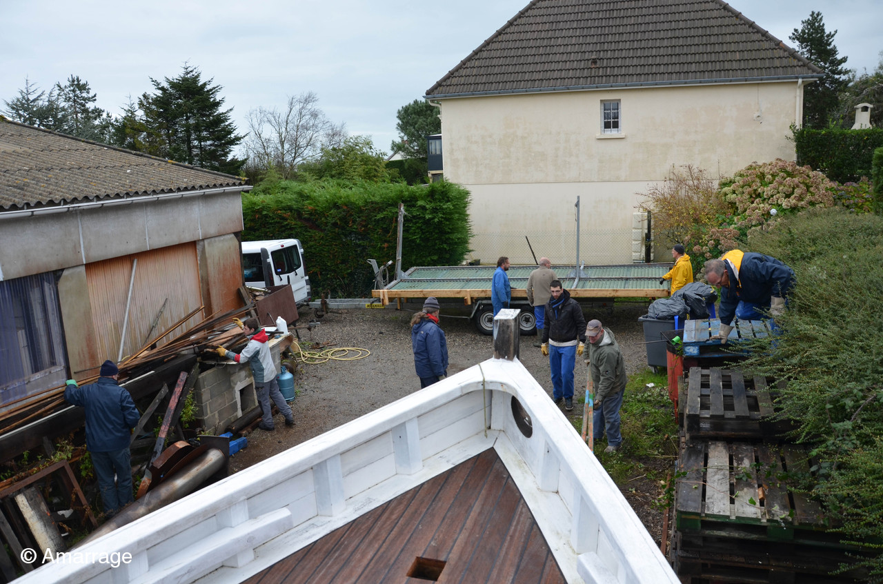 Mardi 24 novembre nous sommes allés démonter un hangar à vélos (vendu par le secours populaire) afin de fabriquer un toit provisoire pour pouvoir travailler cet hiver sur la Nereides. Bon nombre d'adhérents on répondu présent à l'appel d'Olivier....Tout l'esprit d'Amarrage: Vous demandez un petit coup de main...et il vous arrive 15 bonhommes!!!
