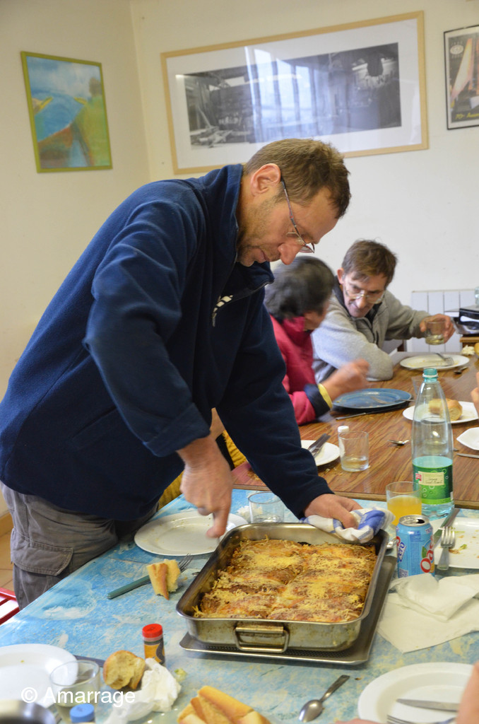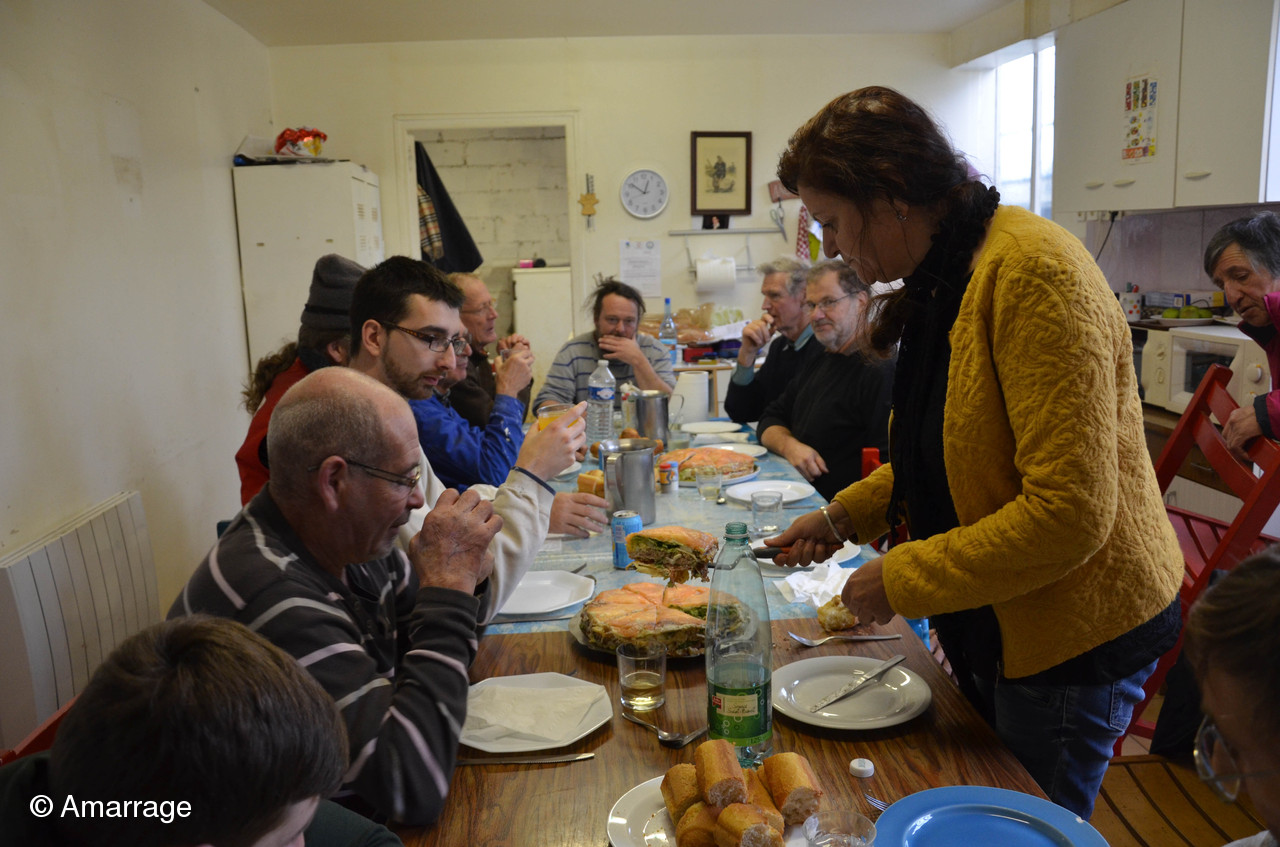 Quatre voyages ont été nécessaires pour convoyer les différents éléments à bon port. Après l'effort le réconfort...le midi, tout ce petit monde s'est retrouvé autour de la table pour partager un bon repas préparé par le Cattp Charcot. Un grand merci aux cuistos qui nous ont confectionné un repas de crêpes qui restera dans les mémoires....