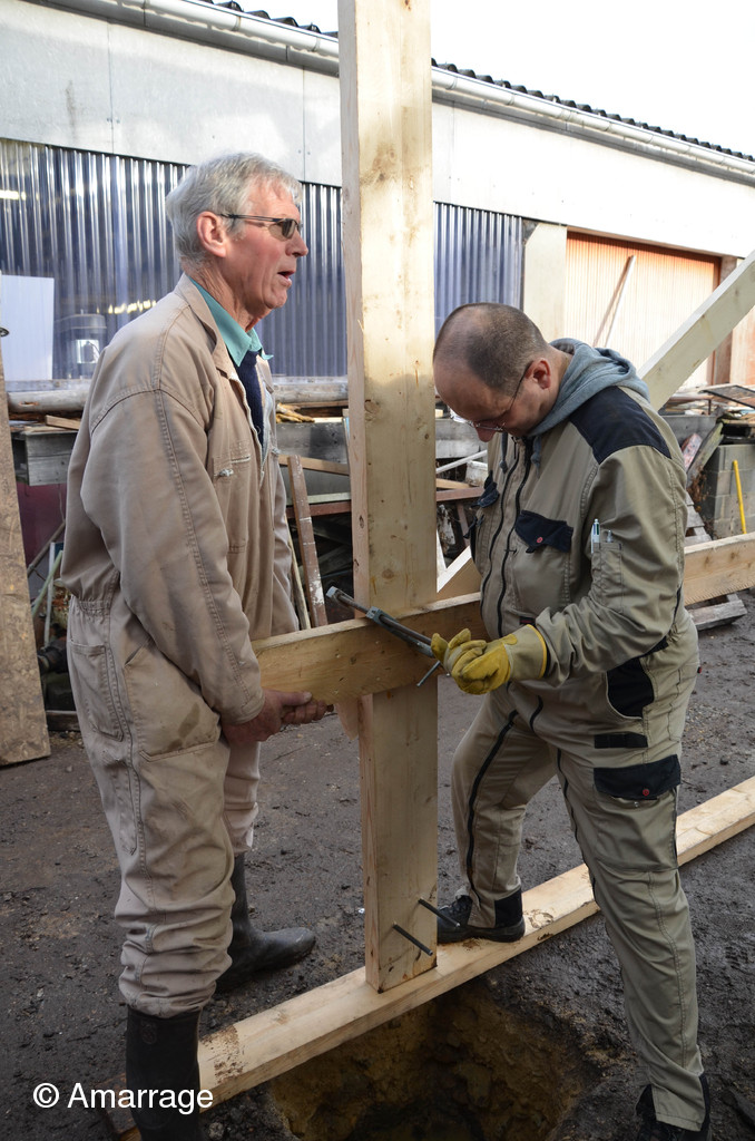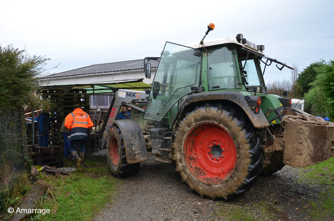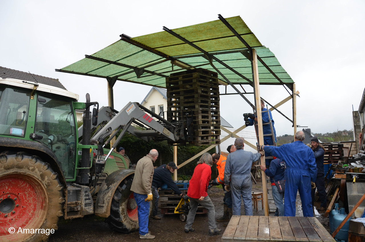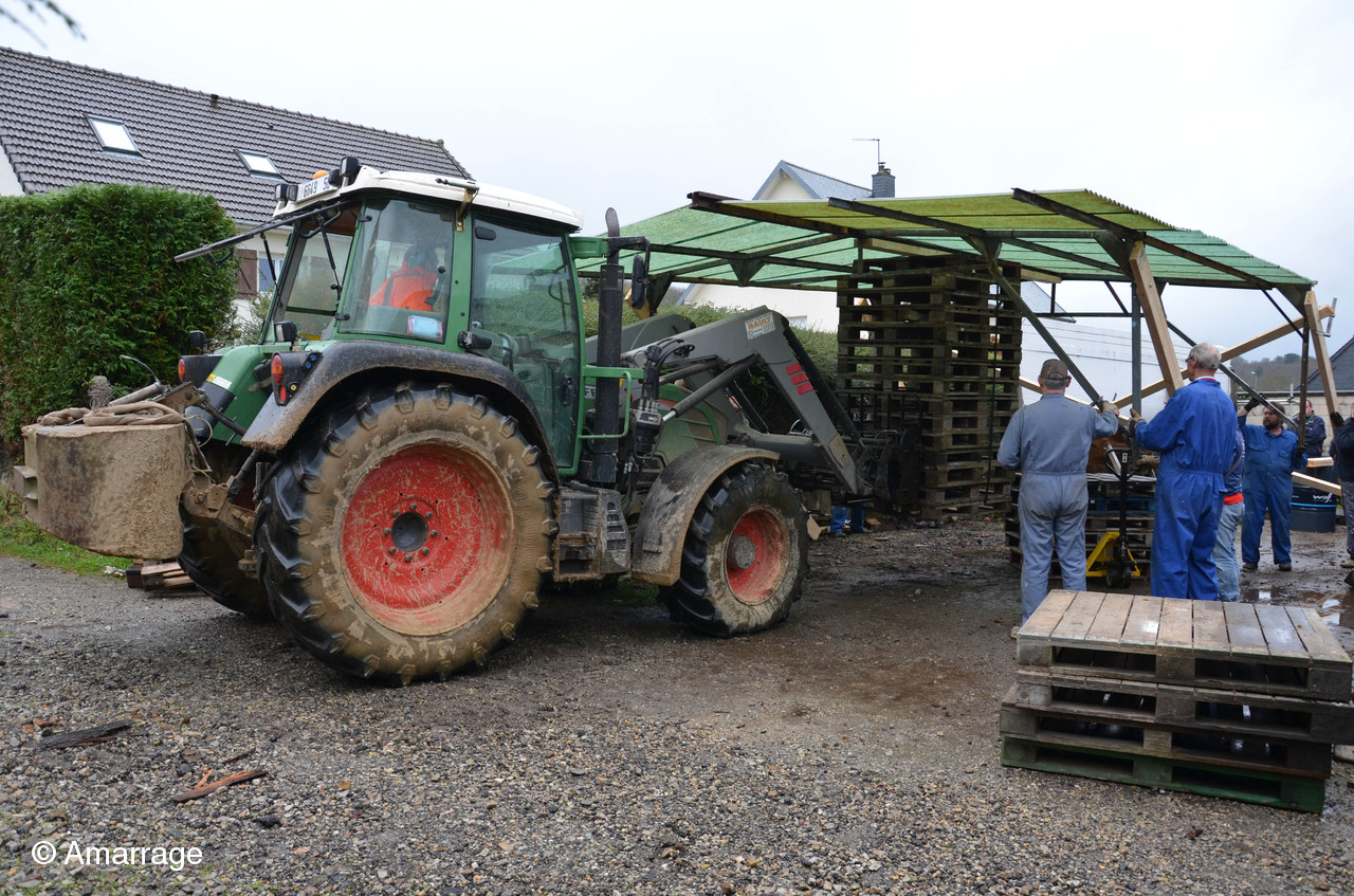11 décembre, la première moitié du hangar est mise en place. Un grand merci à Christophe venu donner un coup de main avec son gros tracteur, sa dextérité à la manoeuvre et sa bonne humeur...