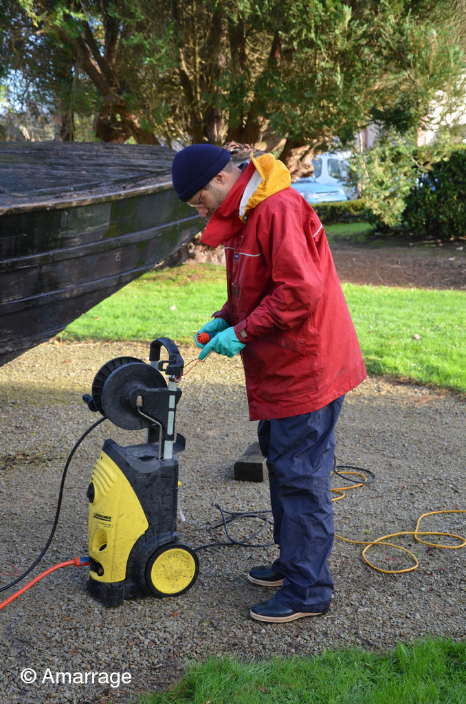 La coque a été nettoyée au Karcher et sera passée au black dès que la météo le permettra.