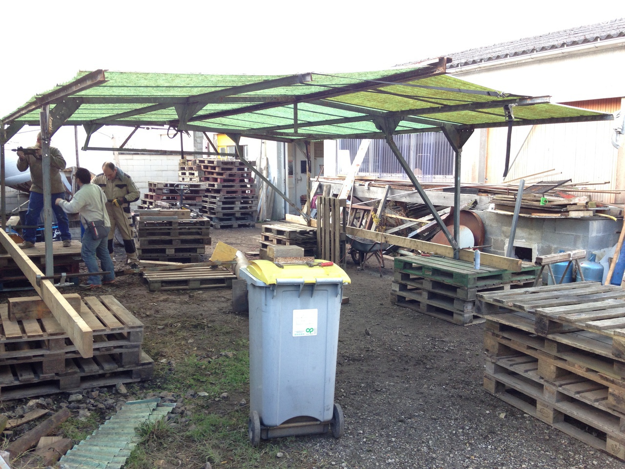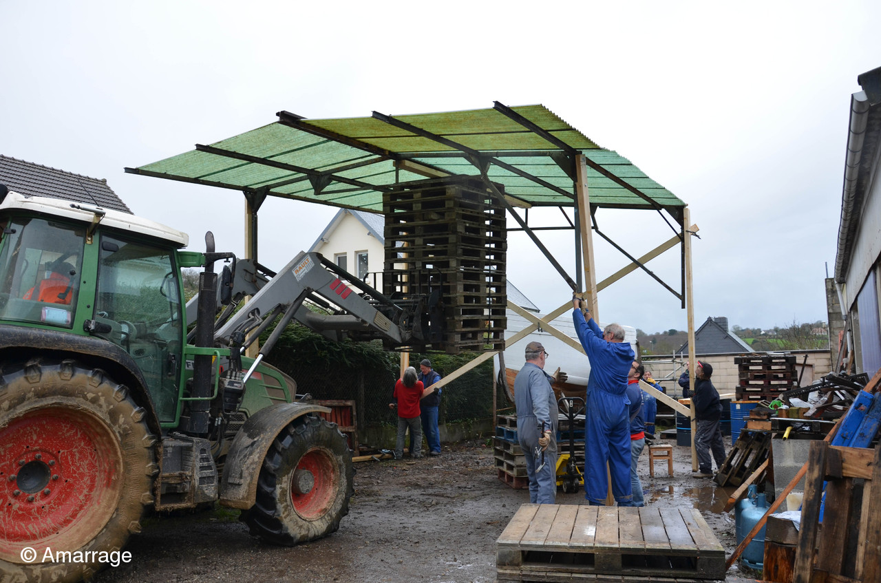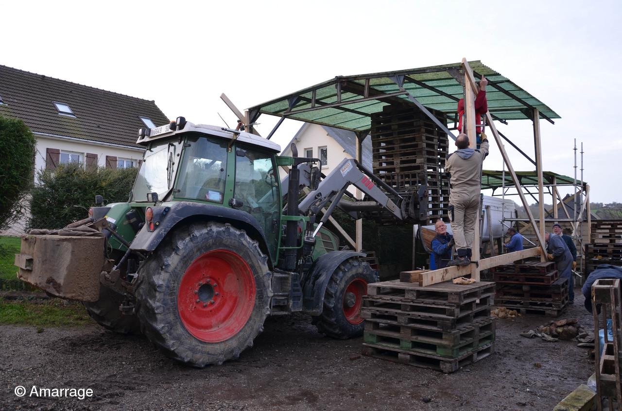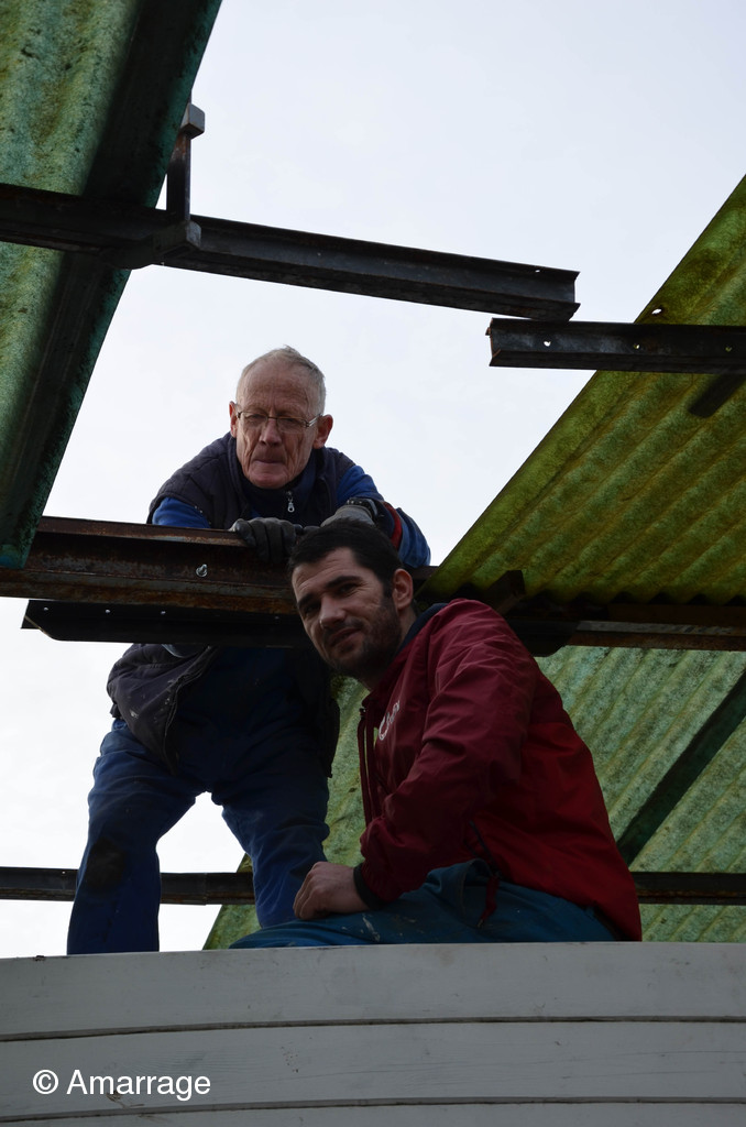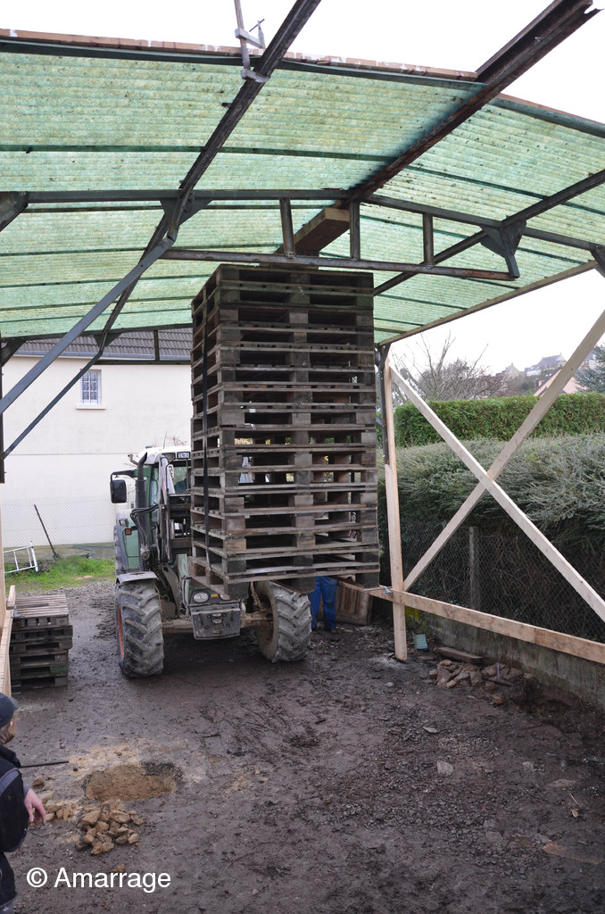 Vendredi 11: la mise en place de la première moitié du hangar a été réalisée aujourd'hui. Un grand merci à Christophe qui nous a donné un super coup de main avec son gros tracteur, sa dextérité à la manoeuvre et sa bonne humeur....