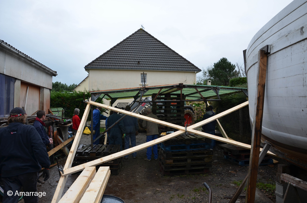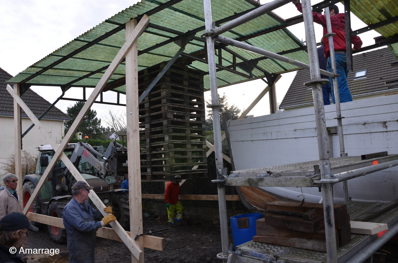 En ce début de mois, on se consacre à l'assemblage et à la mise en place du hangar Nereides. Le 04 du mois, à la faveur d'une belle journée, nous sommes allés nettoyer la Fière à l'hopital du Bon Sauveur. Cette gabarre reconstruite en 1997 par l'association l'Elan est arrivée en fin de vie et a rejoint sa dernière demeure dans la cour de la Fondation.
