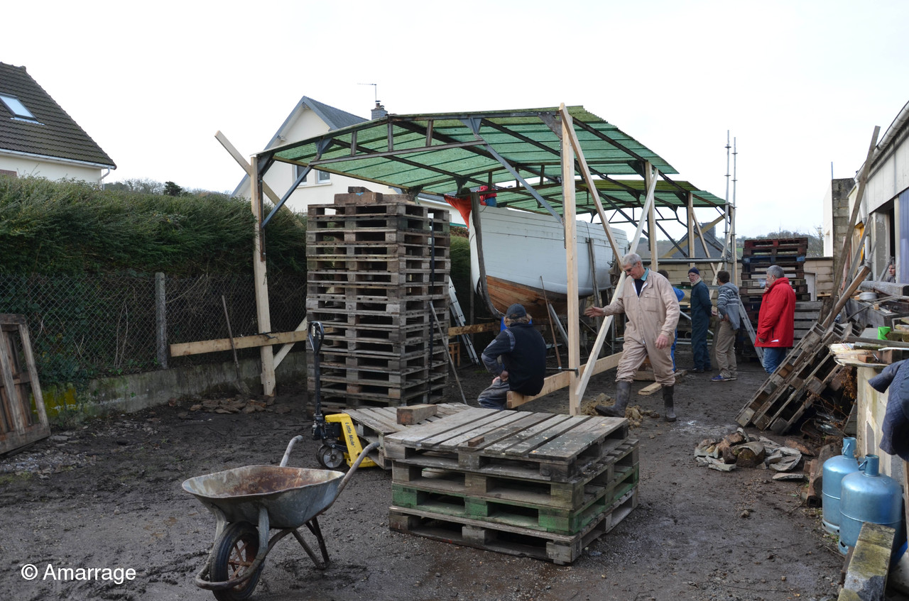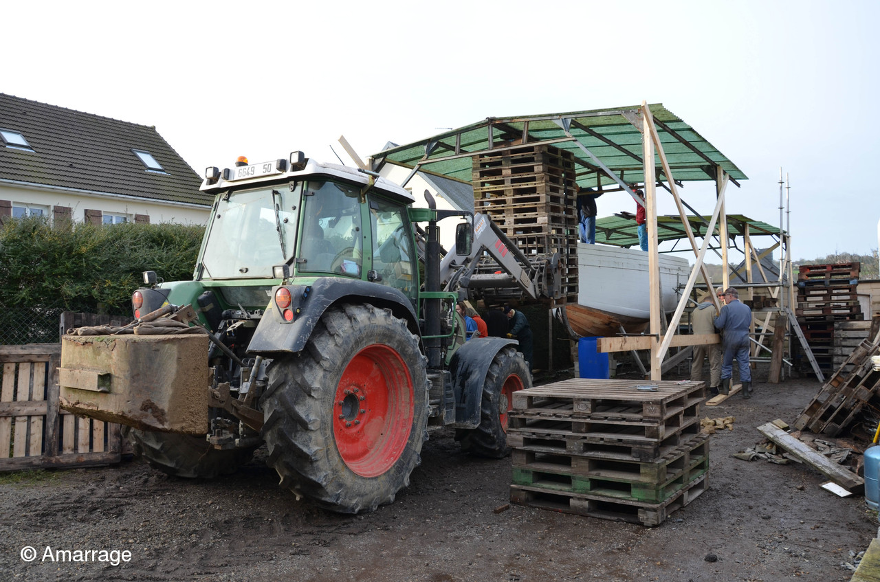 Vendredi 18: Hangar suite et fin!!! Christophe est revenu avec son tracteur pour mettre en place le dernier élément de notre hangar provisoire.....Nous sommes heureux de voir se terminer ce mois de décembre presque exclusivement consacré à mettre la Nereides à l'abri. Un mois de perdu....pour en gagner plusieurs!!! Nous allons dès la rentrée pouvoir travailler sur notre bateau quelque soit le temps ce qui nous fait espérer raisonnablement une mise à l'eau en 2016. Retrouvez plus de photos dans l'album "Hangar"