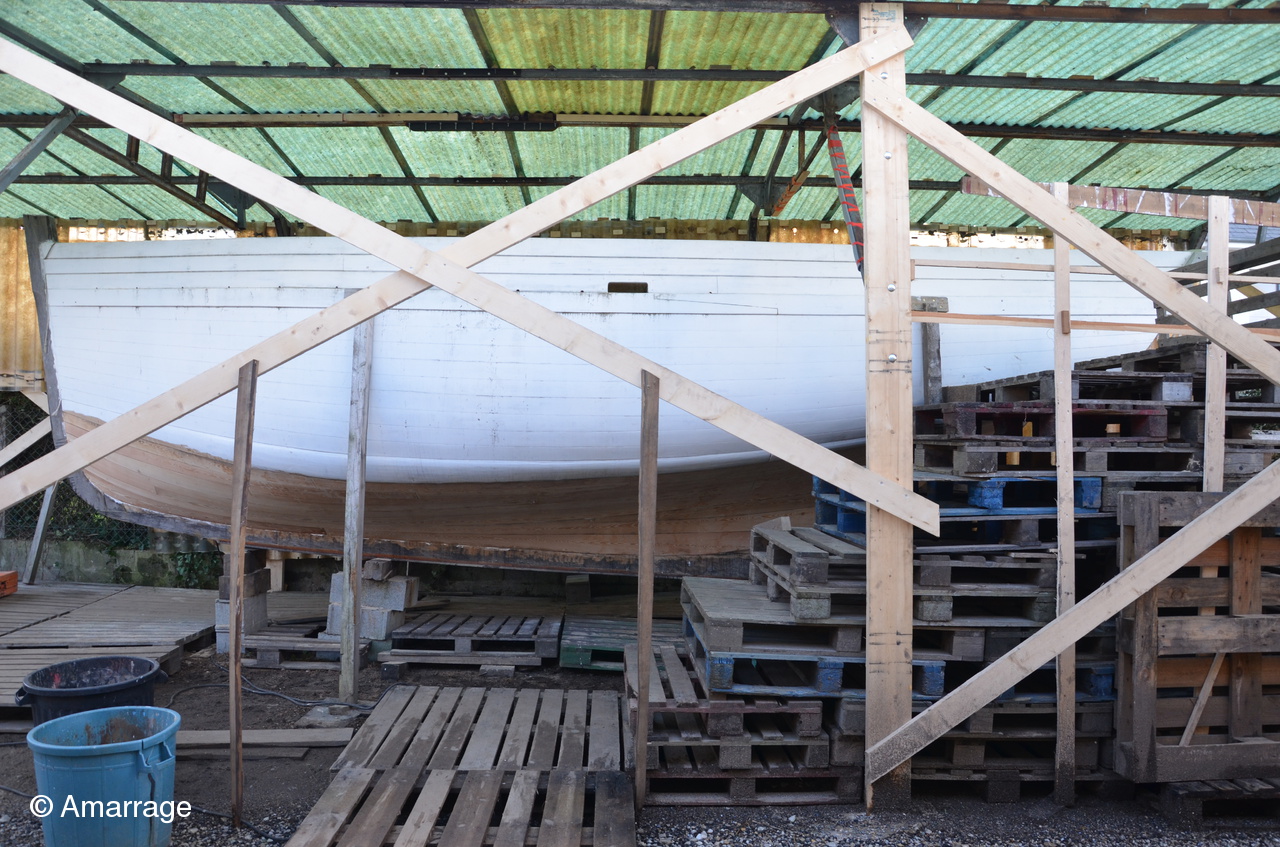 L'année débute bien à l'atelier, après une fin 2015 entièrement consacrée à l'assemblage de notre hangar provisoire, la Nereides est enfin à l'abri....Un escalier sécurisé en palettes a été réalisé afin de permettre au plus grand nombre de monter à bord pour travailler. Il nous change la vie ce hangar....du coup, c'est presque agréable de bosser quand il pleut ,histoire de se dire que toute cette énergie déployée a servi à quelque chose!!!!