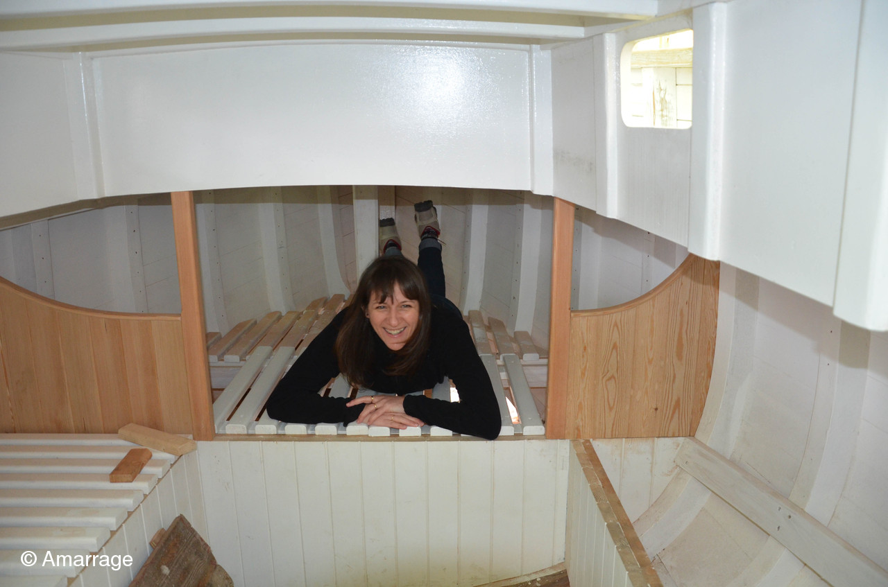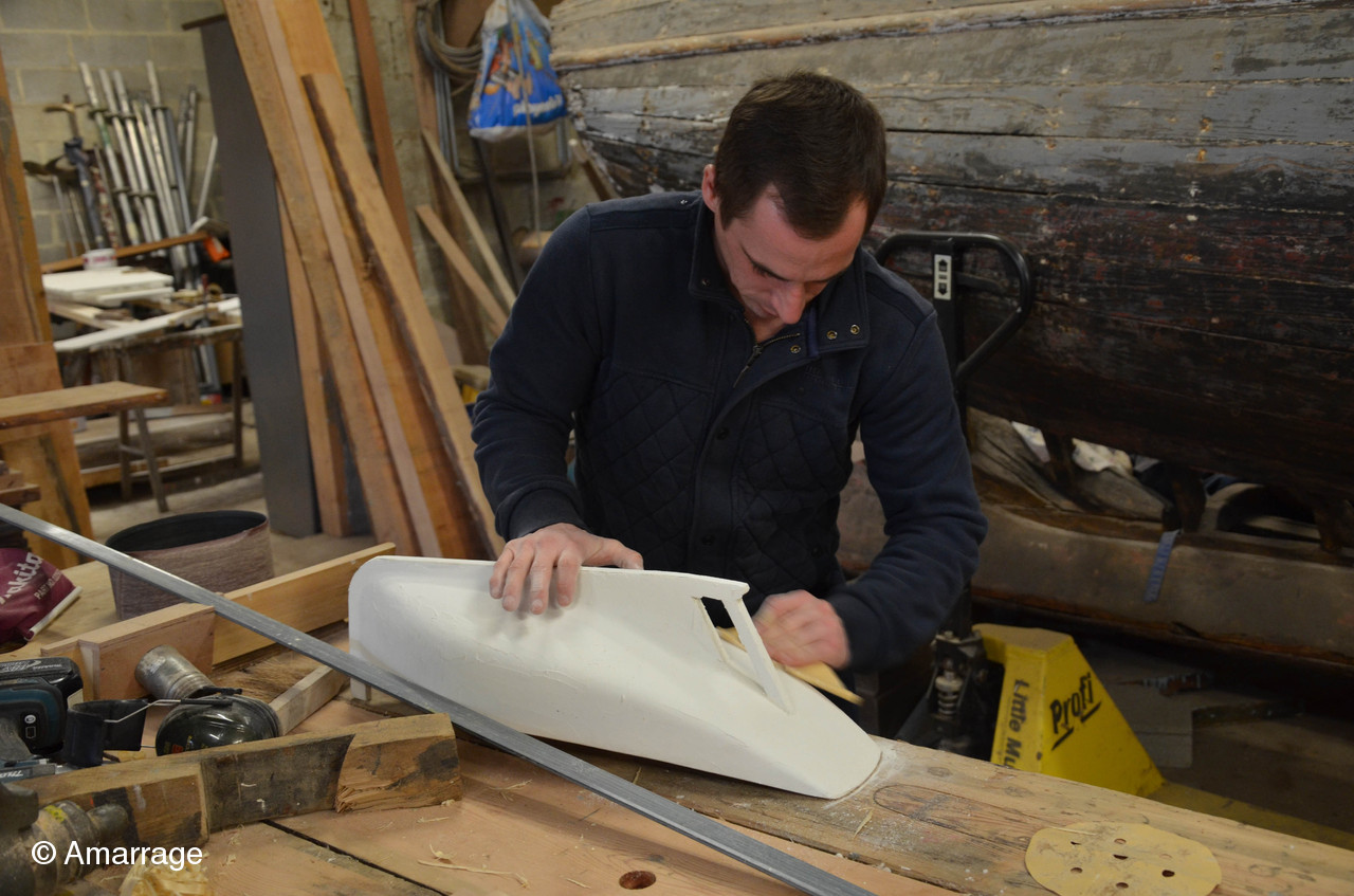29 janvier, quelques vues de l'intérieur de la Nereides avec la mise en place du prisme qui apportera de la lumière. On travaille également sur une reproduction de la Marie Madeleine en bateau jouet. En plus du concert de soutien, Amarrage a tenu à apporter sa contribution avec cette réalisation qui fera l'objet d'une tombola. Les billets seront vendus à l'occasion des concerts de soutien et un tirage au sort sera effectué lors du festival "La Hougue terre de marins".
