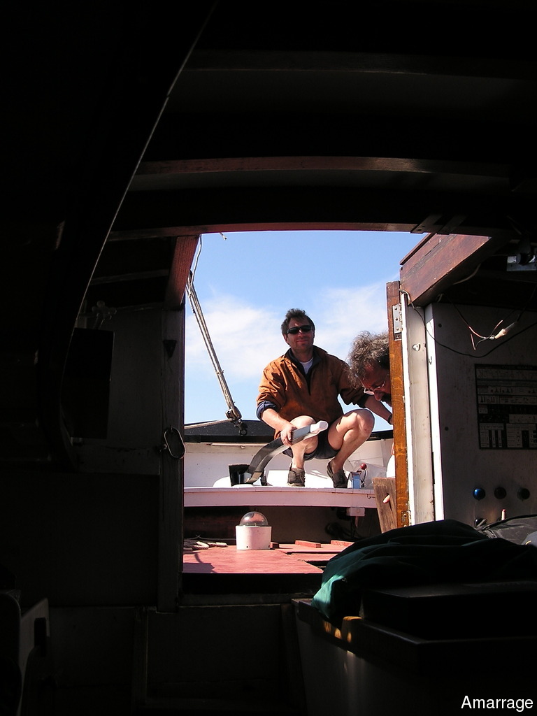 A bord Alain Perrine charpentier d'Amarrage qui a fait don de sa Nereides à l'association lors de son départ en retraite. Merci Alain....