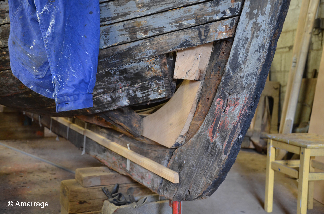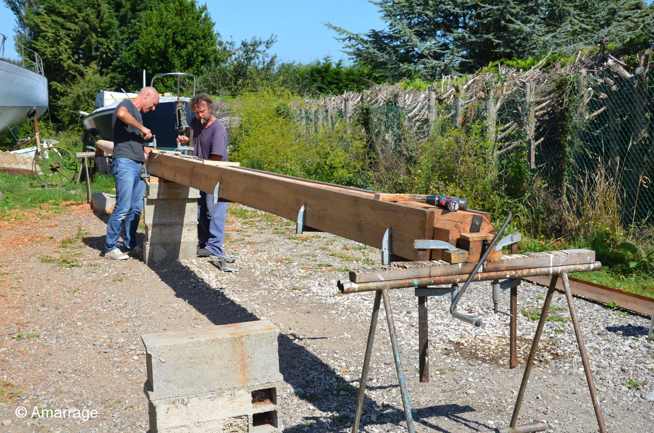 Les meilleures choses ont une fin...les vacances sont finies!! Réouverture de l'atelier lundi 08 août. Tout le monde à eu le temps de se remettre de la semaine un peu folle de la mise à l'eau...Le mât de la Nereides est commencé. Travail à l'herminette, à l'ancienne. Les travaux se poursuivent sur l'étoile, le marsouin est presque en place et l'étanbot est découpé...Oliange est arrivé pour un coup de peinture. Jean Marc refait à neuf la remorque de transport dont nous avons hérité.