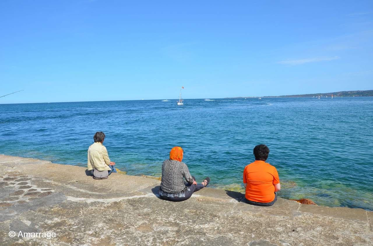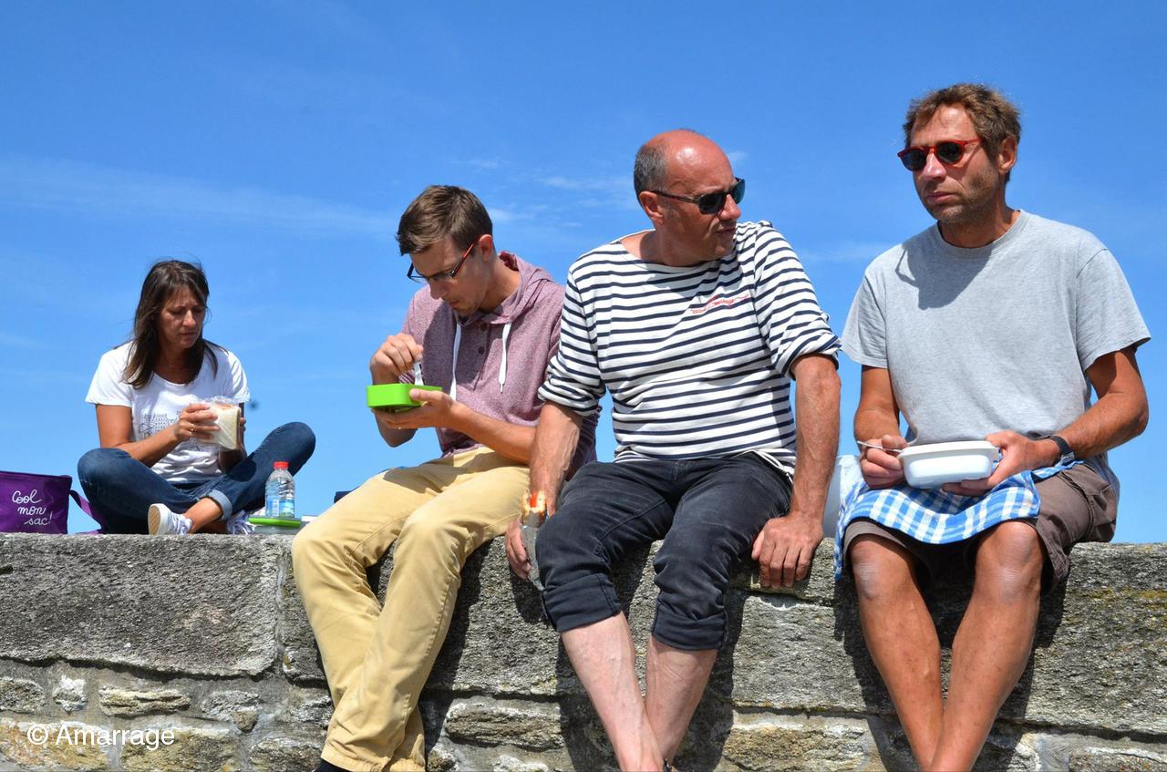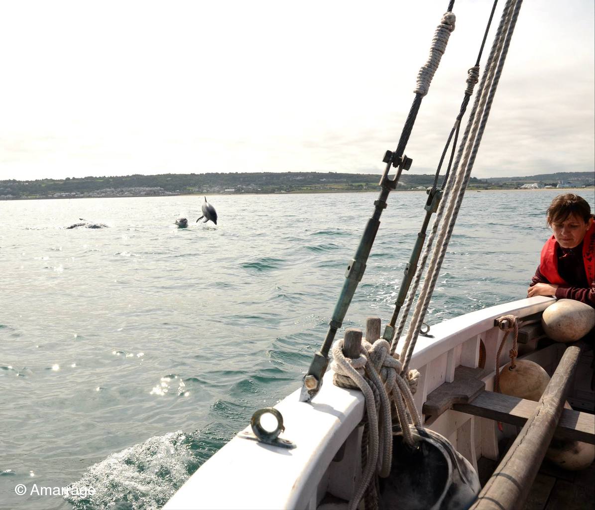 Pour ceux qui ont eu la chance de naviguer le matin, rencontre magique avec une bonne dizaine de dauphins qui ont joué avec nous une petite heure...