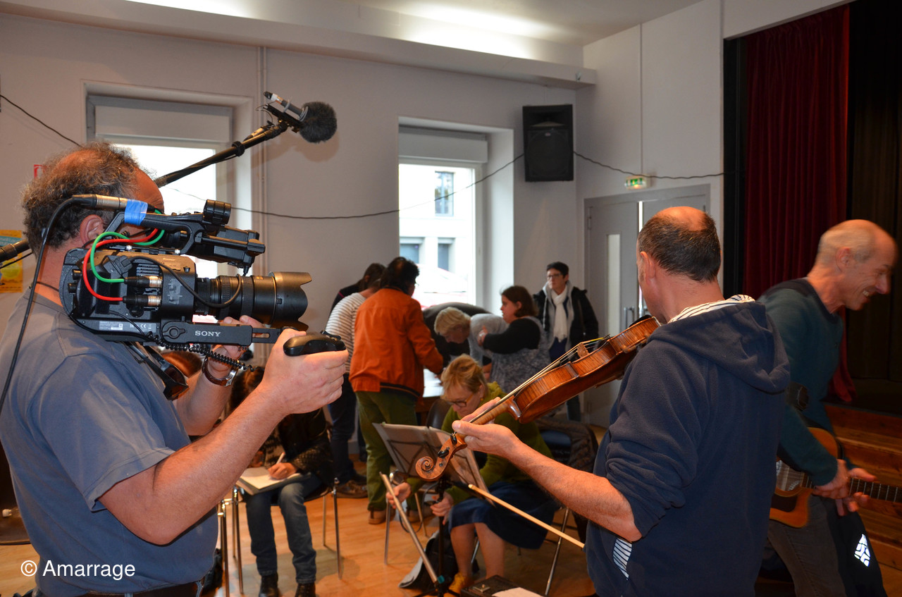 Cette semaine, une équipe de France 3 dirigée par Thierry Durand réalisateur, est présente à l'atelier pour réaliser un film de 26 minutes pour l'émission "Littoral". Ce matin, nous avons navigué à 5 bateaux avec le renfort de Serge Lessauvage et sa vaquelotte. Nous sommes ensuite allés reprendre des forces à l'atelier avant d'entammer une après midi de répétion filmée elle aussi. Le tournage continue avec demain et jeudi des images de l'atelier et vendredi, du concert.